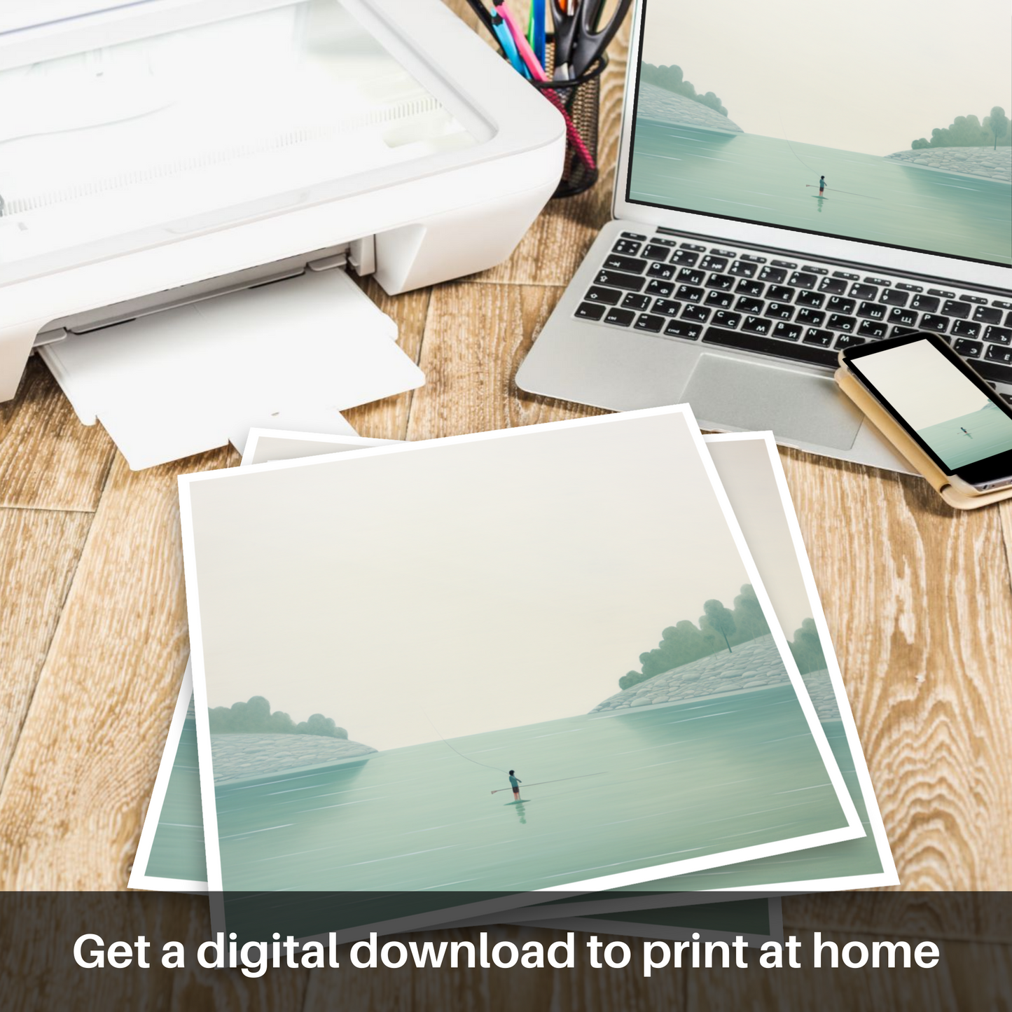 Immerse yourself in the tranquil hues of the Scottish Highlands with a captivating abstract print that beckons the calm and contemplative spirit of fly fishing on the River Shin. With a palette of soft, muted greens and blues, this evocative artwork captures the gentle ripples of the water and the ethereal ambiance of a misty Scottish morning.