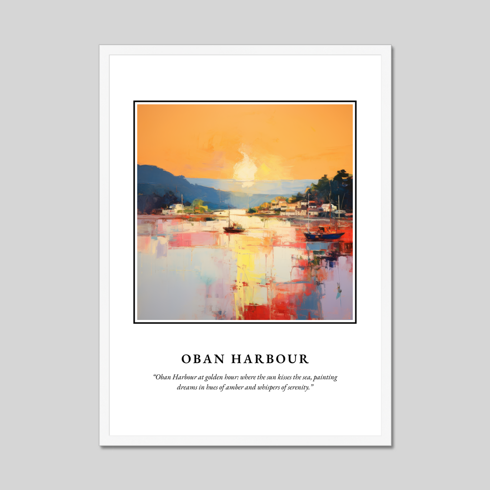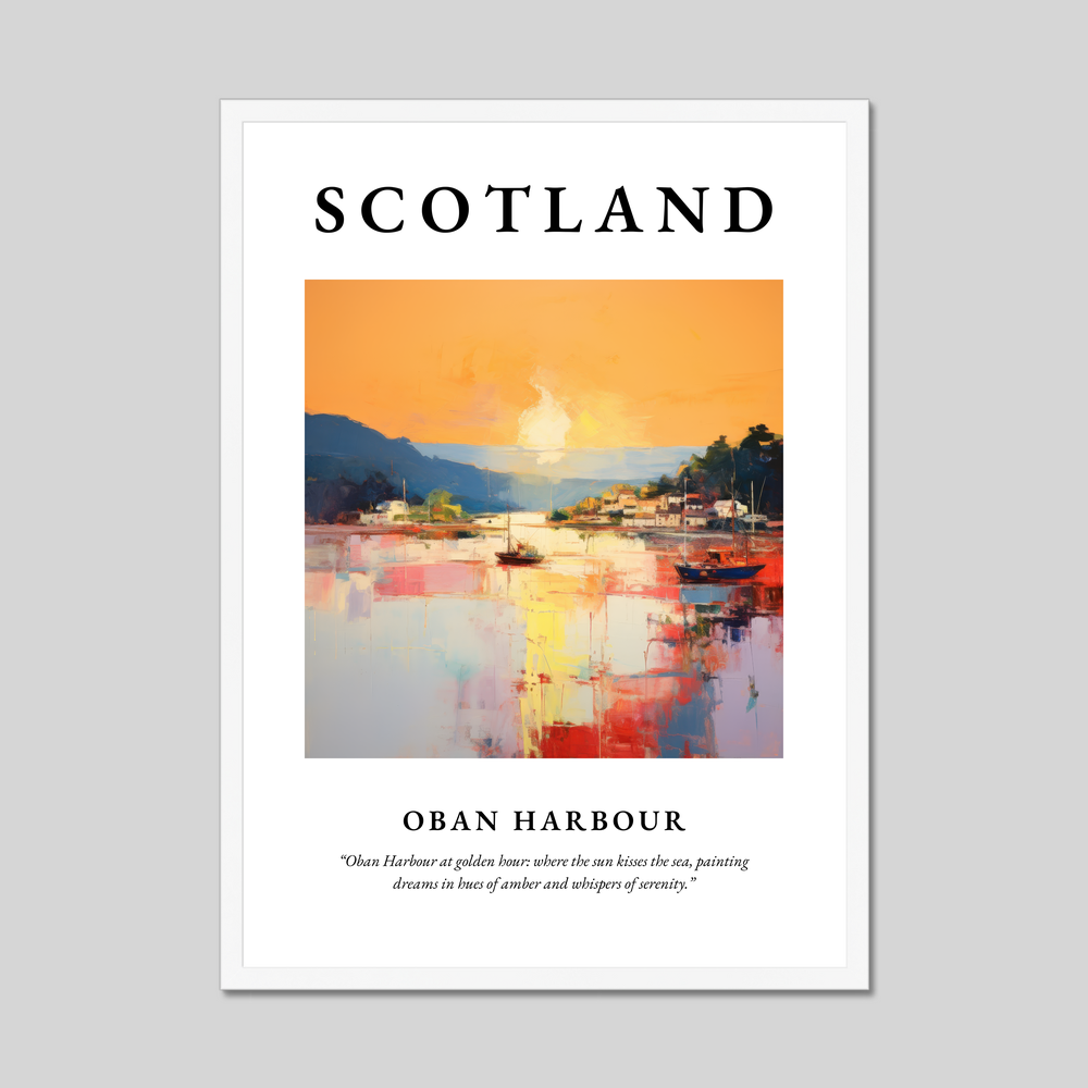 Whether you've strolled along the harbour's edge in person or dream of visiting, this striking framed poster serves as a constant reminder of Oban’s tranquil charm. Let it transport you to a peaceful place where the sun meets the sea, reflecting not just light, but a sense of calm and wonder.