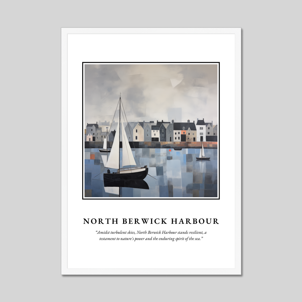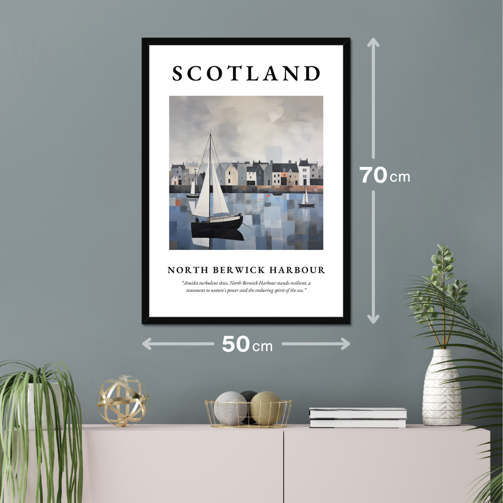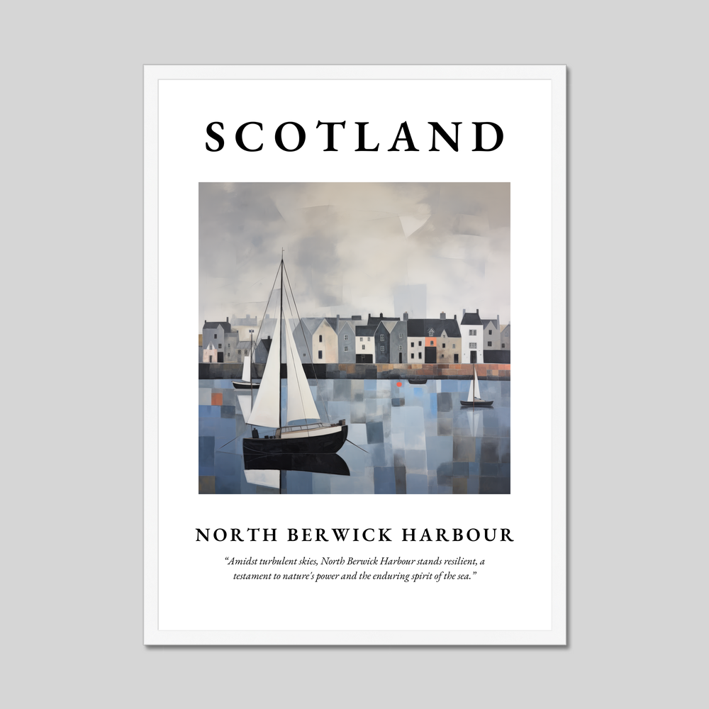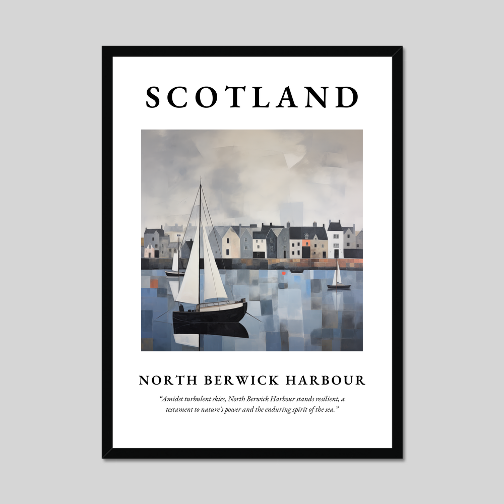 Elevate your space with the striking presence of our 50cm x 70cm framed poster print, a captivating homage to North Berwick Harbour. At the top, the word “SCOTLAND” beckons in bold clarity, setting the stage for an enchanting journey through art. Below, an evocative abstract rendering of the iconic harbour commands attention, capturing the essence of resilient beauty amidst stormy skies. Beneath the artwork, find solace in the quote: “Amidst turbulent skies, North Berwick Harbour stands resilient, a testament to nature's power and the enduring spirit of the sea.”