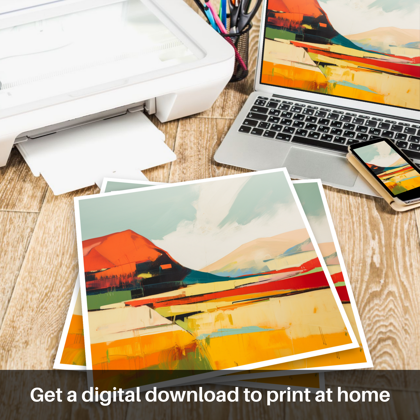 The print balances the intersection of reality and imagination, making it a versatile choice for both contemporary and traditional spaces. It is particularly suited for lovers of Scotland's unspoiled environments and those who appreciate abstract art that challenges and delights. Wherever it hangs, this stirring representation of Ben Macdui promises to ignite conversations and inspire daydreams of the rugged Scottish terrain.