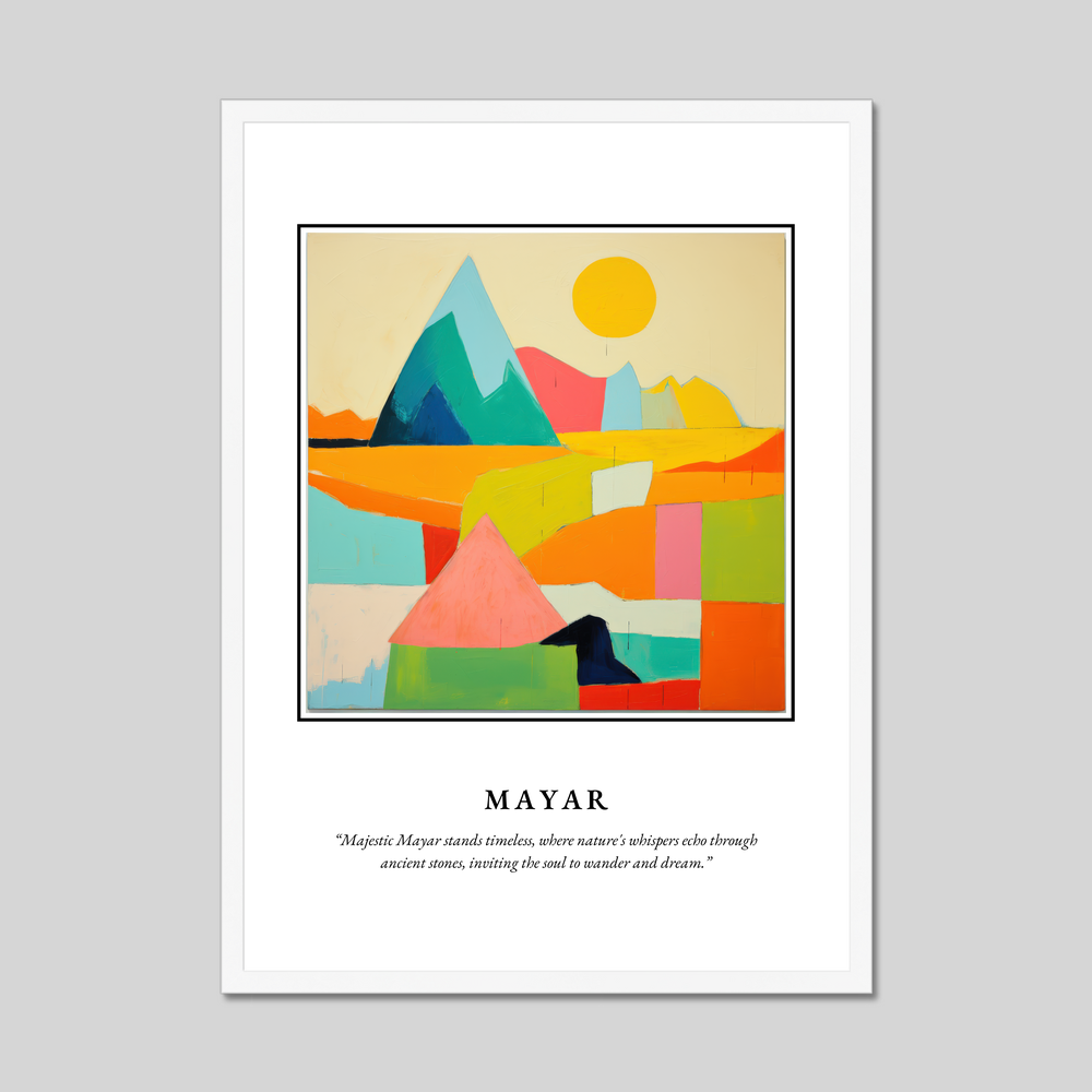 The abstract painting of Mayar is a dynamic fusion of colours and shapes. Layers of vibrant hues sweep across the canvas, echoing the mountainous terrain while evoking an emotional connection to the landscape's timeless spirit. The artwork beautifully encapsulates the allure and grandeur of Mayar, allowing it to cover a large wall area impressively and affordably.