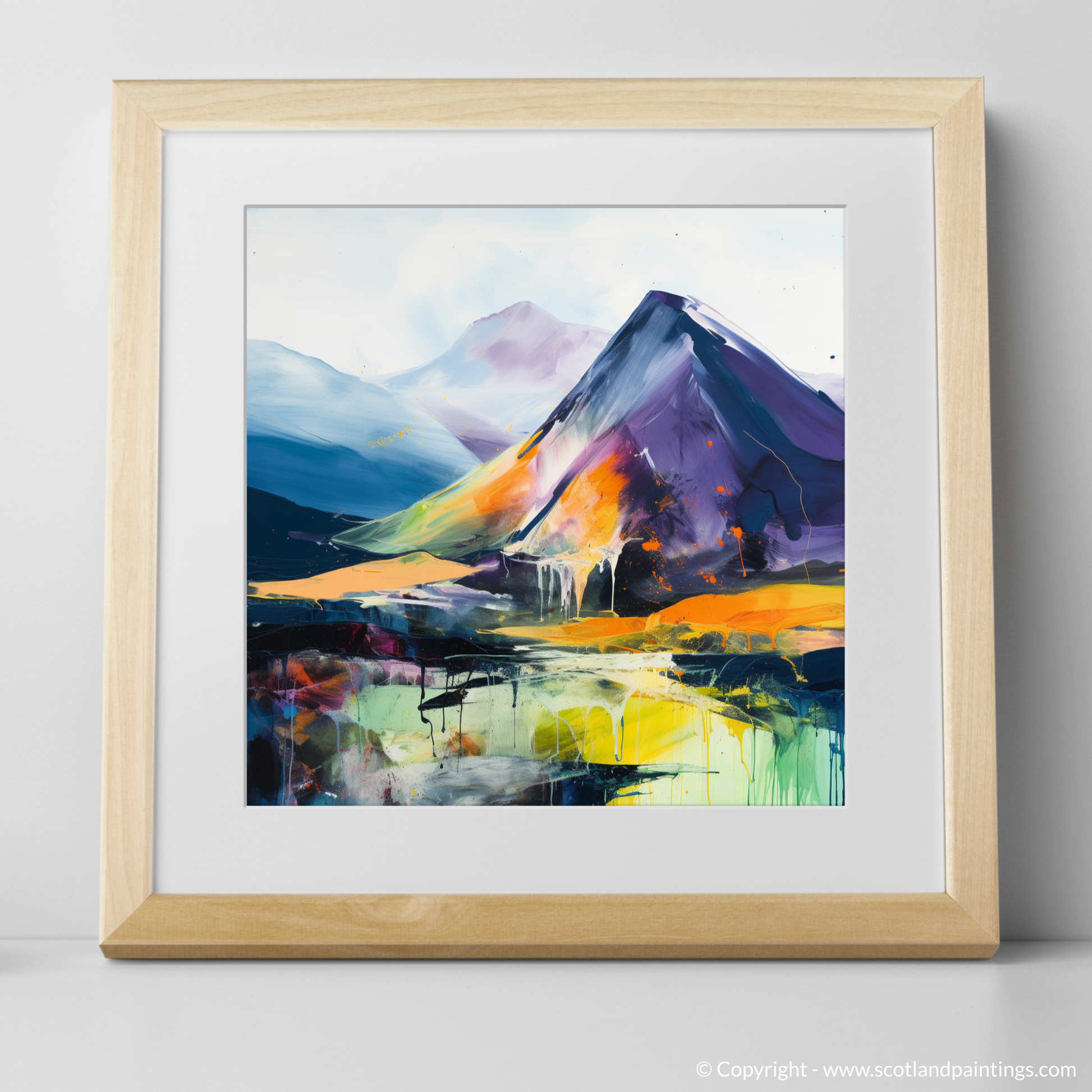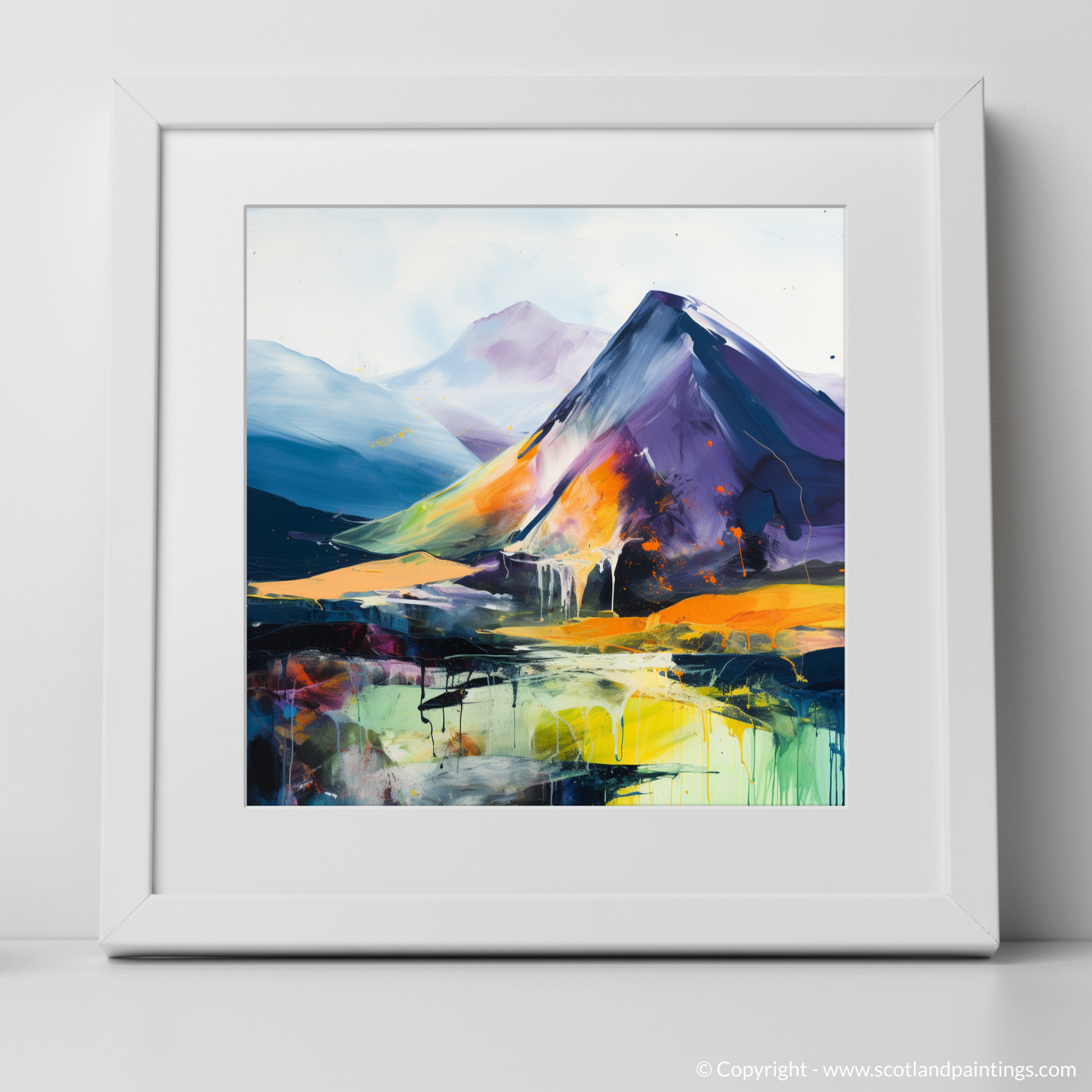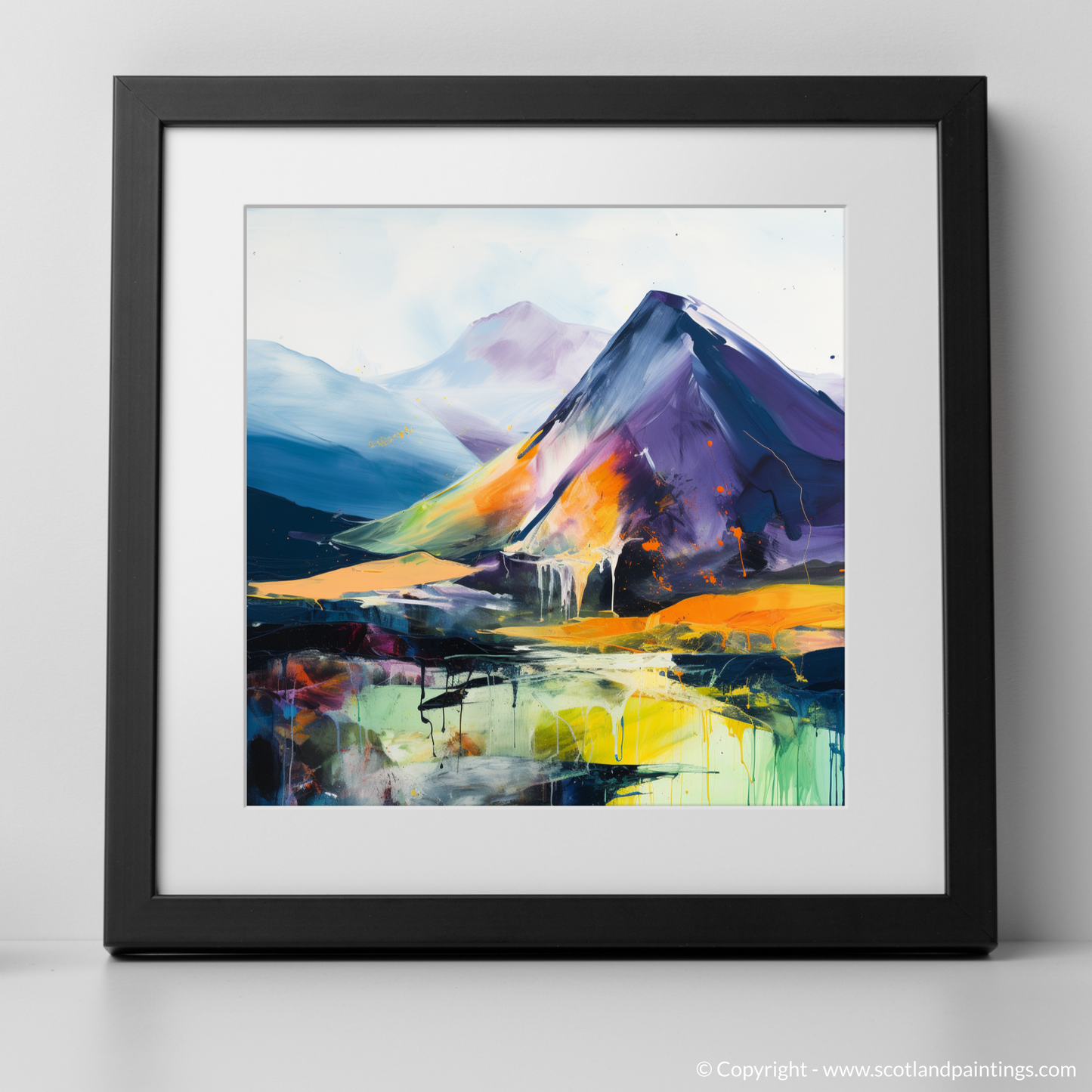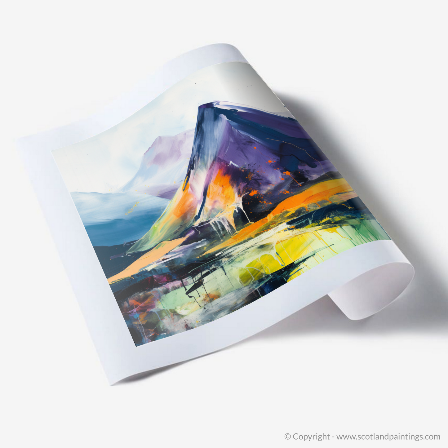 Drawing inspiration from the rugged majesty of Stob Coire Raineach, a peak in the iconic Scottish Highlands, this abstract print captivates with a vibrant interpretation of natural beauty. In a bold departure from the literal landscape, this piece marries raw emotional energy with the serene essence of the Munros.