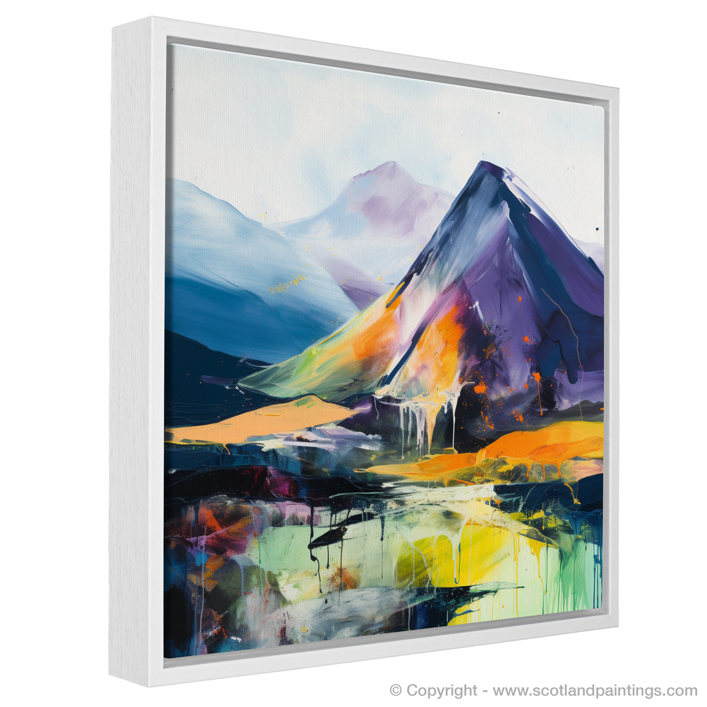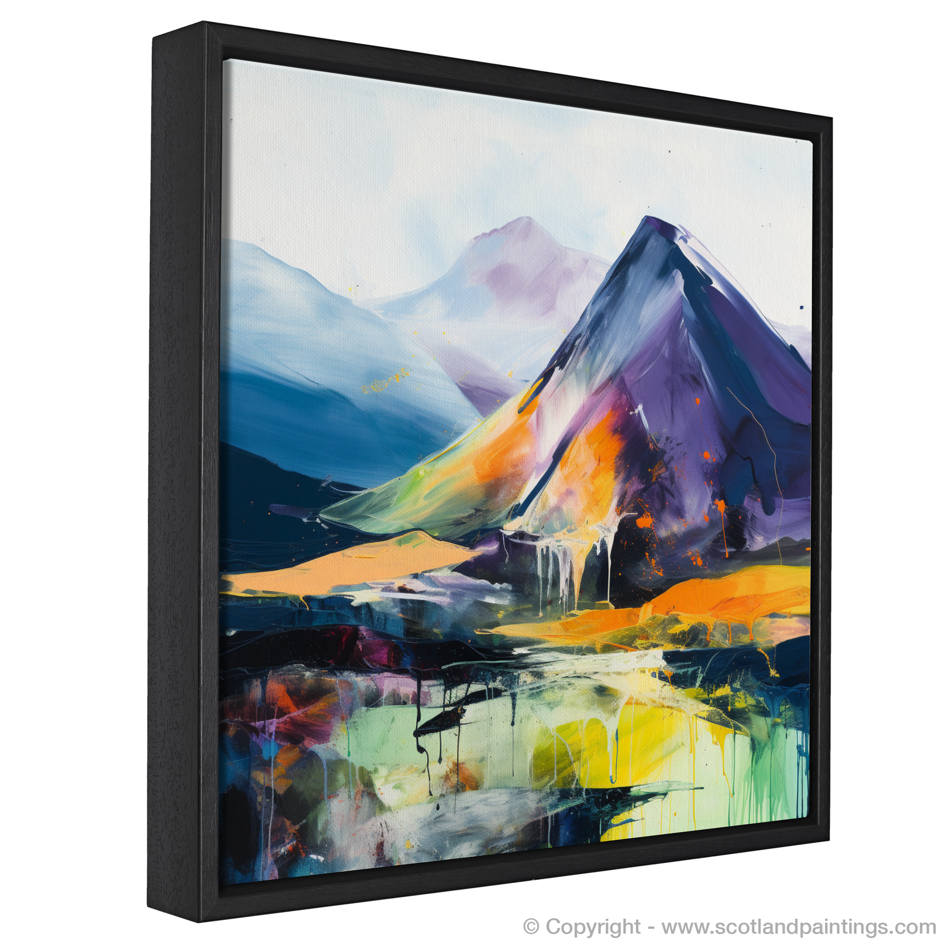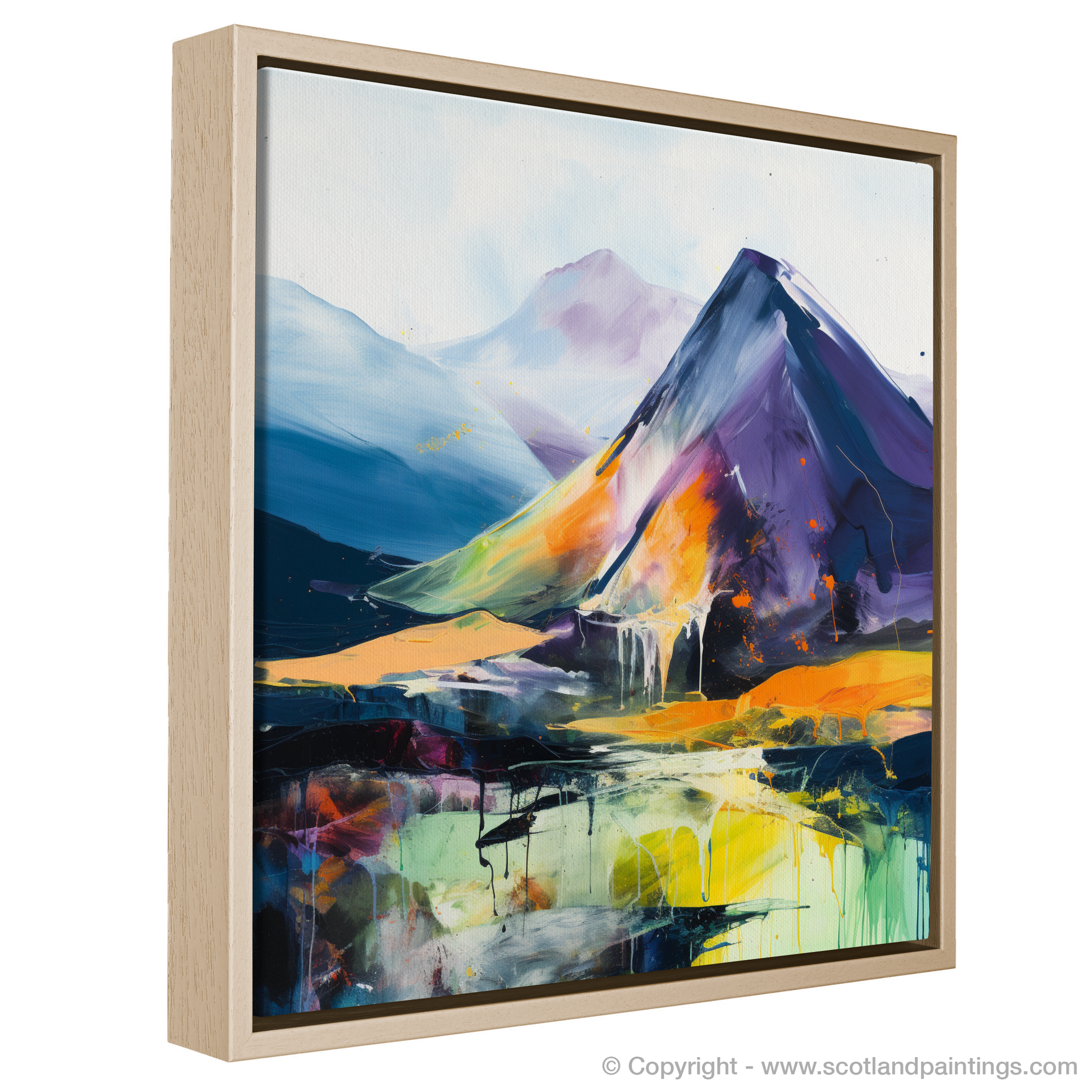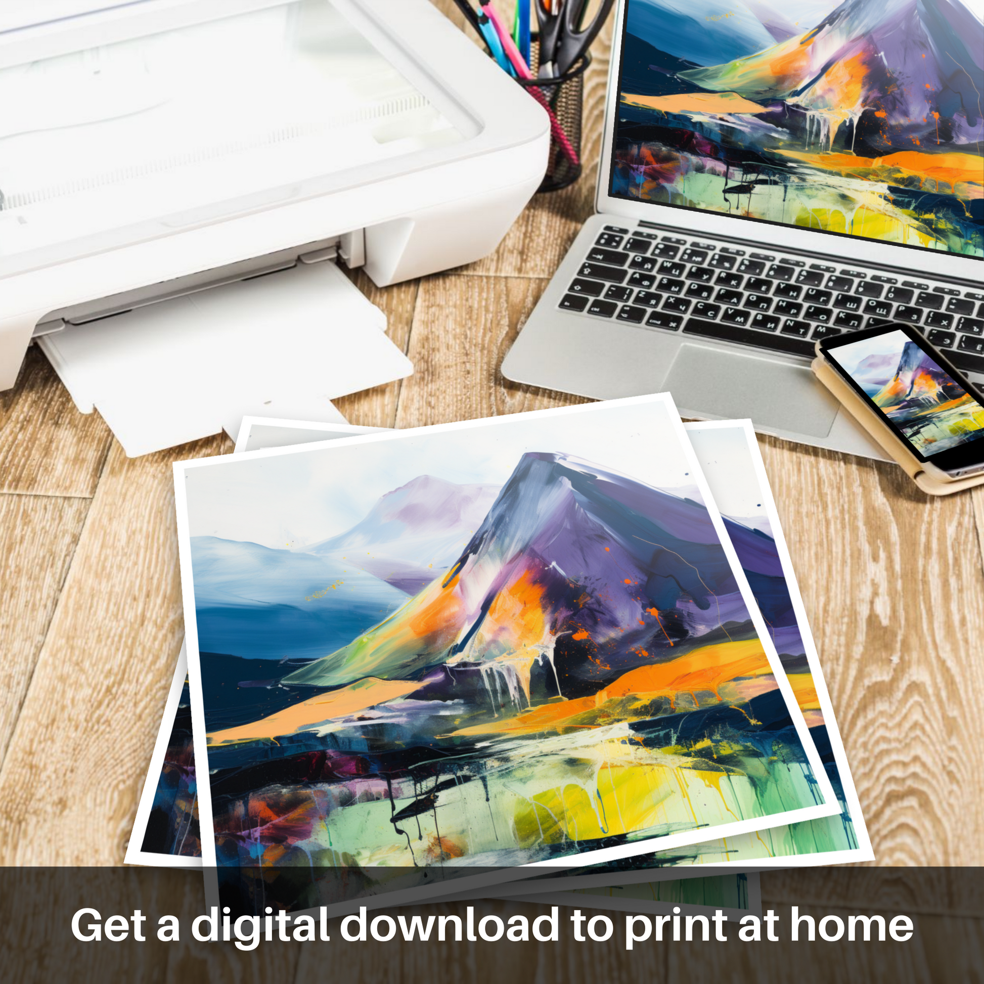 Drawing inspiration from the rugged majesty of Stob Coire Raineach, a peak in the iconic Scottish Highlands, this abstract print captivates with a vibrant interpretation of natural beauty. In a bold departure from the literal landscape, this piece marries raw emotional energy with the serene essence of the Munros.