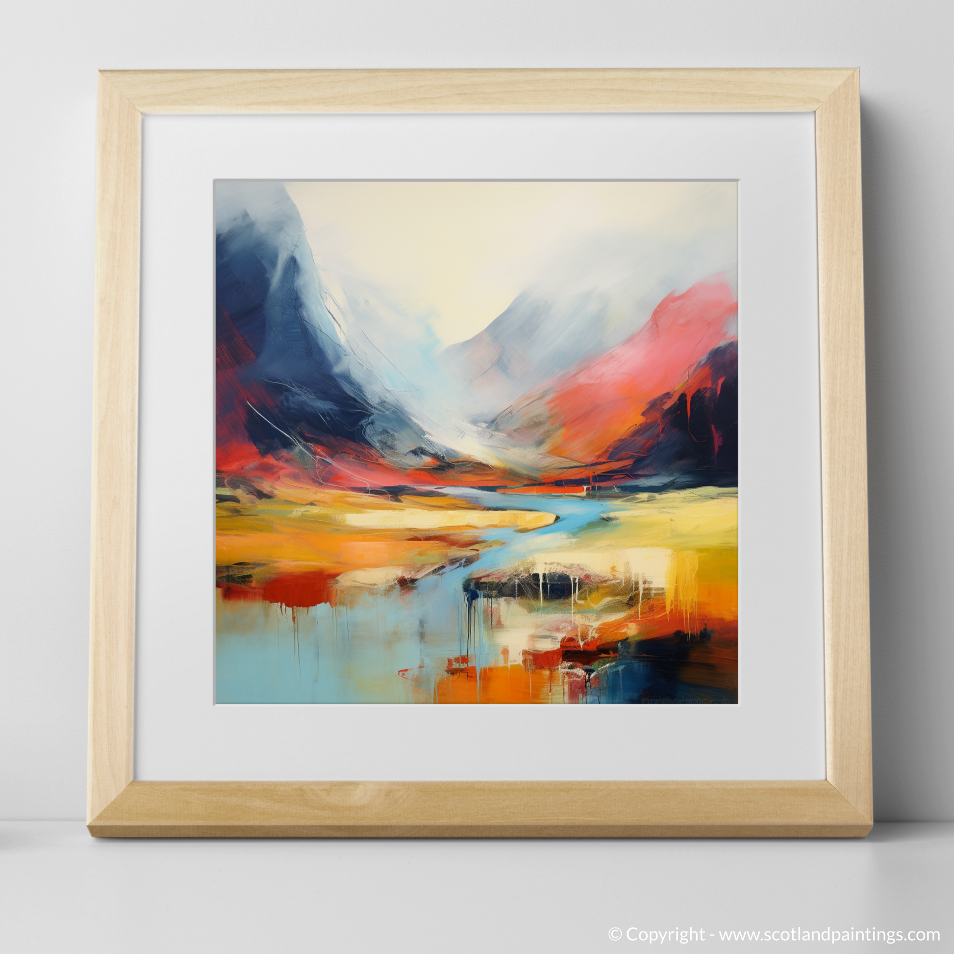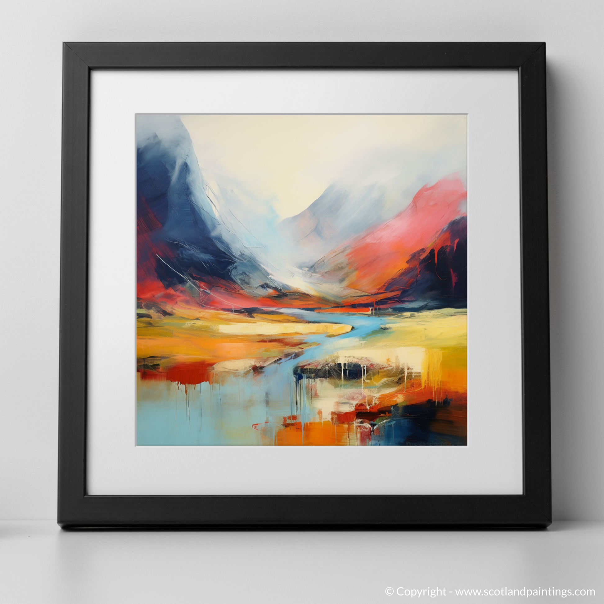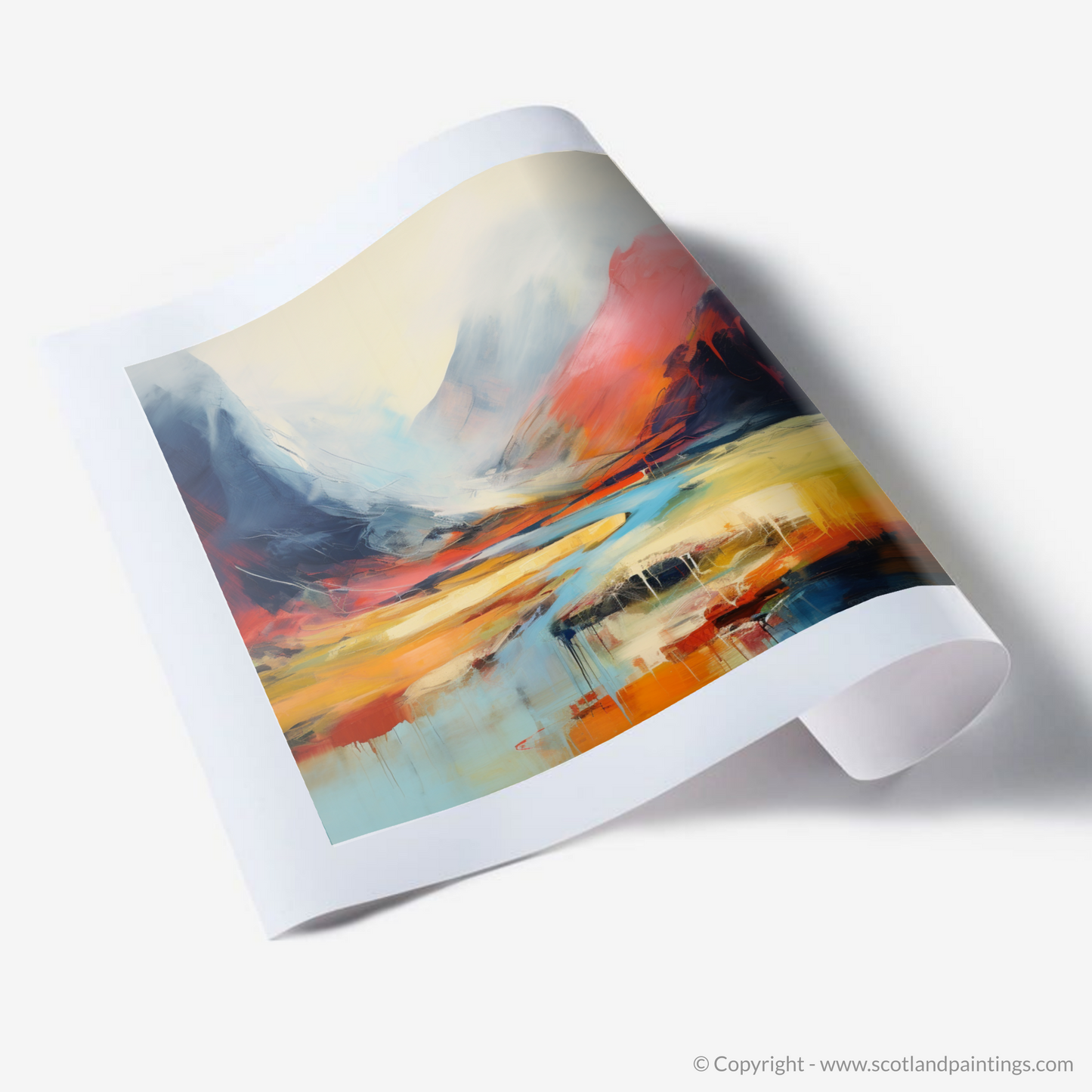Immerse your senses in the vibrant abstraction of Scottish wilderness with this inspired print. Capturing the essence of Stob Coire Raineach, part of the famed Buachaille Etive Beag in the Highlands, this piece is a symphony of colour and emotion, expressed through bold and fluid strokes.