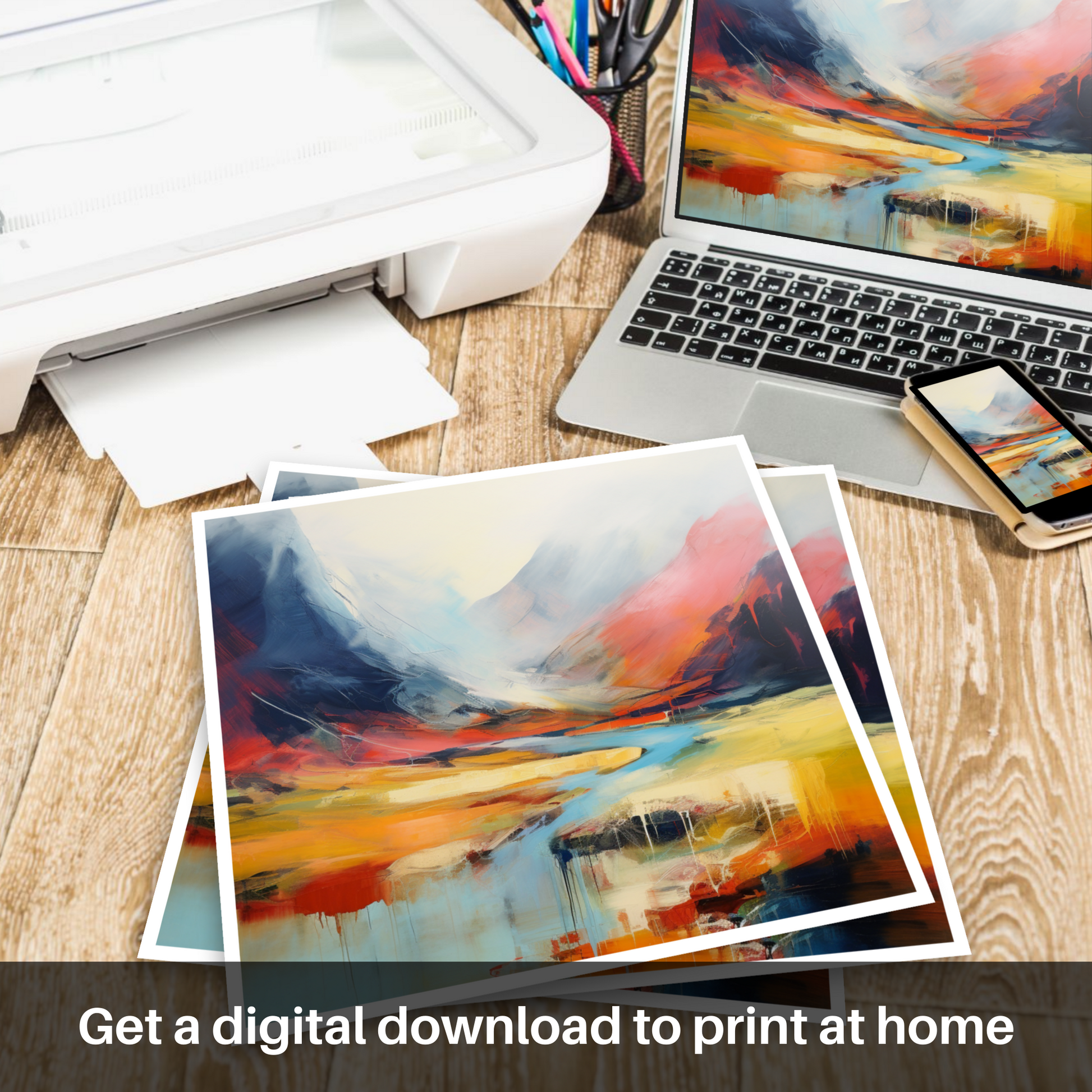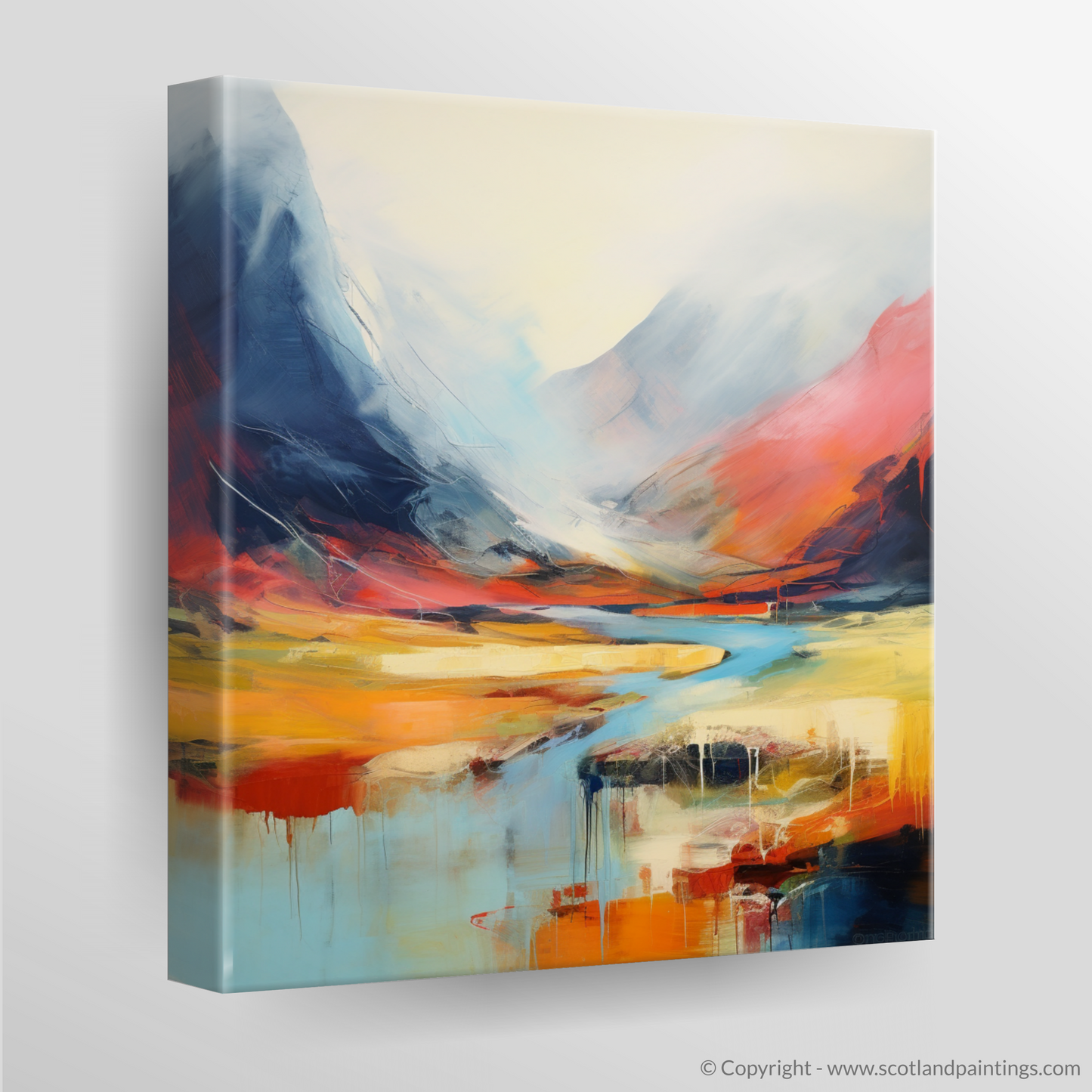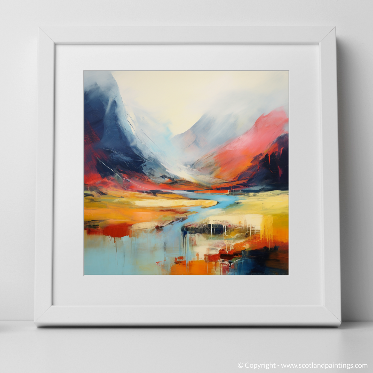 Immerse your senses in the vibrant abstraction of Scottish wilderness with this inspired print. Capturing the essence of Stob Coire Raineach, part of the famed Buachaille Etive Beag in the Highlands, this piece is a symphony of colour and emotion, expressed through bold and fluid strokes.
