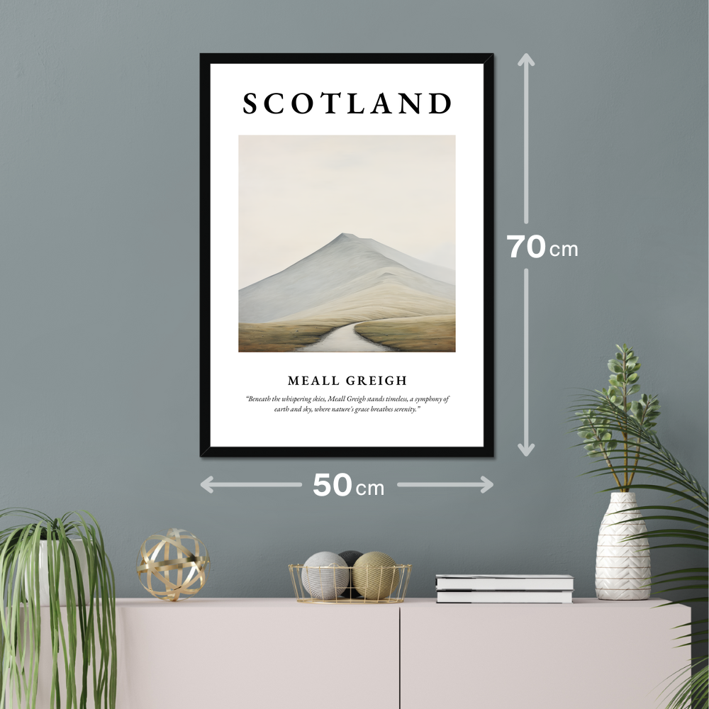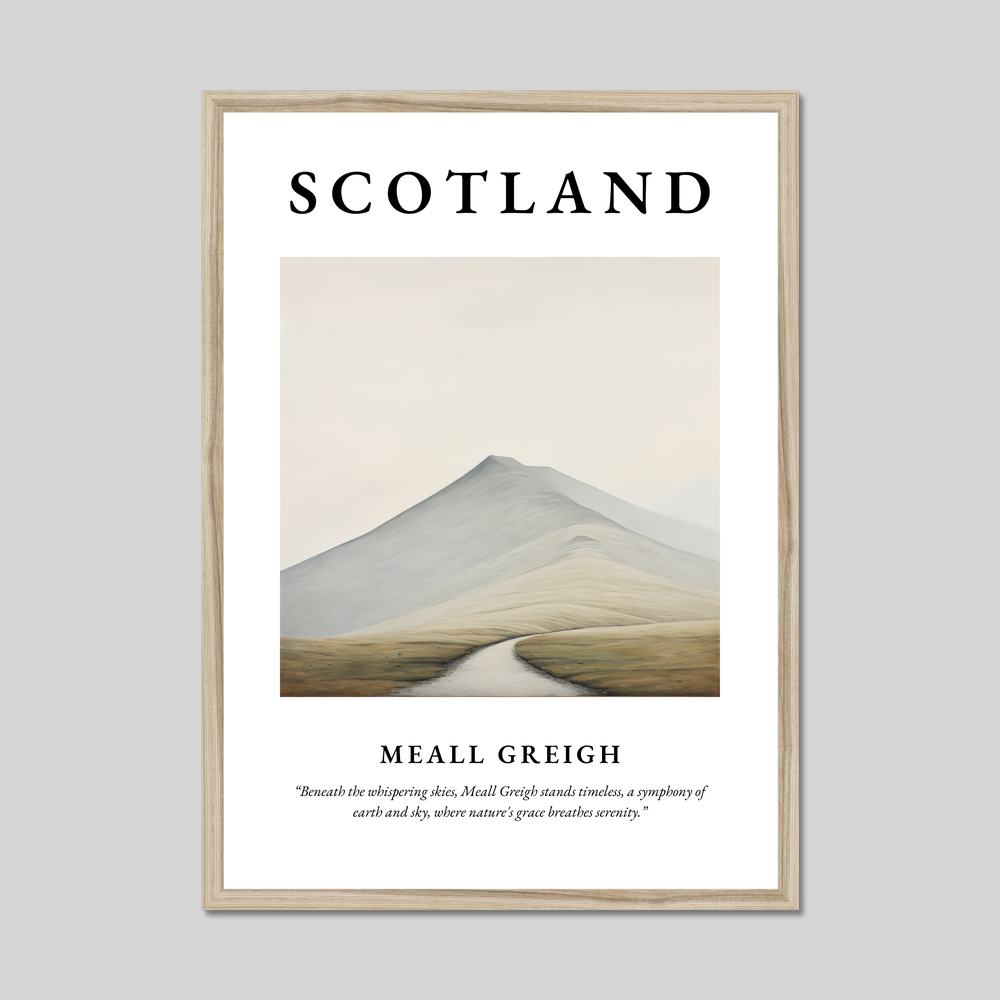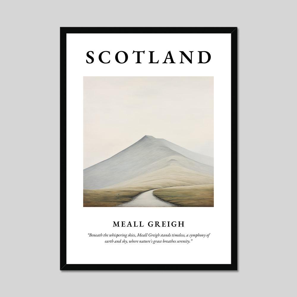 Embrace the untamed beauty of Scotland with this exquisite framed poster print, part of our exclusive “Scottish Munros” collection. Measuring an impressive 50cm x 70cm, this captivating artwork showcases the majestic Meall Greigh, a stunning tribute to nature's grace. Available in a choice of a sleek black, pristine white, or natural wood-effect frame, this piece complements any décor style, allowing you to bring a piece of Scotland into your home.