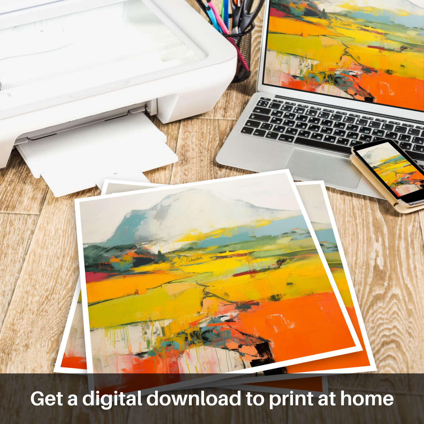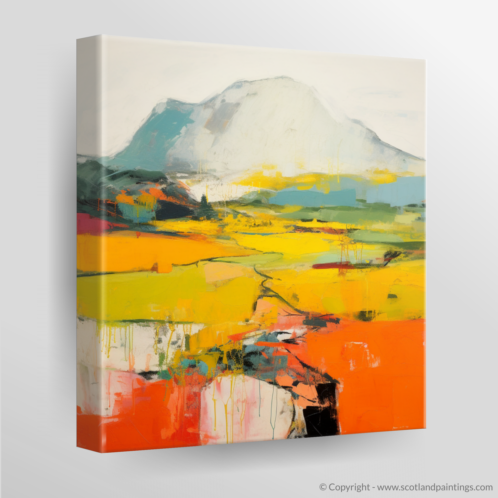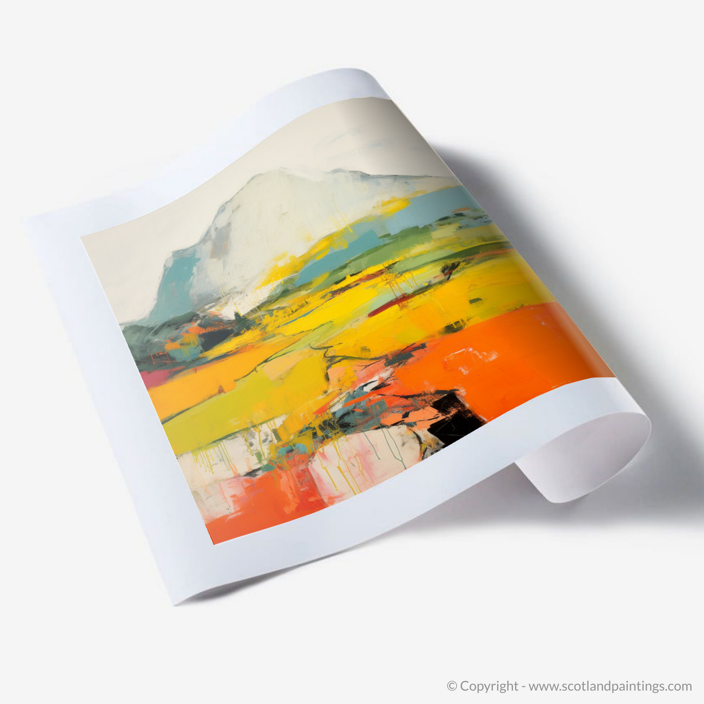 Immerse yourself in the vibrant hues and evocative forms of Scotland's rugged terrain with a captivating print that transports you to the heart of Creag Leacach. This abstract work of art masterfully reimagines the majestic contours of one of Scotland's iconic Munros, blending bold splashes of colour with the subtlety of gentle brushstrokes.