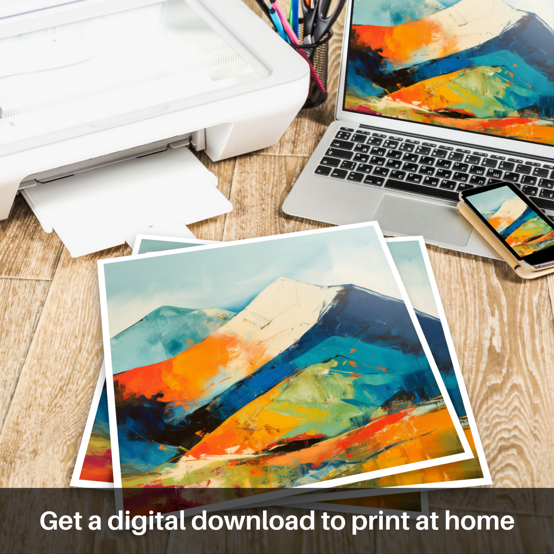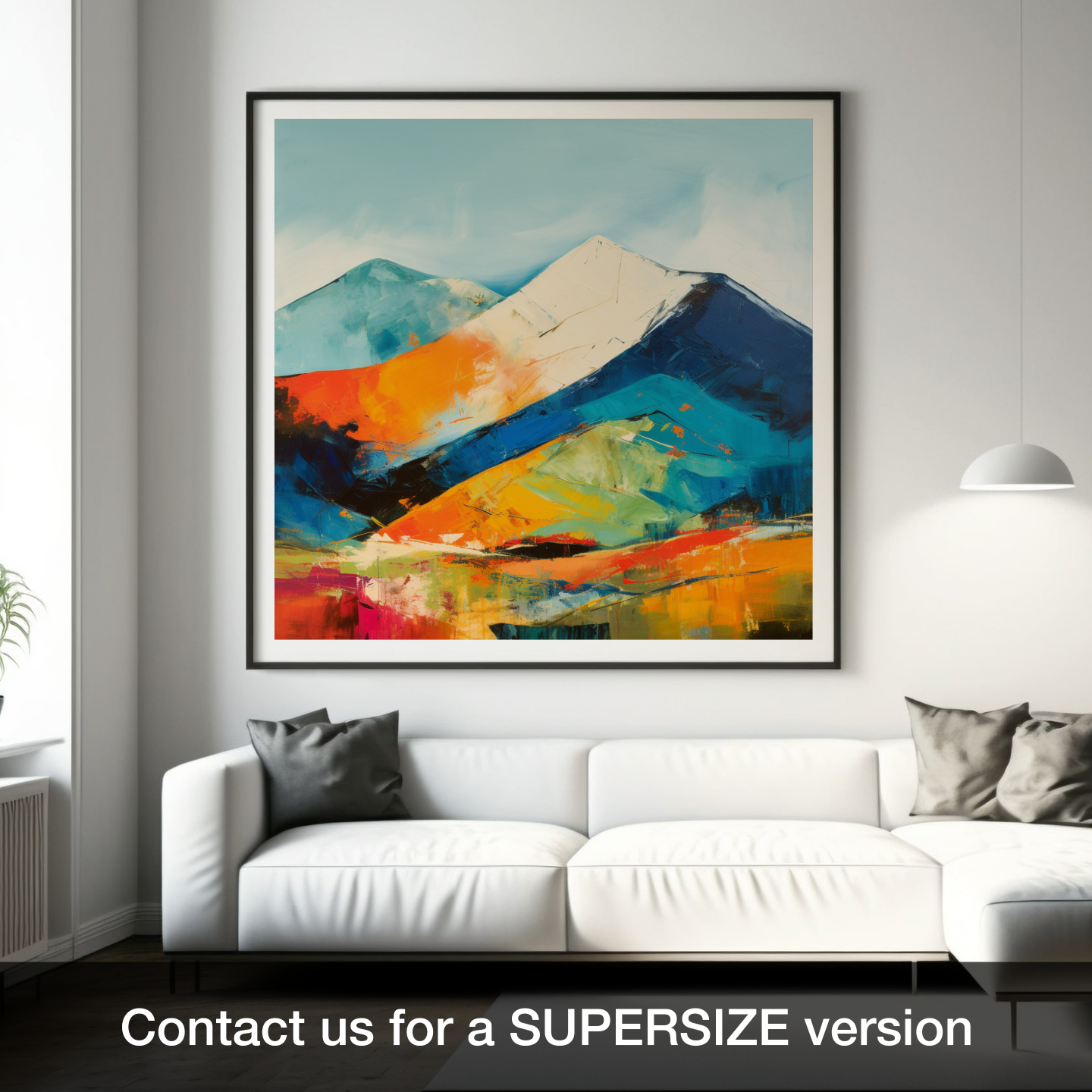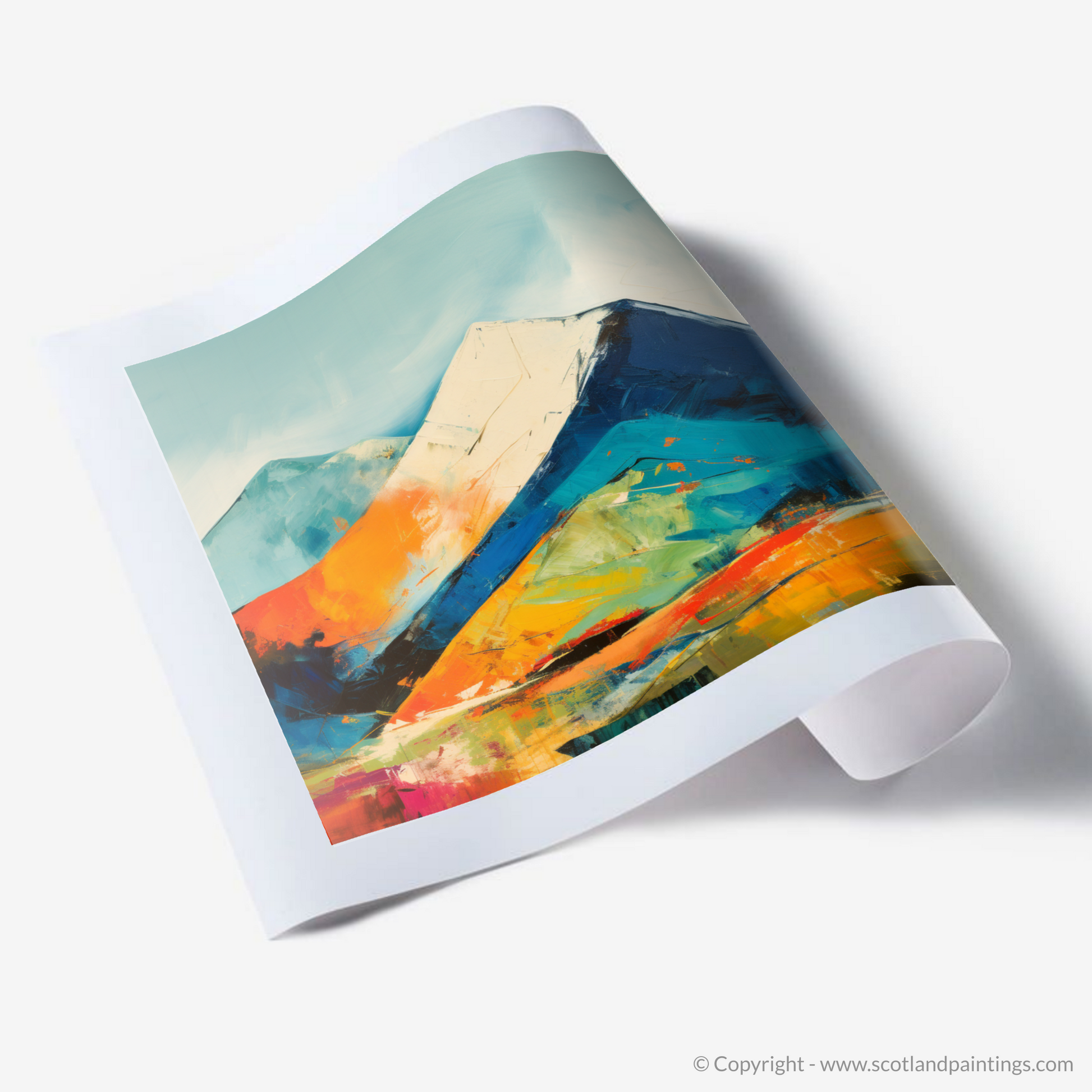 Evoking the mystical allure of the Scottish Highlands, this abstract interpretation of Meall Garbh (Ben Lawers) captures the viewer with its vibrant juxtaposition of colours and bold brush strokes. Celebrated within our esteemed 'Scottish Munros' collection, this artwork transports admirers to the untamed beauty of Scotland's rugged peaks and serene landscapes.