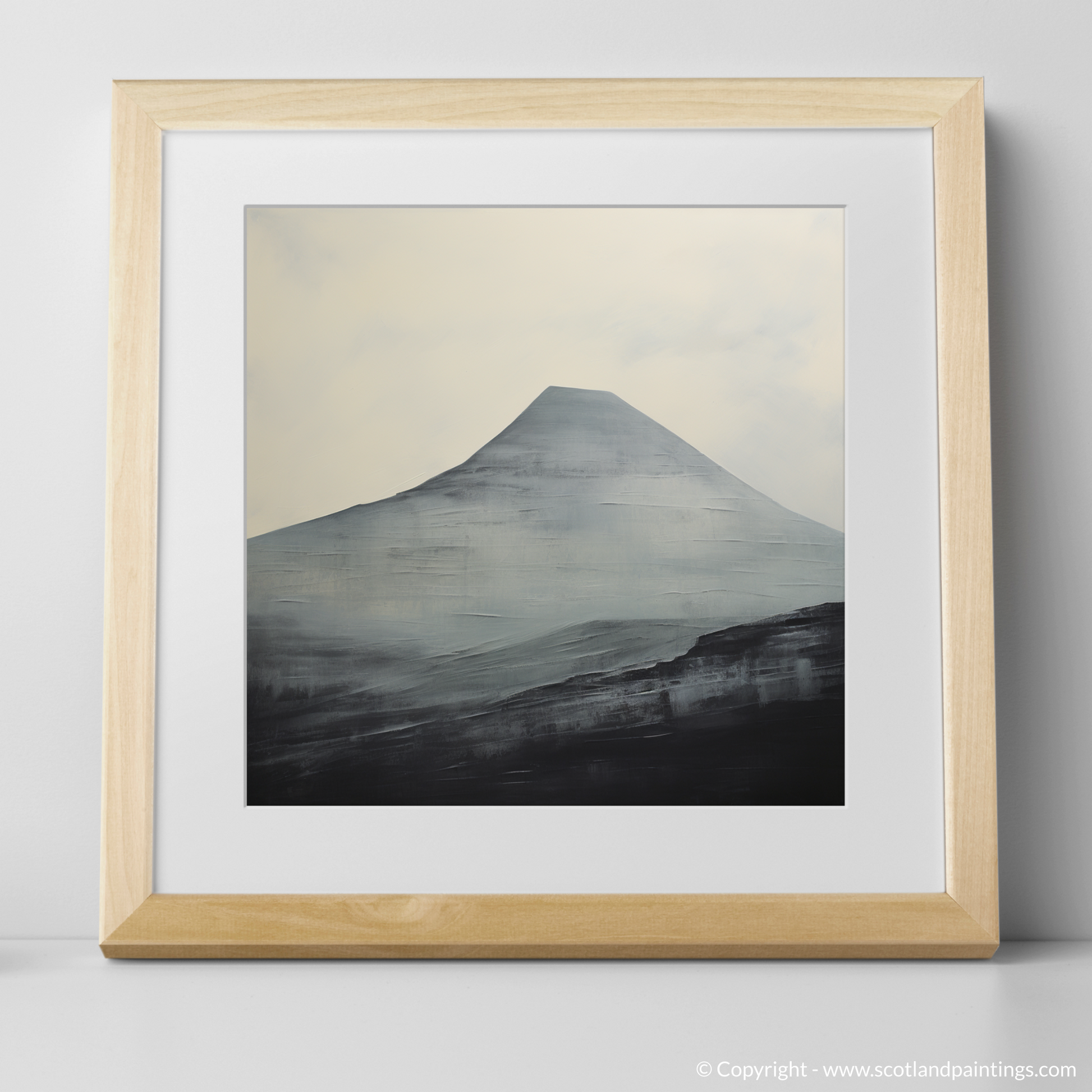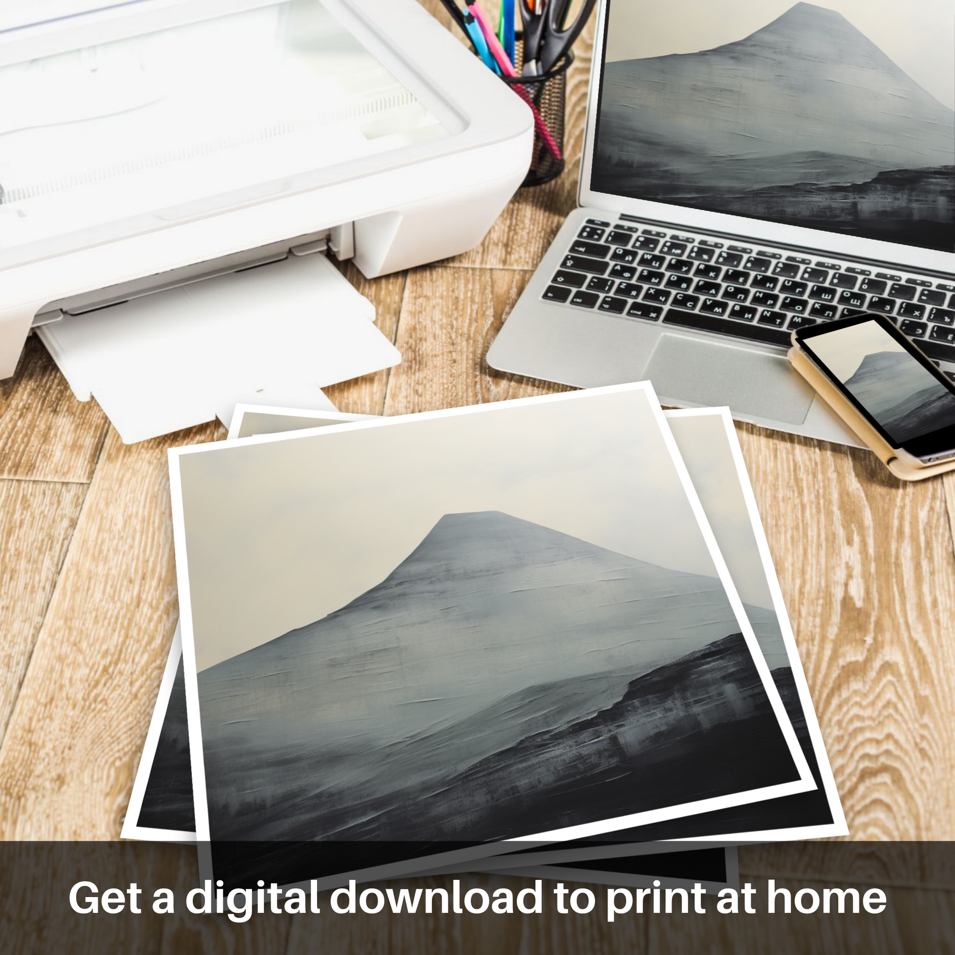 As your gaze lands upon this compelling abstract rendering, you are immediately transported to the essence of Meall Greigh, a majestic peak in the Scottish Highlands. The piece masterfully encapsulates the raw and moody beauty of one of Scotland’s revered Munros through a minimalist yet profound aesthetic that resonates with the soul of the natural landscape.