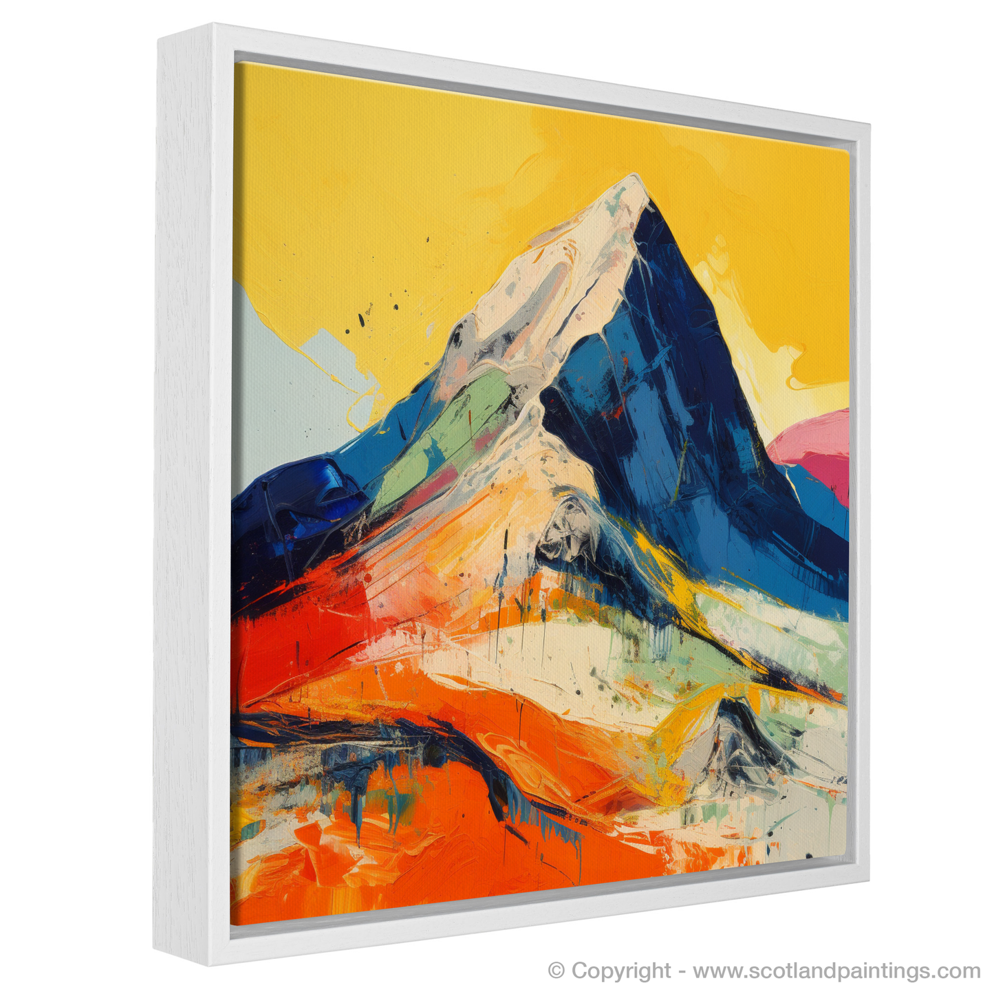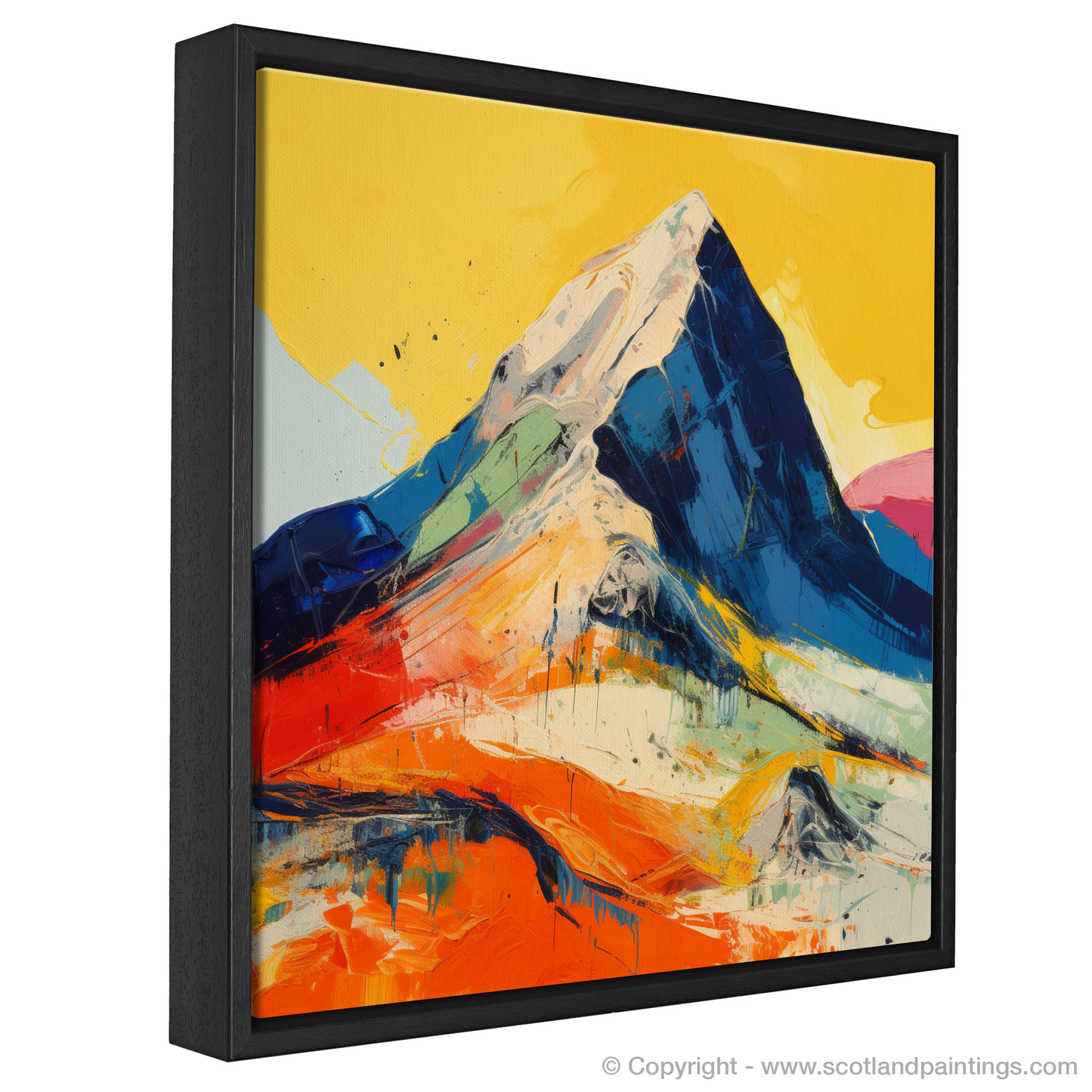 Immerse yourself in the vibrant, expressive strokes that whisk you away to the iconic slopes of Stob Coire Raineach. This compelling abstract piece captures the raw essence of one of Scotland's treasured Munros, using a daring and vivid colour palette that evokes the unique atmosphere of the Highlands. Swathes of sunny yellow and fiery orange infuse the piece with a surge of energy, suggesting the movement of light and atmosphere across the rugged landscape.