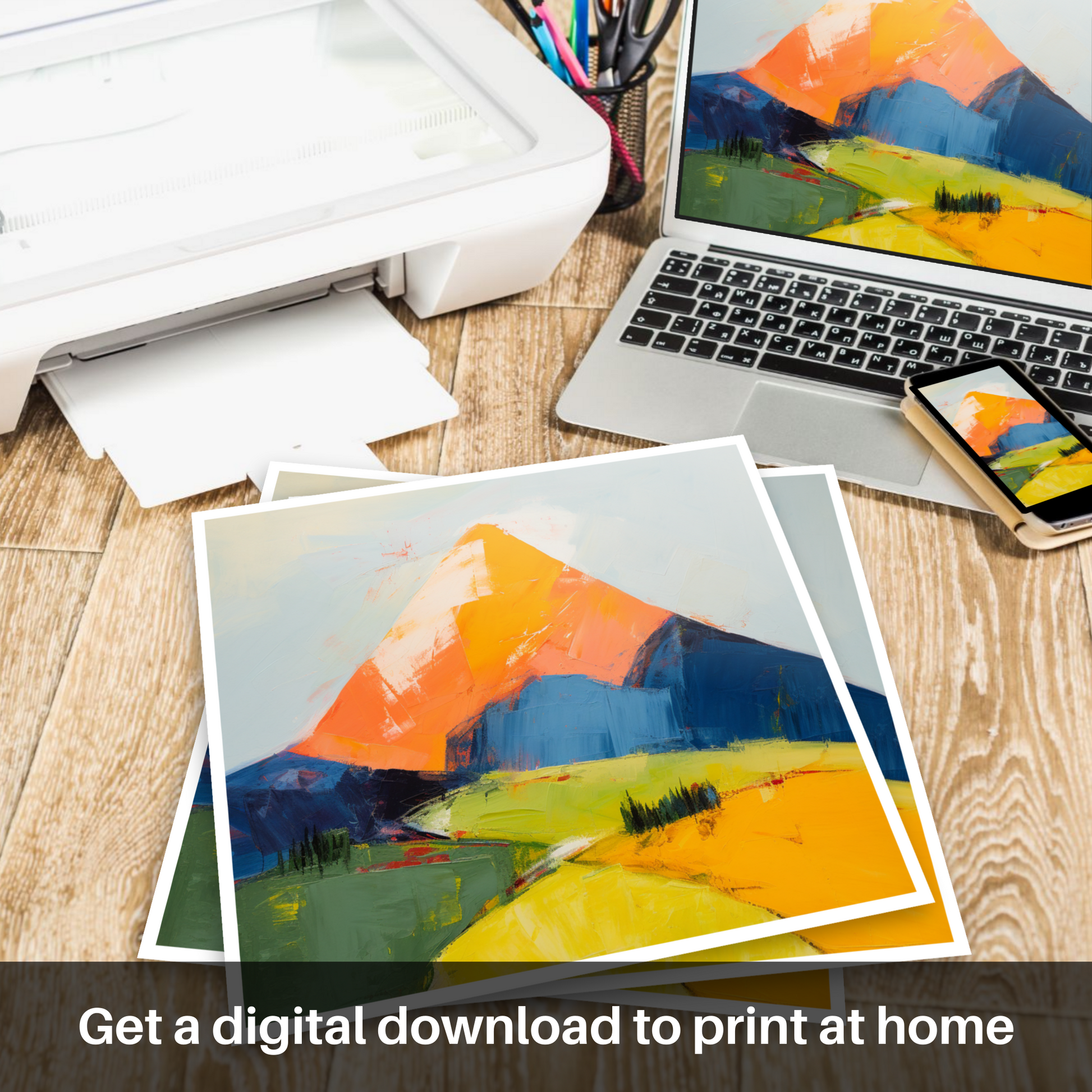 Immerse yourself in the vibrant hues of the Scottish Highlands with this enrapturing abstract print, drawn from the majesty of Cairn Gorm. A bold statement within our 'Scottish Munros' collection, this evocative piece tantalises the senses, inviting the beholder to interpret the wild and untamed beauty that is unique to Scotland's mountainous landscape.
