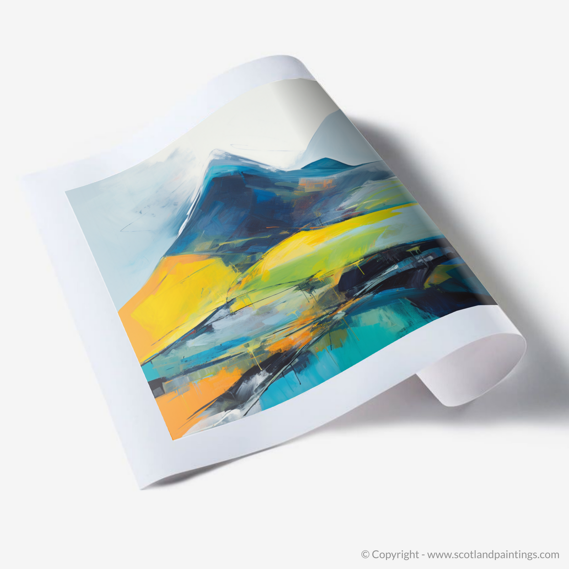 This abstract interpretation captures not only the visual splendour but also the intangible spirit of Beinn Ìme, a piece that resonates with the heartbeats of Scotland's wild and untamed landscapes. Reflecting the dynamic weather patterns and elemental forces at play, the print allows viewers to contemplate the sublime beauty from the warmth and comfort of their own abode.