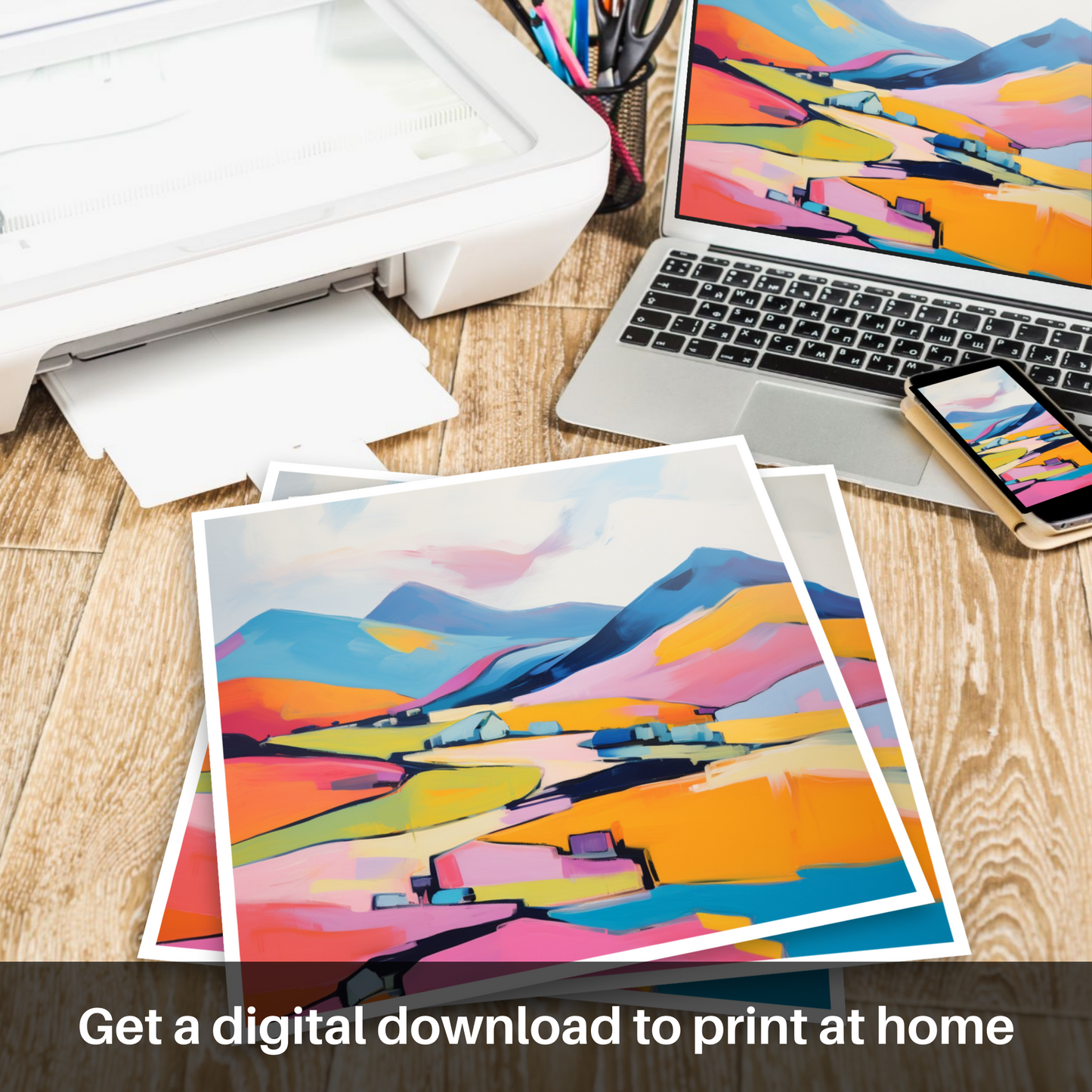 Embrace the rich vibrancy of Scotland's rugged terrain with our exclusive abstract print inspired by The Cairnwell—a majestic member of the Scottish Munros. Casting convention aside, this print pulses with vivacious hues and fluid forms, capturing the essence of the Highlands in an explosion of colour and emotion.