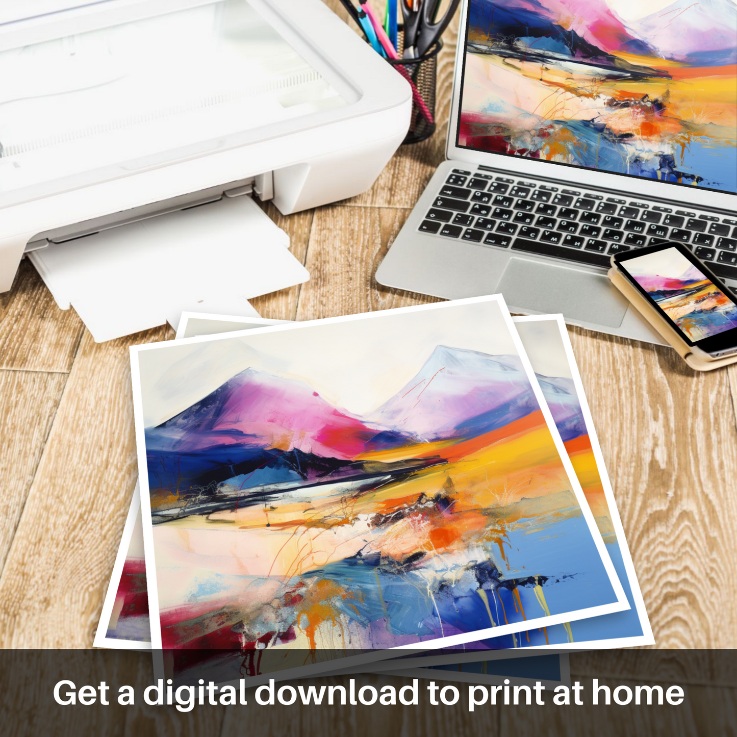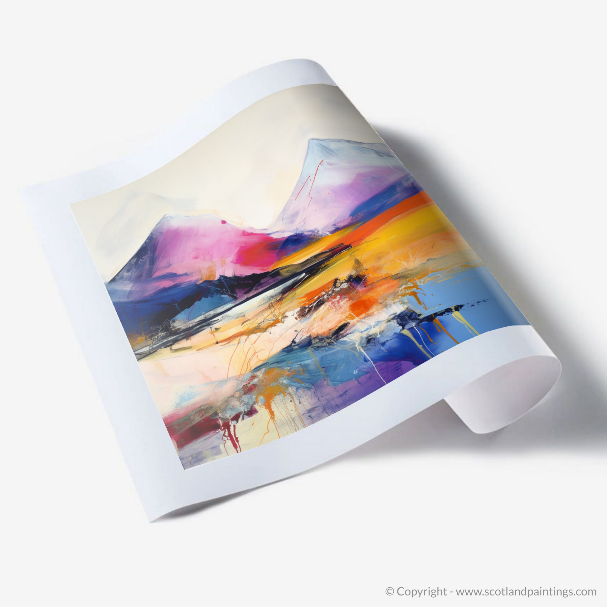 Elevate your space with this captivating abstract print that channels the rugged allure of Beinn Narnain, a beloved sentinel in the Scottish Munros. The composition is a mesmerising concoction of vivid hues and energetic brushstrokes, encapsulating the raw beauty and storied landscapes of Scotland's highlands.
