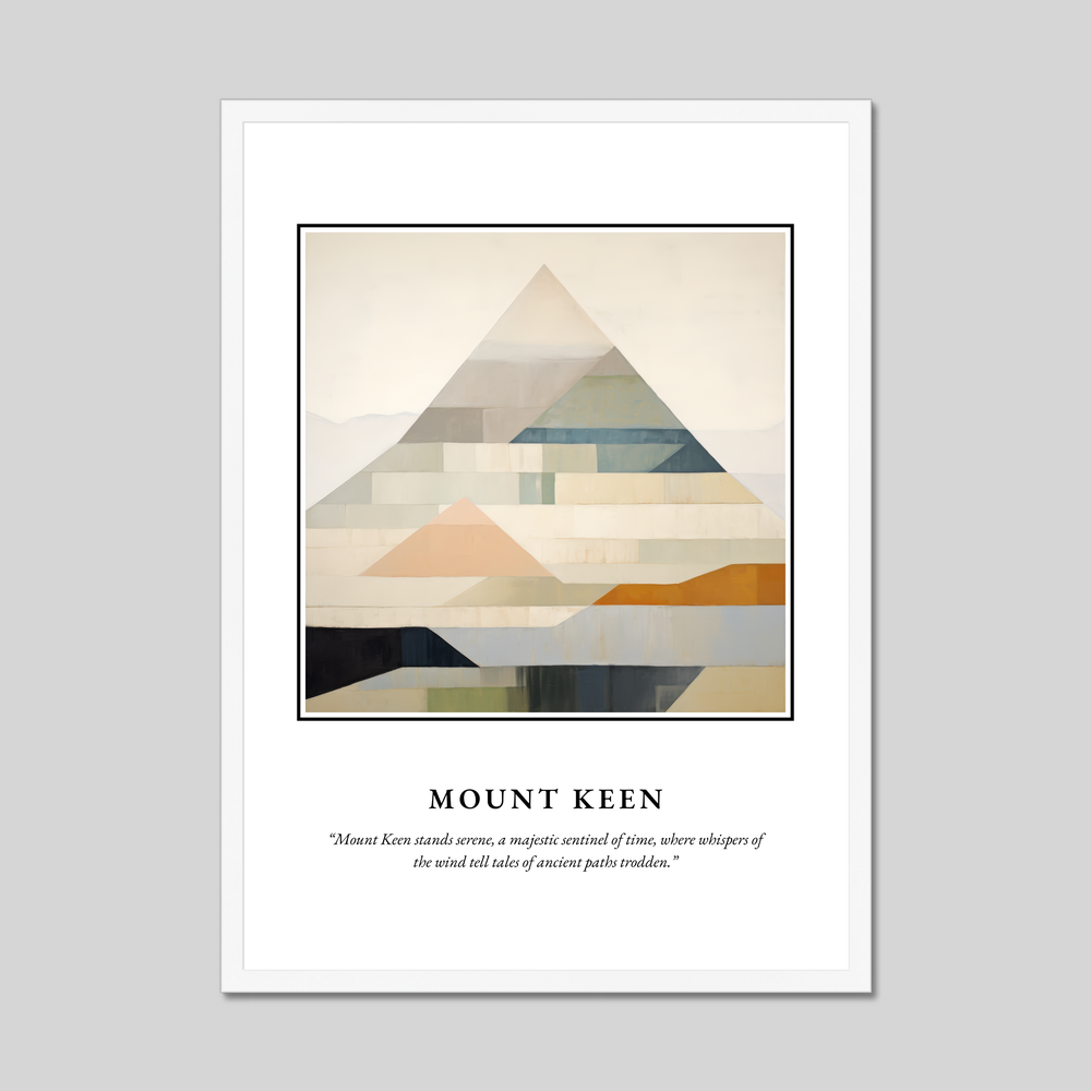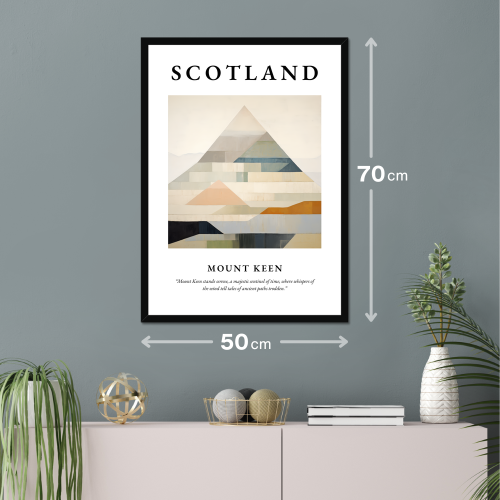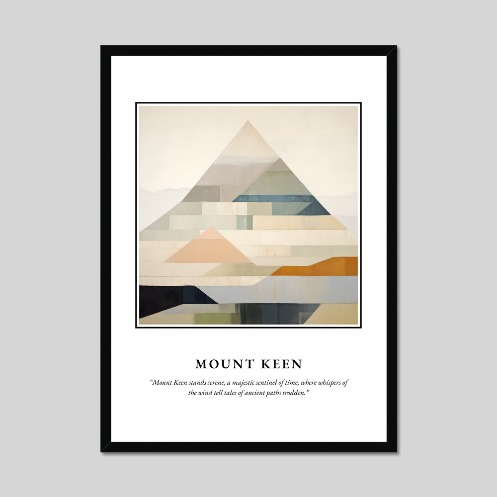Underneath the painting, the evocative quote “Mount Keen stands serene, a majestic sentinel of time, where whispers of the wind tell tales of ancient paths trodden” invites you to reflect on the mystical landscape. This piece is ideal not only for admirers of abstract art but also for those with a connection to this iconic location.