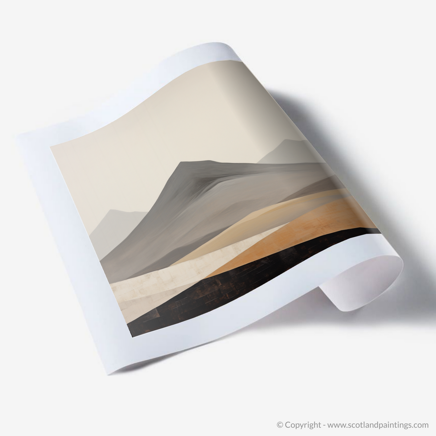 Capturing the essence of Scotland's rugged terrain, this evocative abstract print is inspired by the majestic Meall Garbh, part of the renowned Ben Lawers range. The artwork is a harmonious blend of form and colour, with sweeping contours and a palette that reflects the natural beauty of the Scottish Highlands.