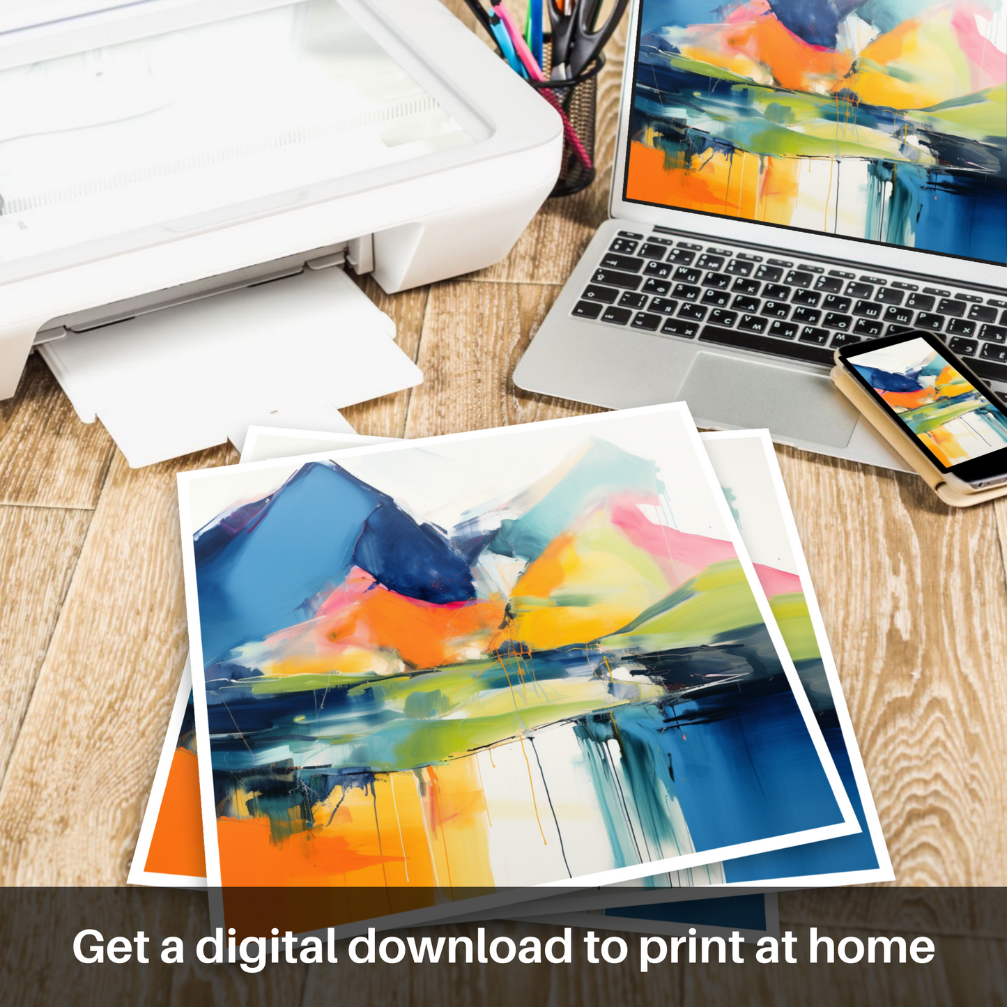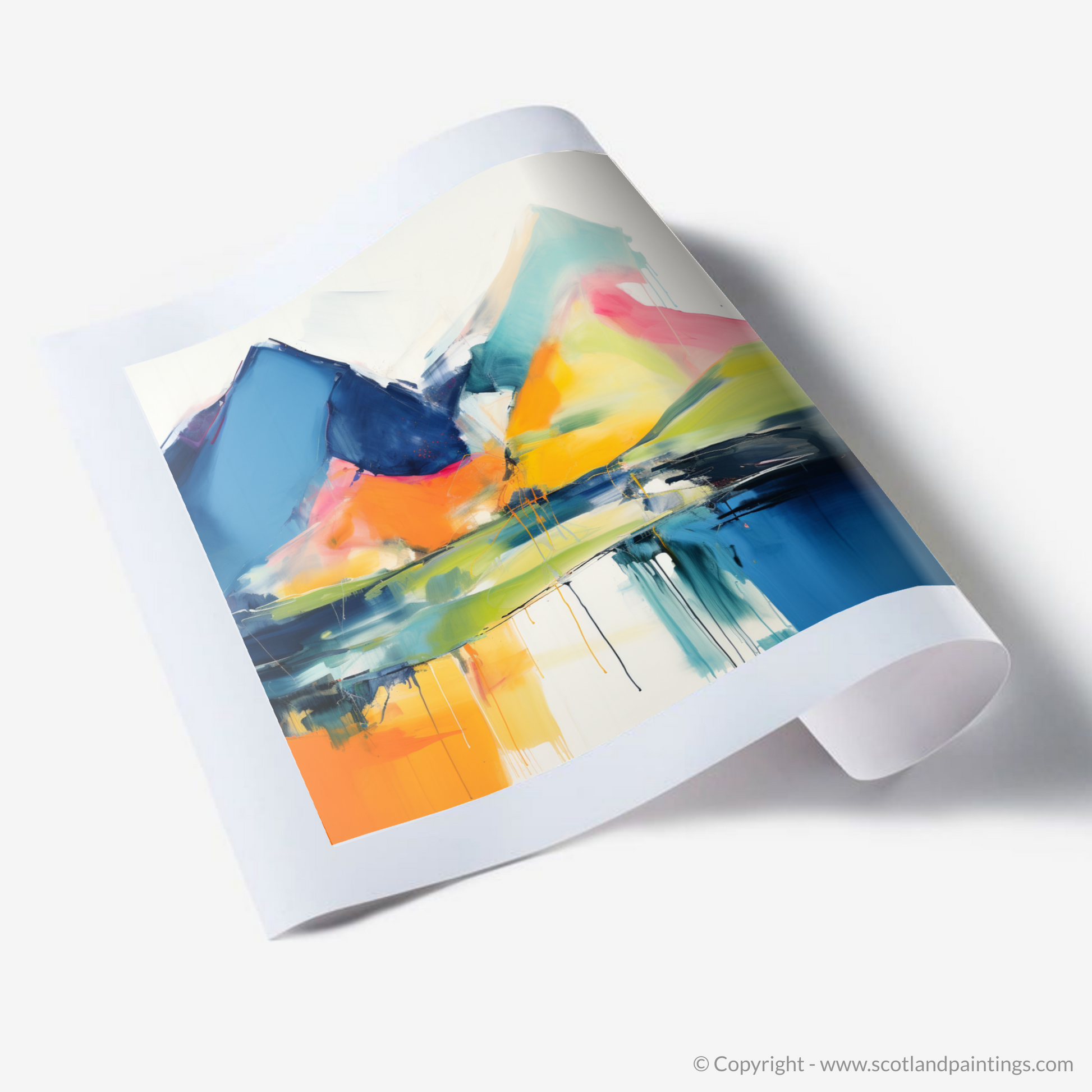 This exquisite print captures the essence of Beinn Ìme through a captivating abstract portrayal, where the majesty of Scottish Munros is reborn with vibrant, unbridled strokes of colour. The composition is a visual symphony of bold, sweeping brushstrokes that dance across the canvas, evoking the wild and untamed beauty of the Highlands.
