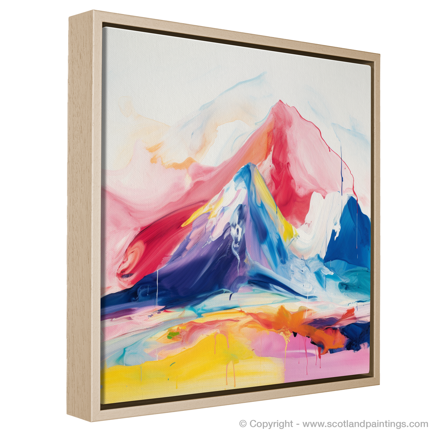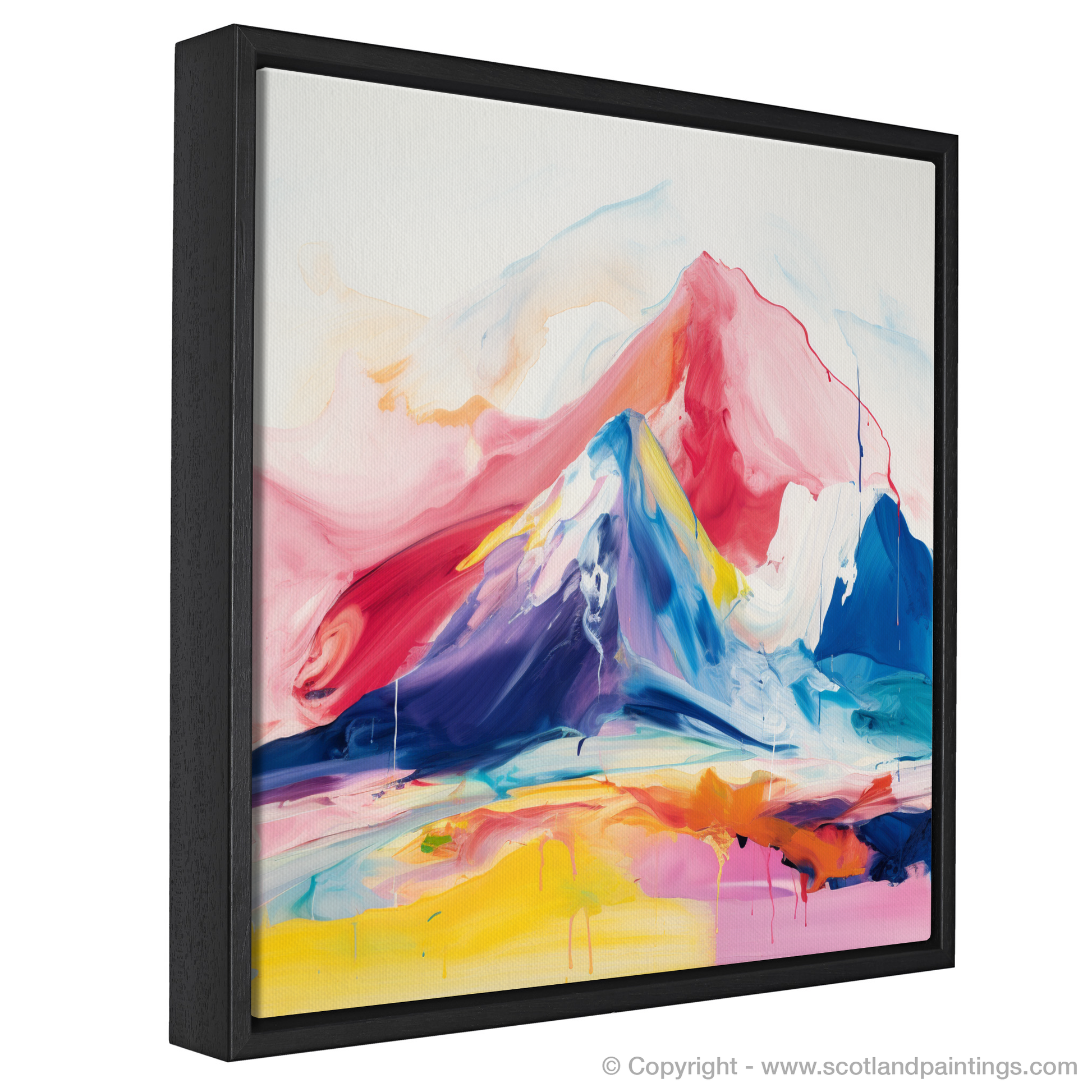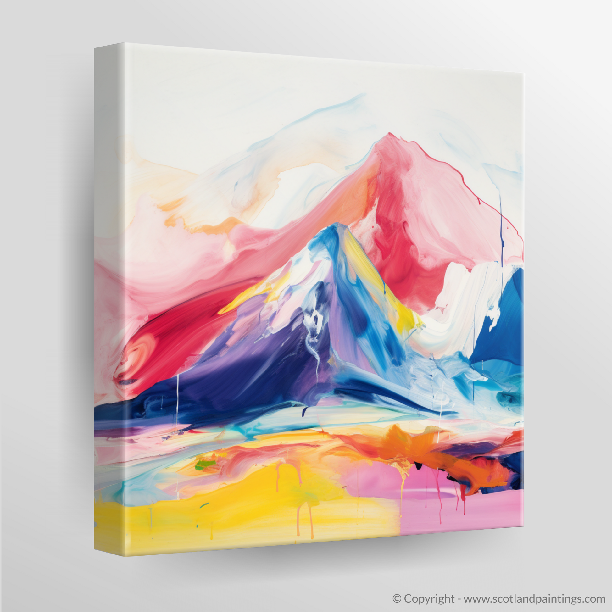Embark on a visual journey through the Scottish Highlands with our captivating abstract print, inspired by the formidable presence of Ben More. This piece masterfully captures the spirit of the majestic Munros through a vibrant palette and expressive brushstrokes that dance across the canvas. Swirls of pink and coral hues evoke the dramatic skies often witnessed at the summit, while the cool blues and purples suggest the shadows and textures of the mountain's rugged terrain.