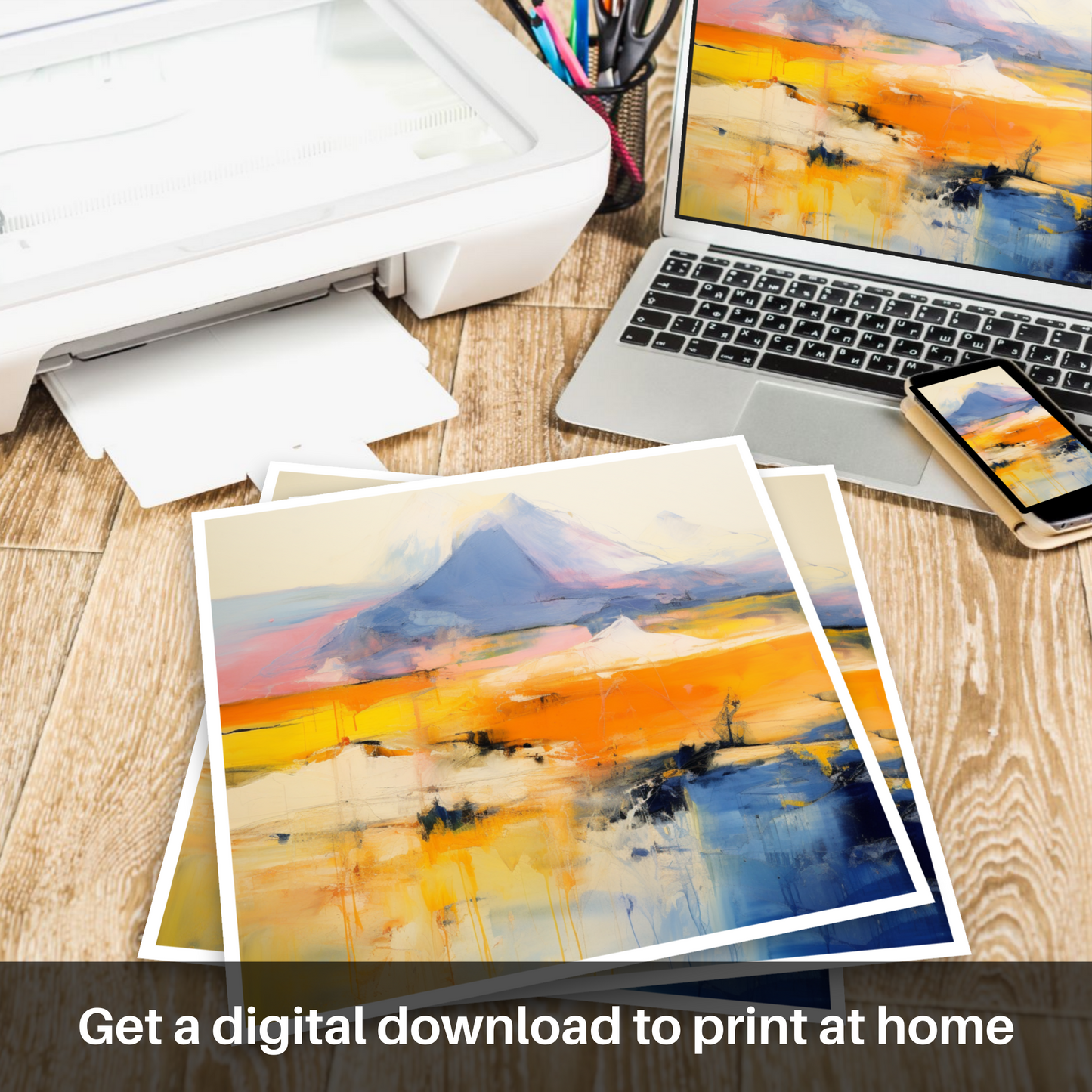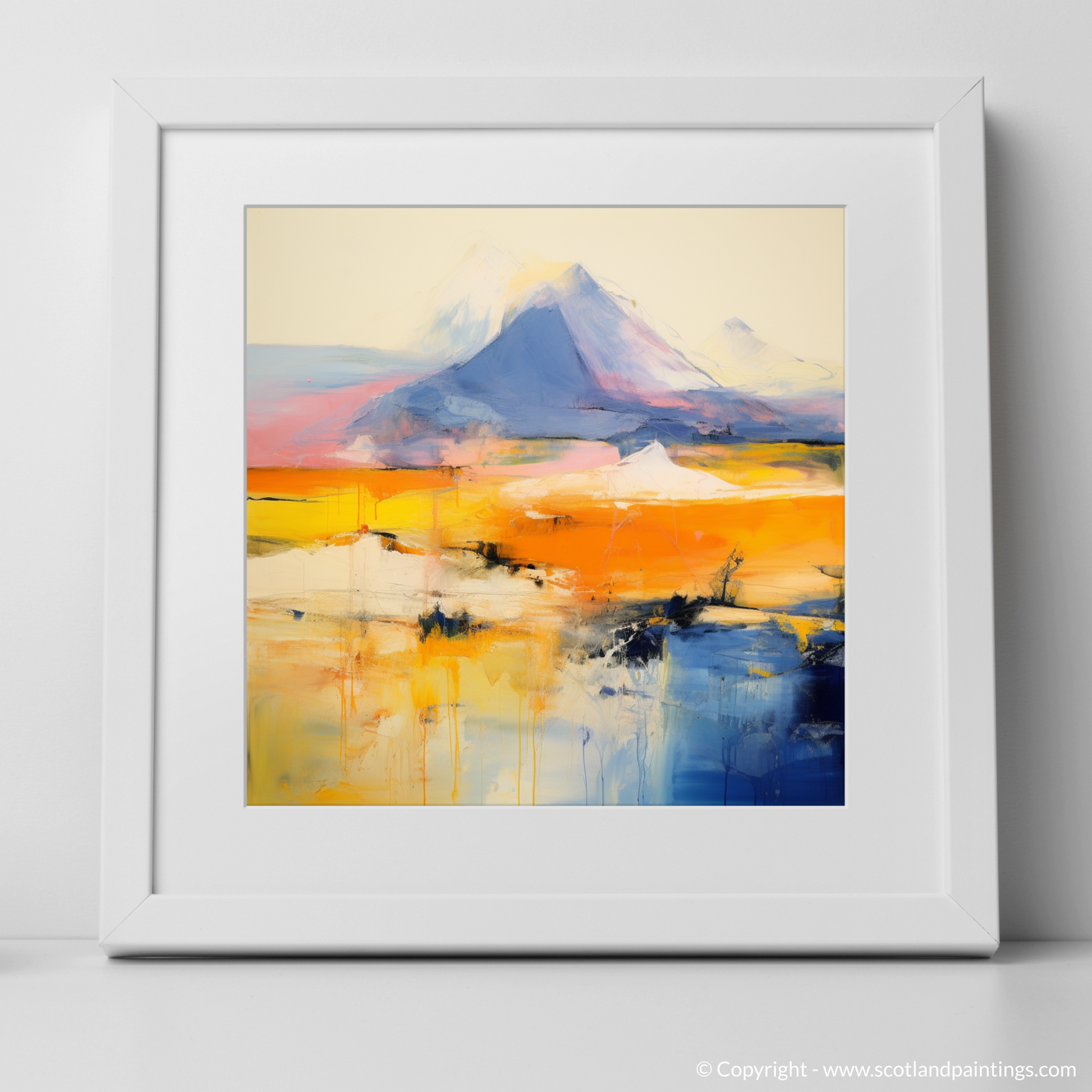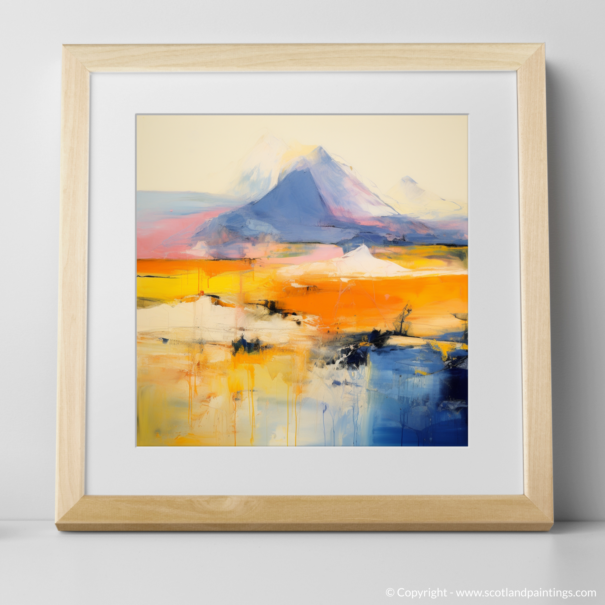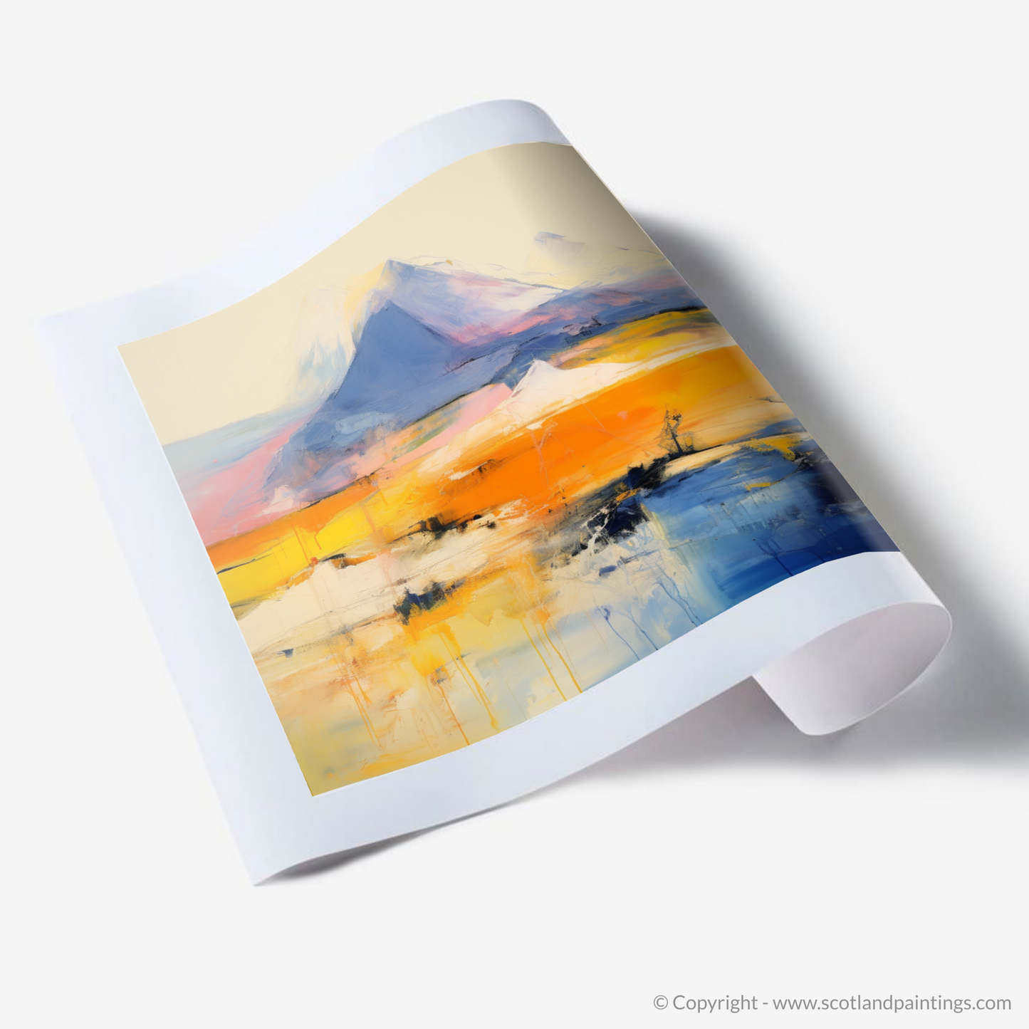 Capturing the raw and untamed beauty of Scotland's majestic landscape, this evocative print presents a vivid interpretation of Meall Garbh, part of the celebrated Càrn Mairg group. With abstract fervour, the artwork plays with a palette that takes one on a journey through the highlands' natural wonder, where geology and artistry collide.