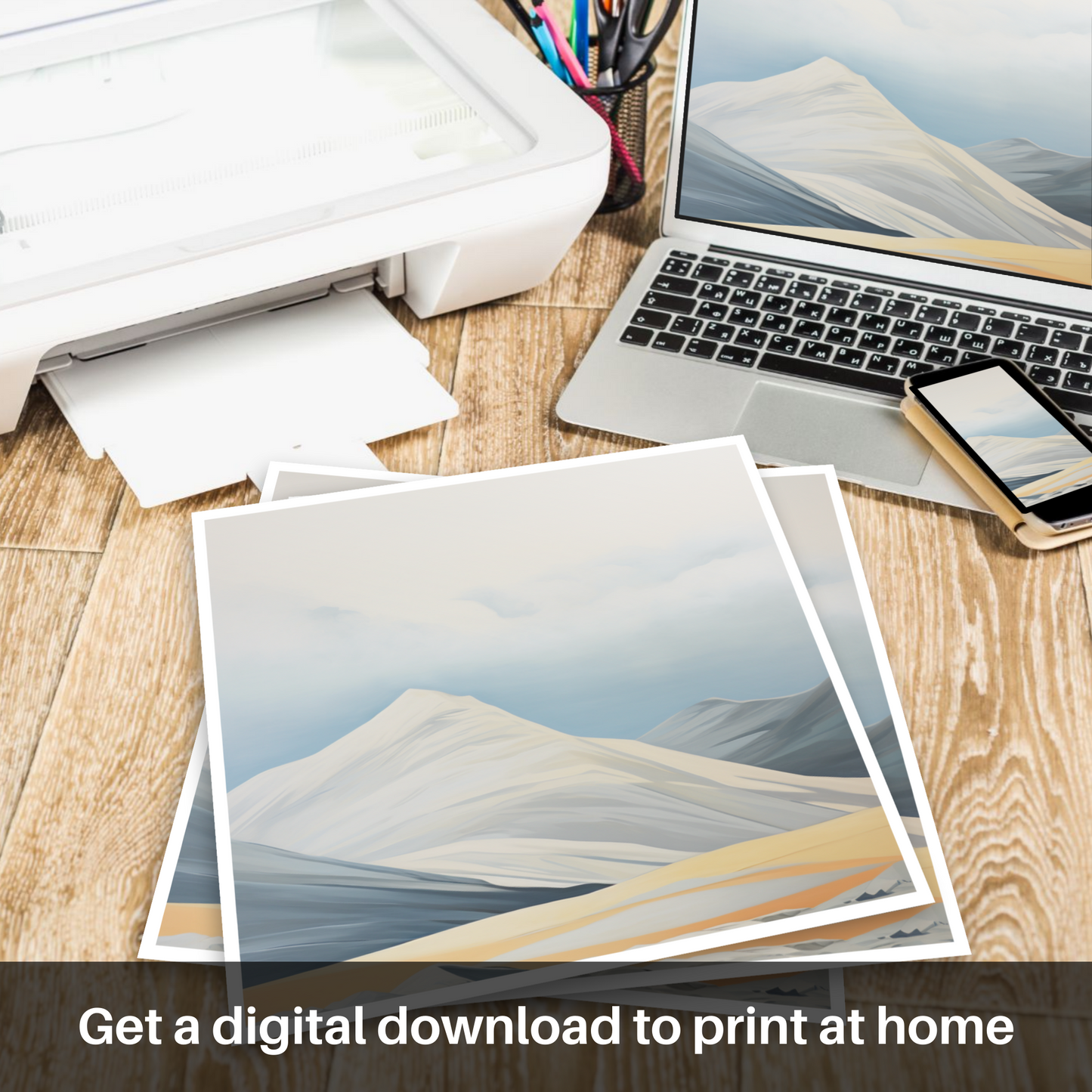 Inspired by the majestic Ben Lawers, this abstract print encapsulates the ethereal beauty of one of Scotland's most revered Munros. The artist has distilled the landscape into sweeping, stylised forms, capturing the essence of the highland terrain with an innovative blend of sharp lines and soft curves.