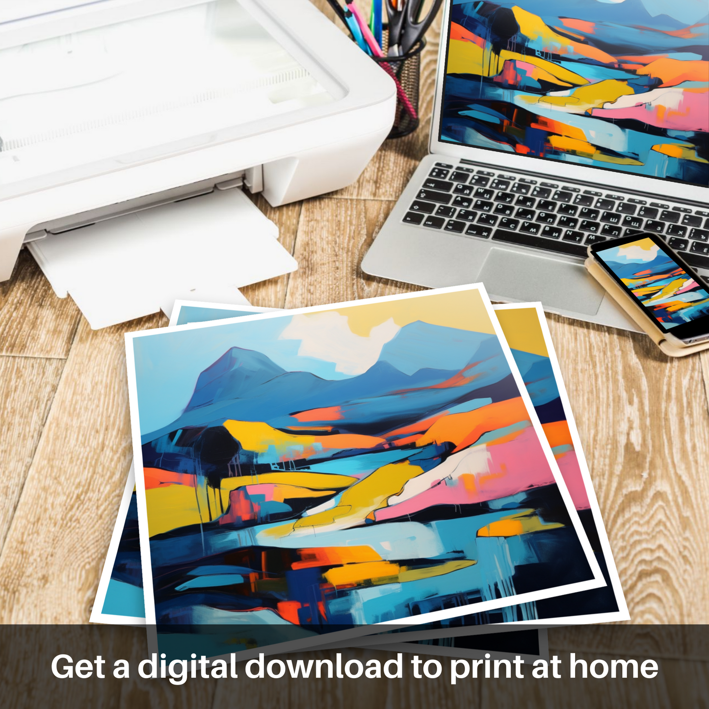 This piece is a testament to the essence of Scottish Munros – wild, untamed, and eternally captivating. The marriage of abstract artistry with the natural world results in a print that offers more than just a visual delight; it is an invitation to interpret the Scottish wilderness through a contemporary, almost surreal, perspective.