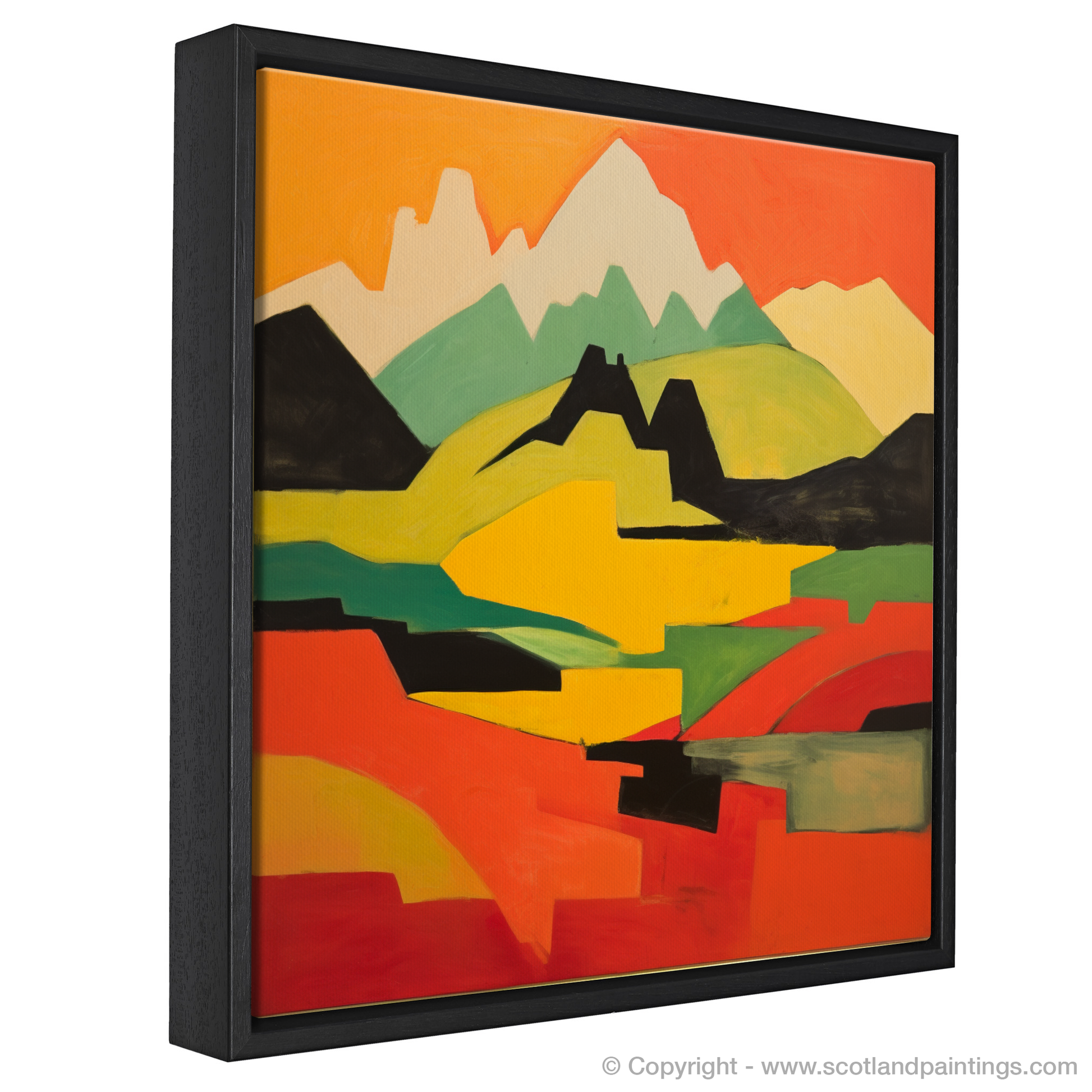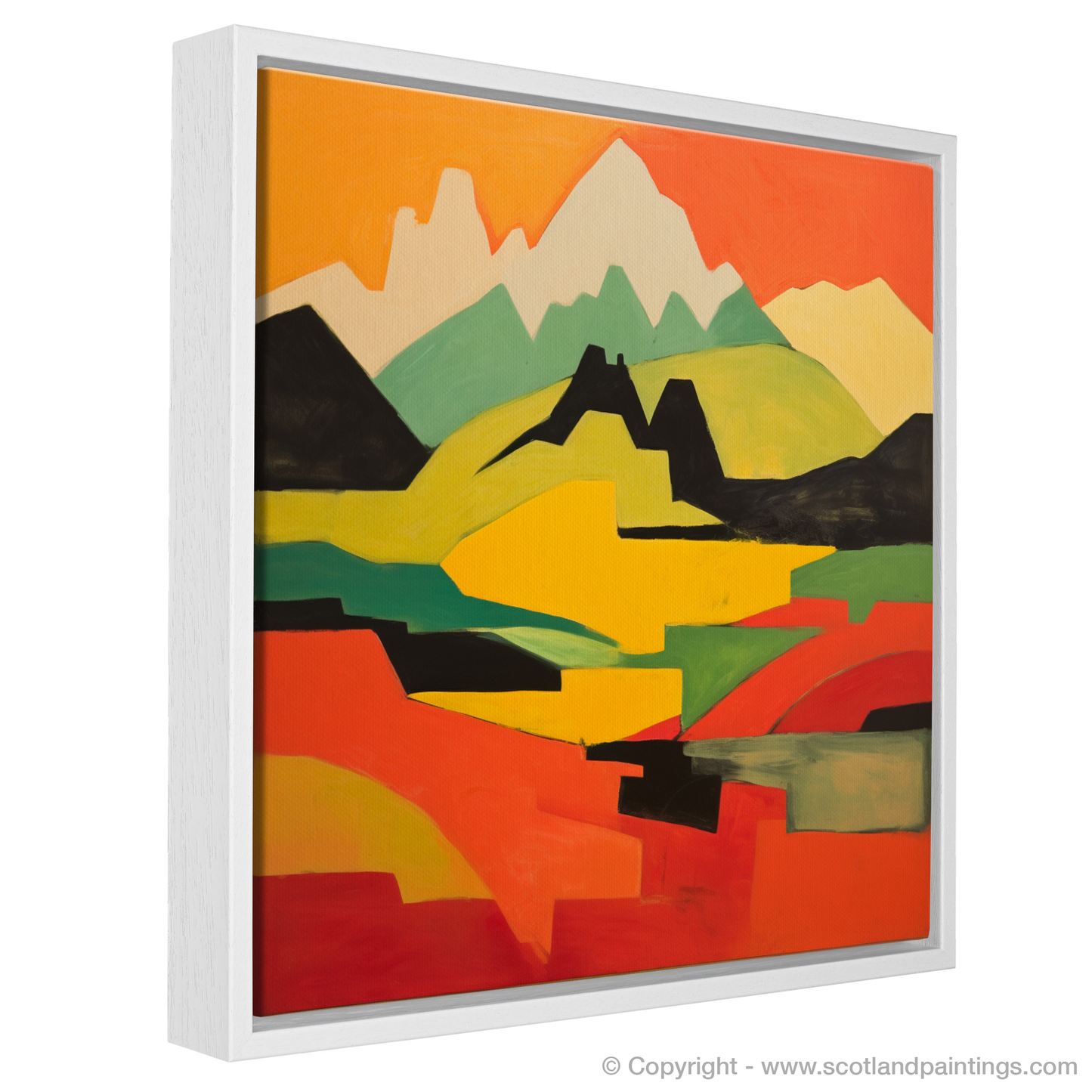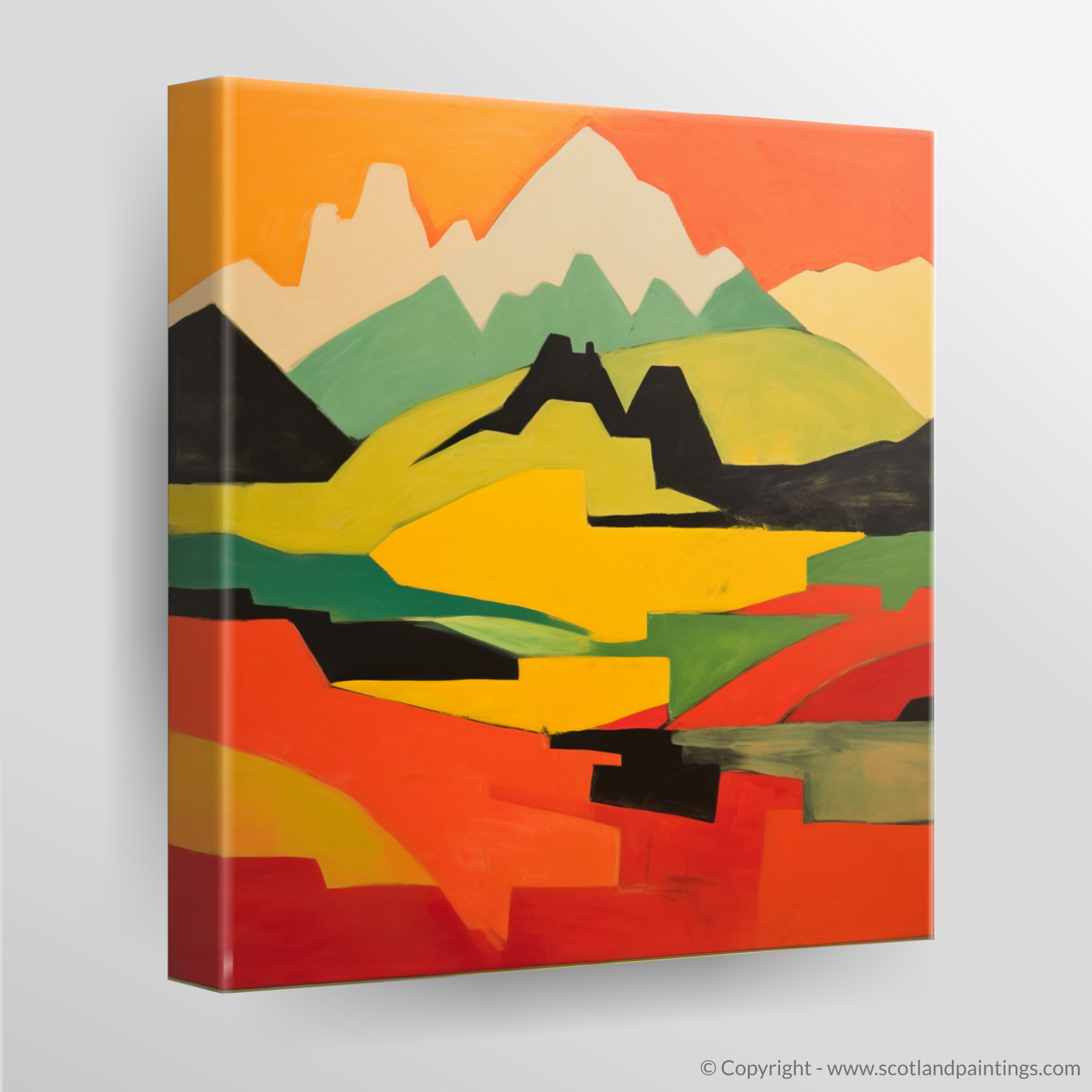 The palette is daring, with fiery reds and oranges clashing against cool greens and serene whites, while splashes of yellow impart energy that seems to symbolise the unpredictable Scottish weather. The stark contrasting tones work in harmony to suggest the play of light and shadow across the mountain's facets.