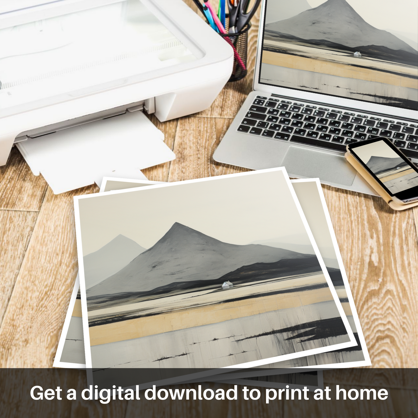 Capturing the subdued essence of the Scottish Highlands, this evocative piece offers a contemporary interpretation of Càrn an t-Sagairt Mòr, one of the revered Munros. In a nuanced exposition of abstract art, the print presents a visual symphony of muted colours and serene landscapes.