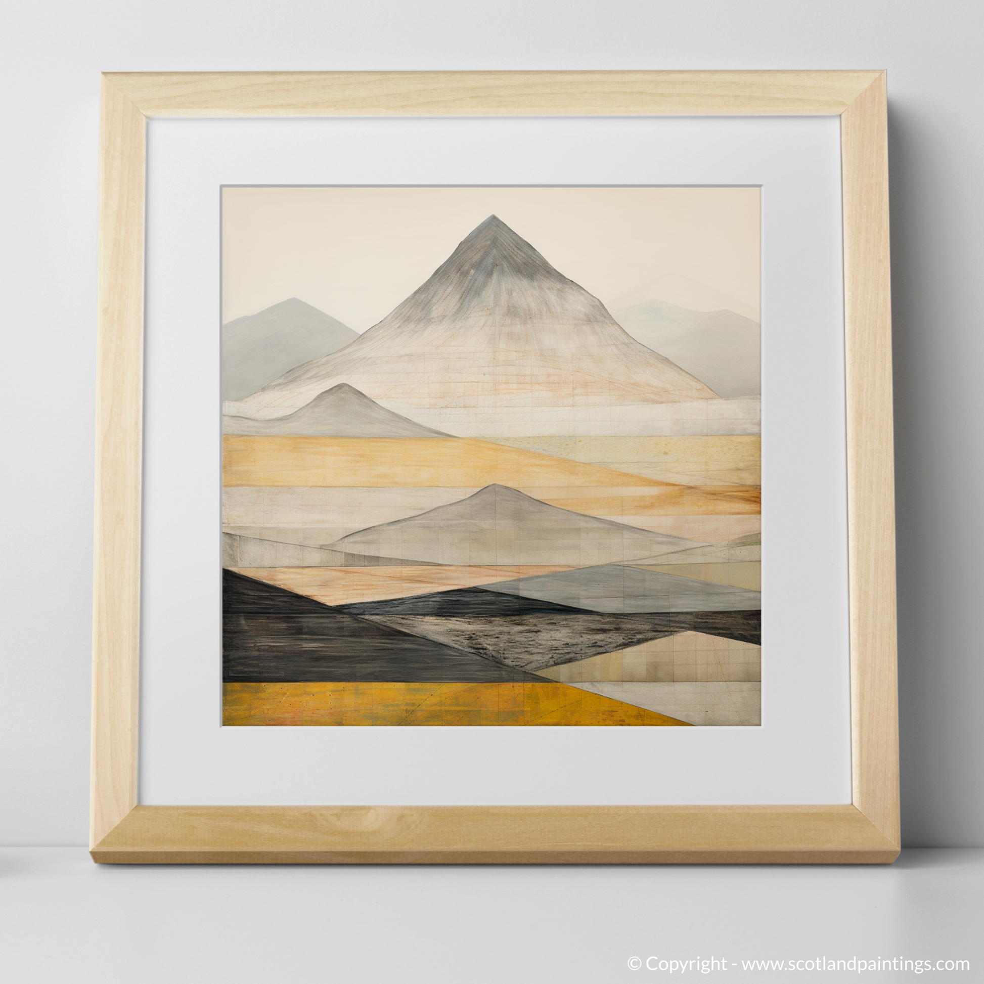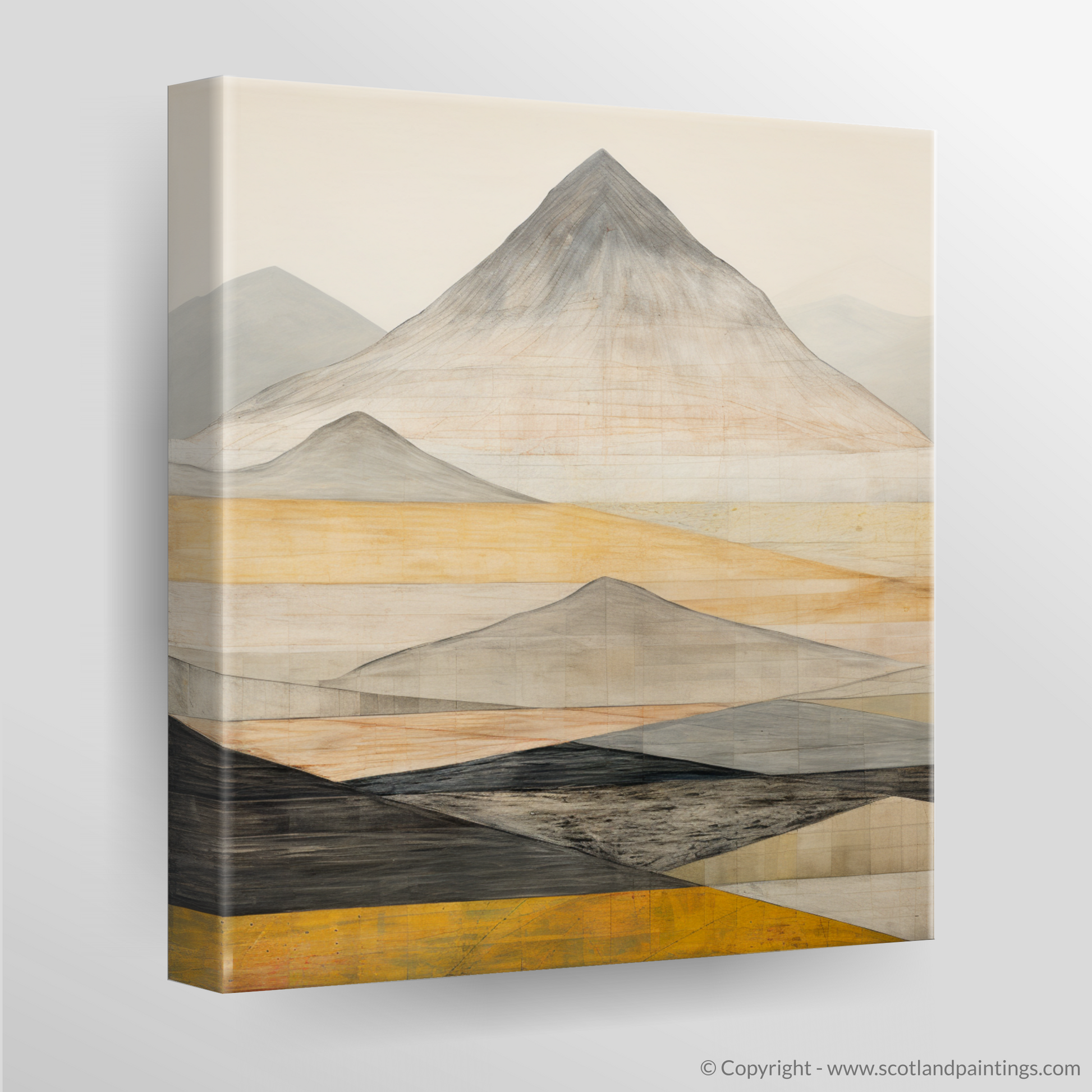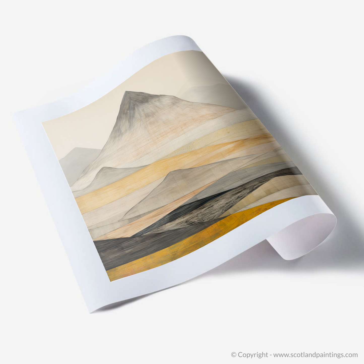 This evocative print is a celebration of the timeless beauty of Scotland's mountainous terrain, offering an imaginative take on the stark and imposing grandeur of the famed munro. The interplay of geometric forms and subtle textures provides a unique visual experience that is both tranquil and dynamic, much like the Munros themselves.