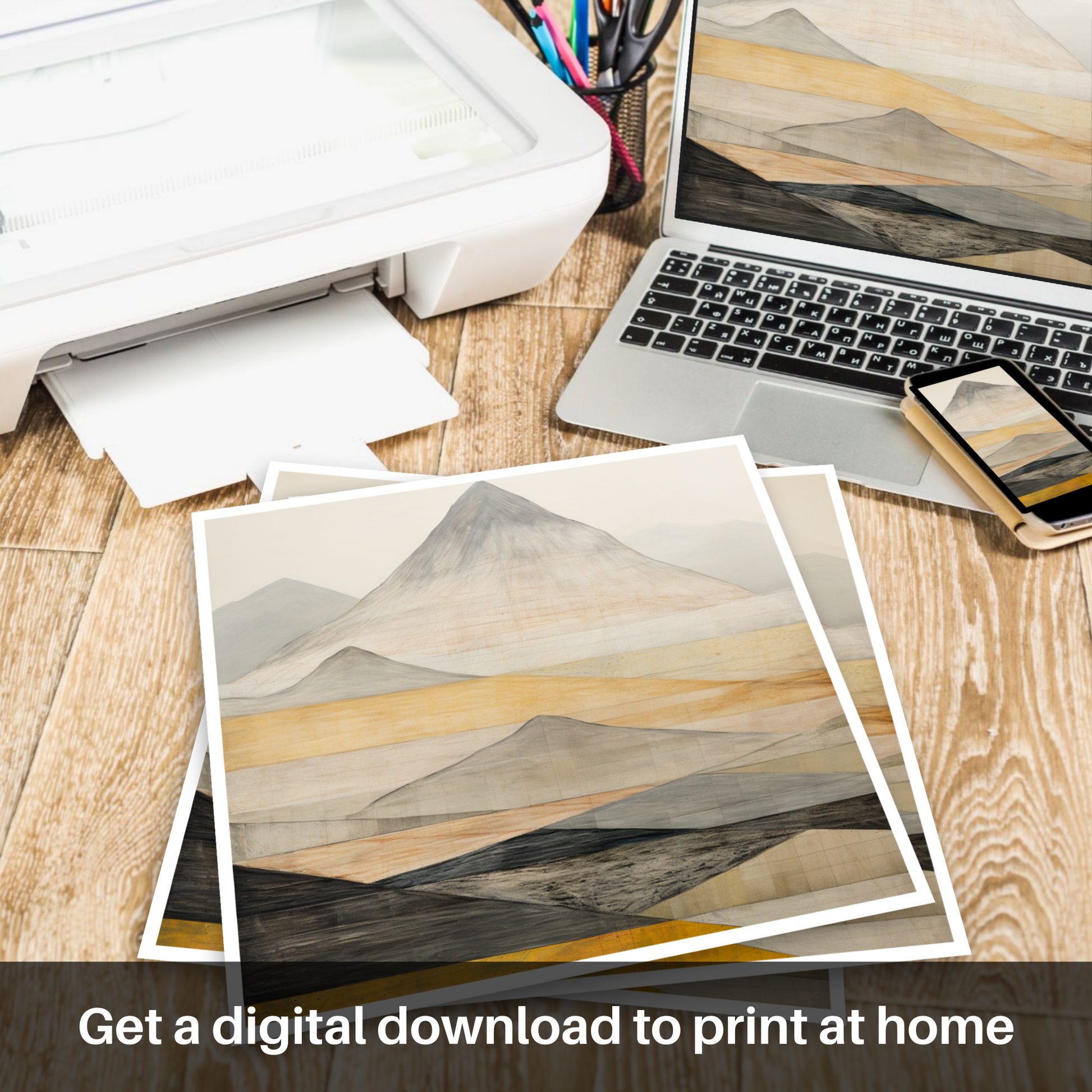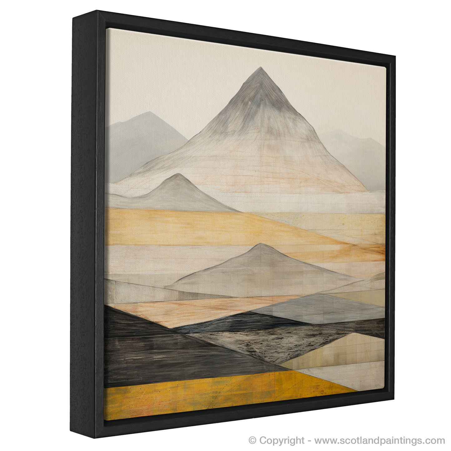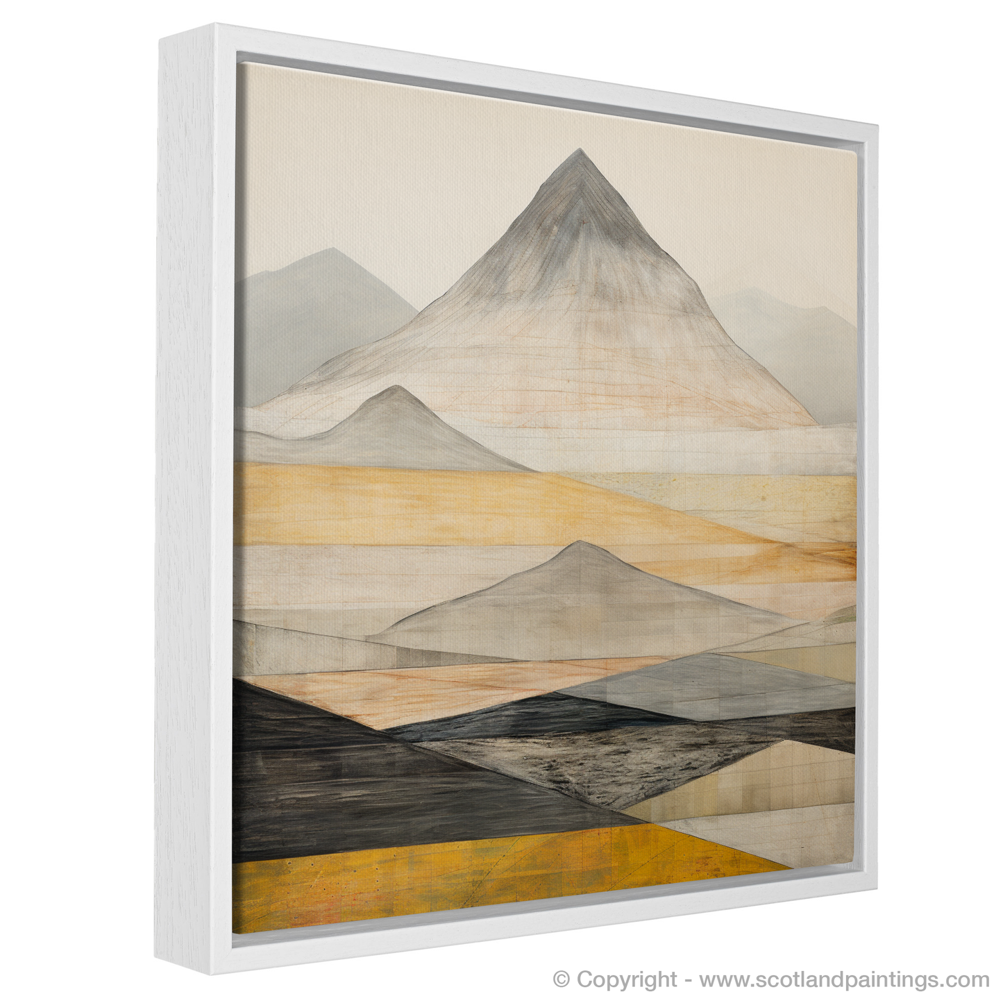 This evocative print is a celebration of the timeless beauty of Scotland's mountainous terrain, offering an imaginative take on the stark and imposing grandeur of the famed munro. The interplay of geometric forms and subtle textures provides a unique visual experience that is both tranquil and dynamic, much like the Munros themselves.