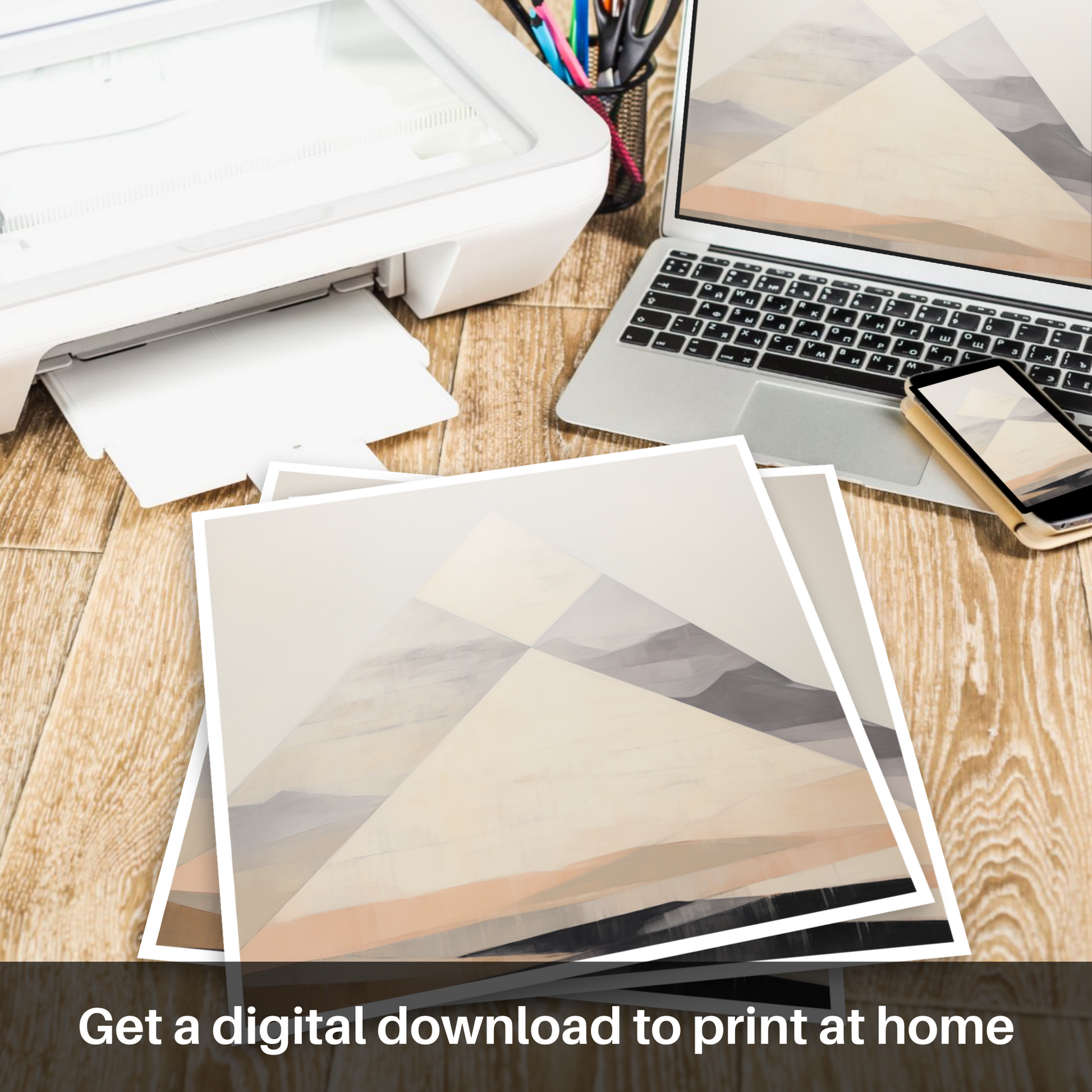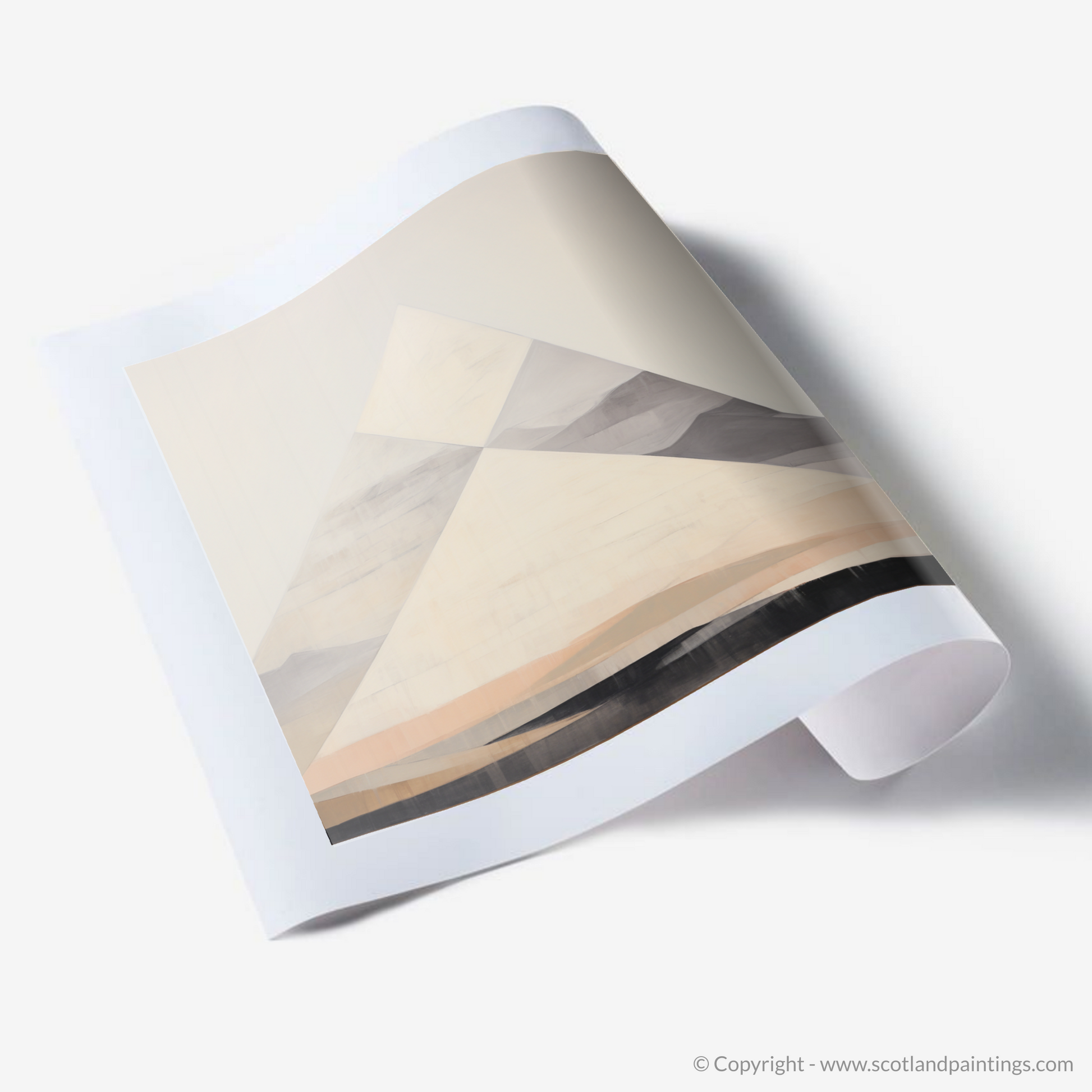 This captivating abstract print is inspired by the majestic Beinn a' Chròin, a renowned Scottish Munro, bringing a sense of the highlands' dramatic landscape into your space. The artwork showcases a stylised triangular peak at the centre, its form commanding and geometric in essence. The palette is subtle yet rich, with hues of cream, taupe, and charcoal creating a tapestry of layered tones that suggest depth and texture.