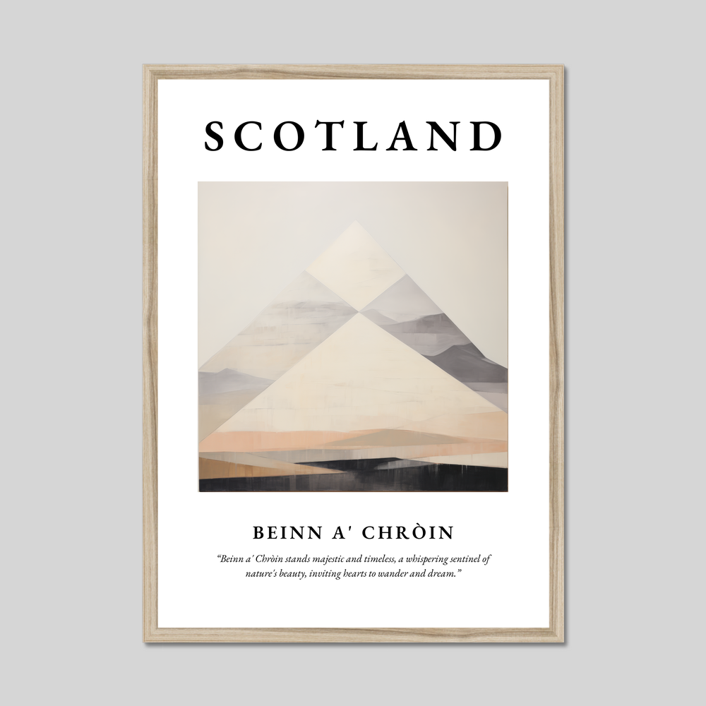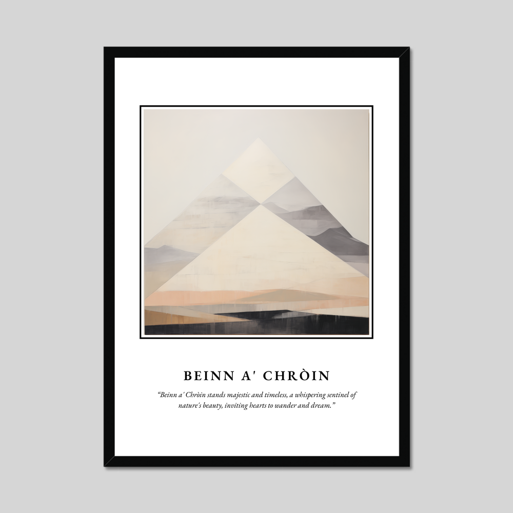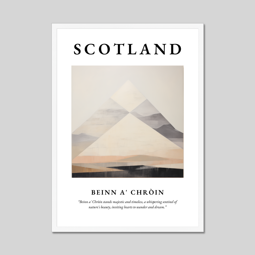 The abstract artwork mirrors Beinn a' Chròin's elusive charm, each brushstroke whispering tales of ancient landscapes and the rugged spirit of the Highlands. Whether you've wandered its trails, dream of visiting, or simply share a love for abstract art, this framed poster is a gateway to the tranquil beauty and infinite inspiration that Scotland's landscapes have to offer.