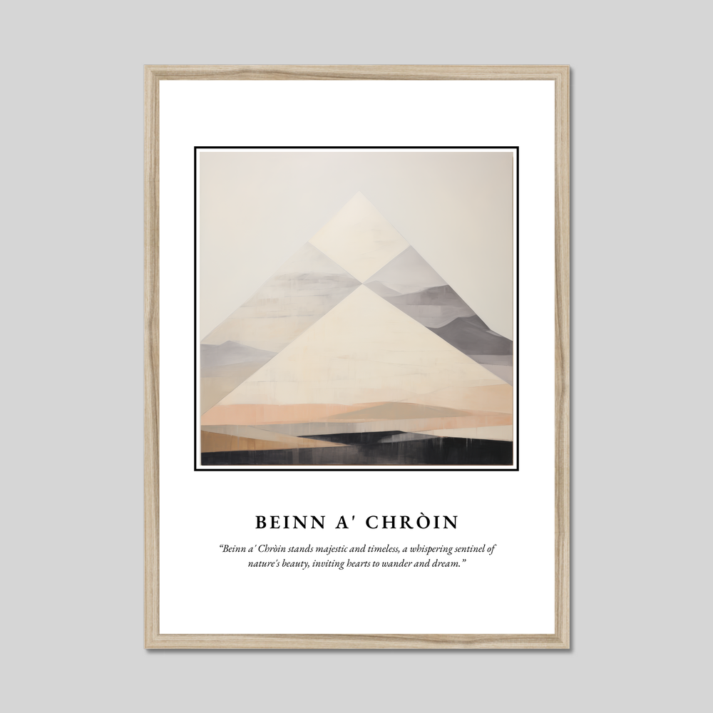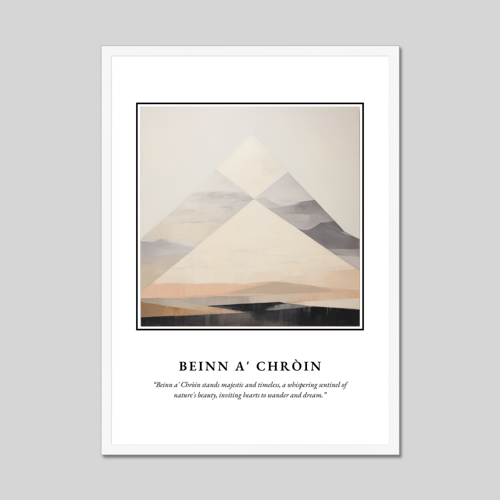 Underneath the painting, a poignant quote reads: “Beinn a' Chròin stands majestic and timeless, a whispering sentinel of nature's beauty, inviting hearts to wander and dream.” This sentiment beautifully reflects the call of the wild that Beinn a' Chròin, with its rolling landscapes and serene vistas, extends to all who encounter it.