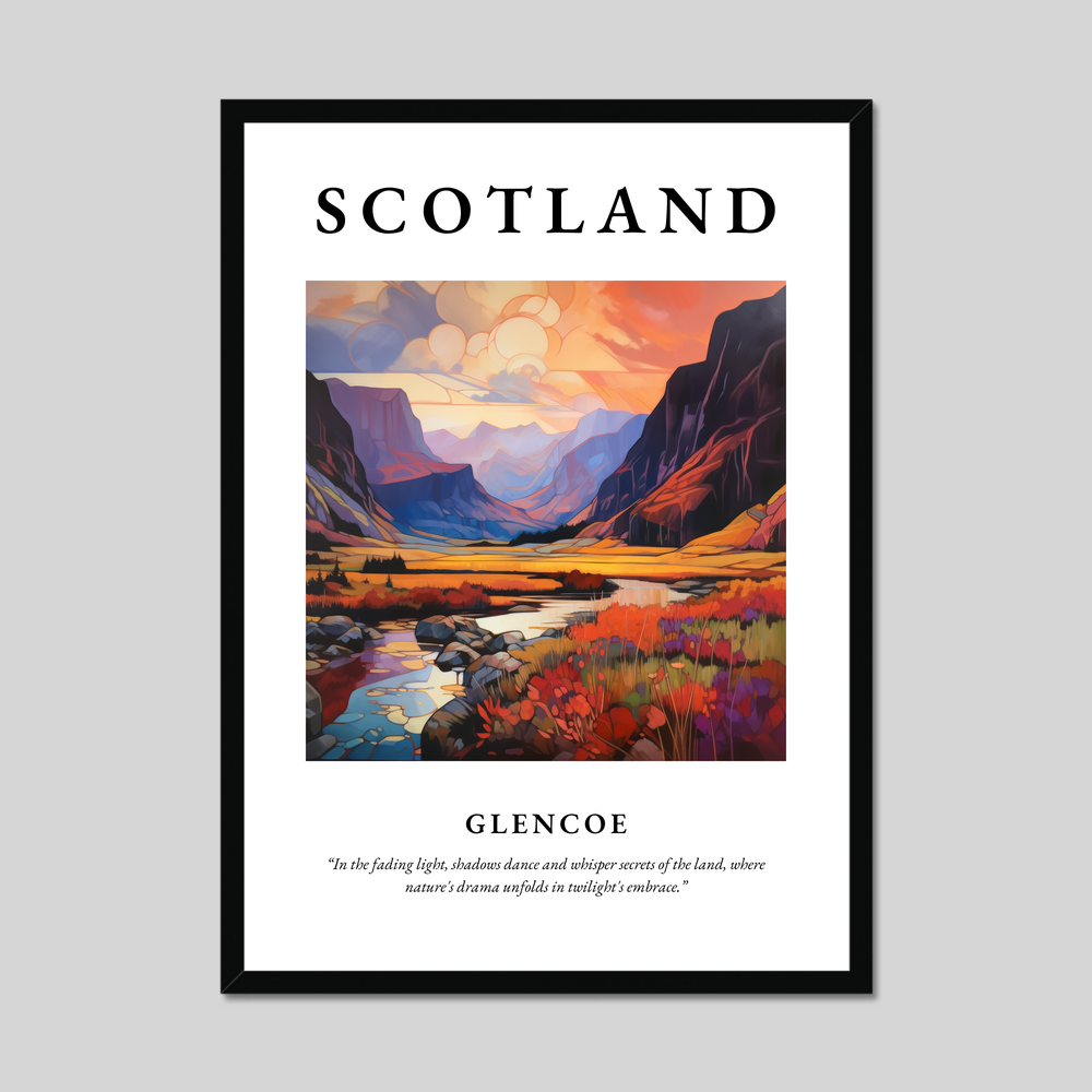 Whether as a tribute to your travels or a statement of admiration for Scotland's natural splendour, this framed poster invites you to embrace the enigmatic allure of Glencoe.