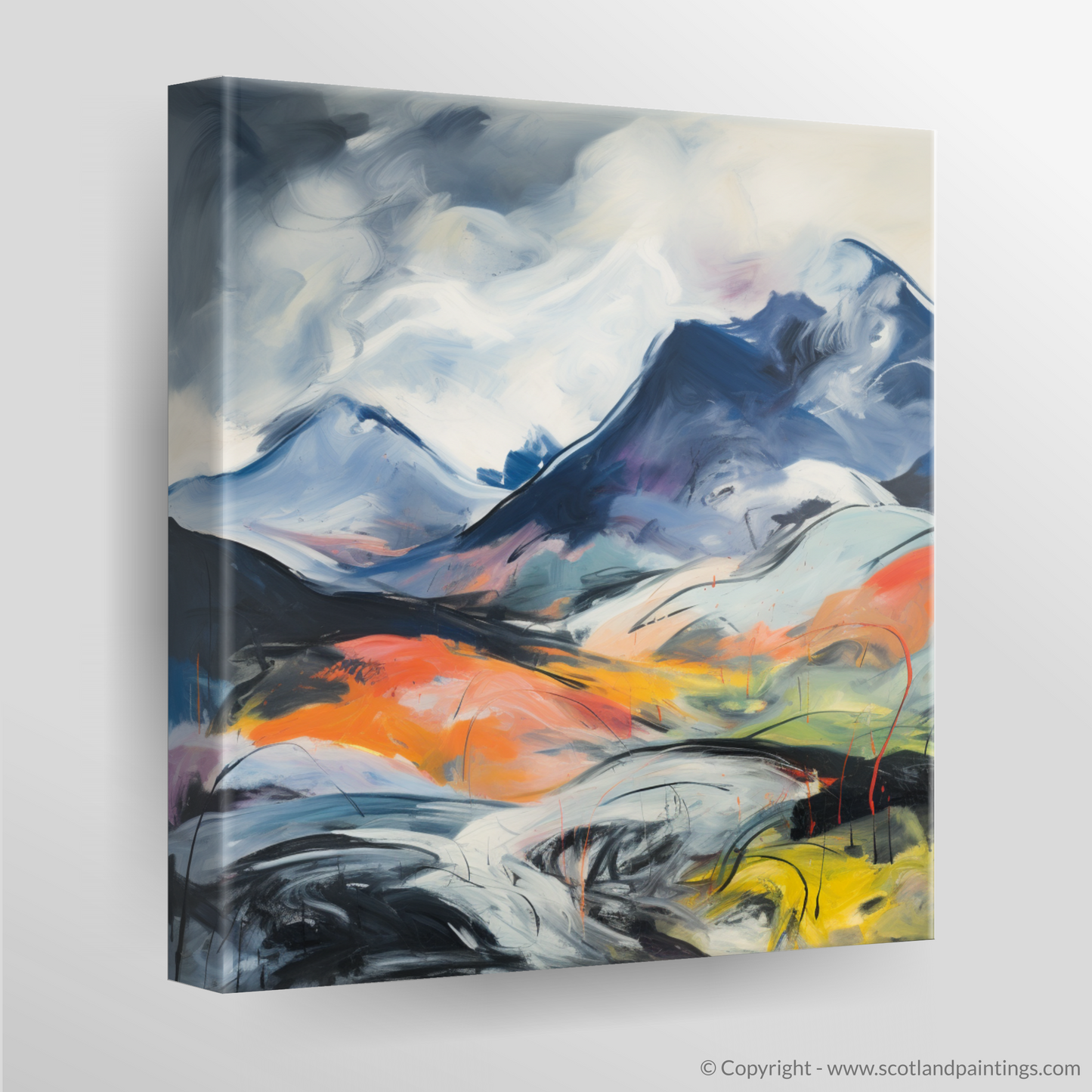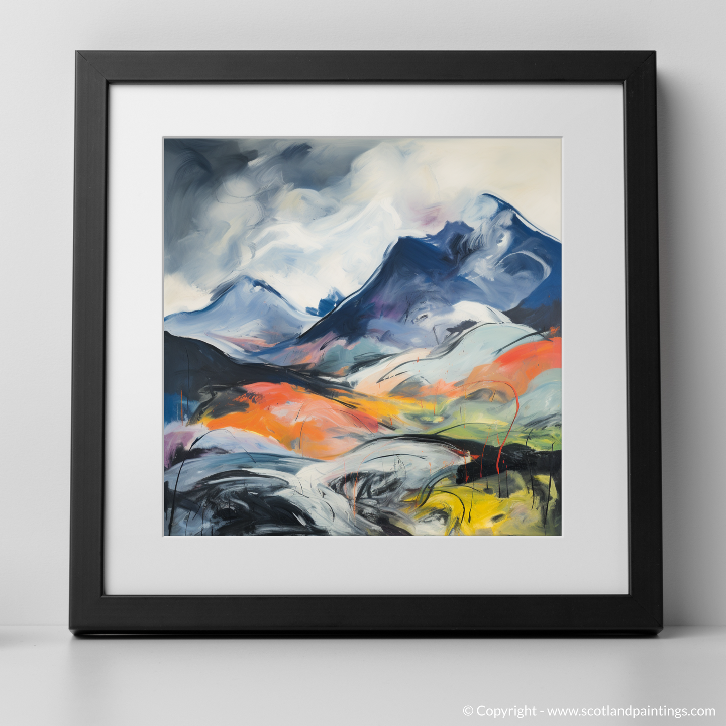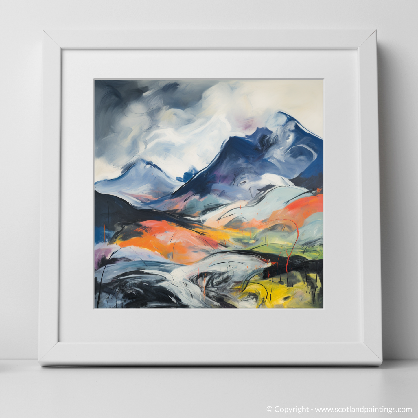 This abstract expressionist portrayal is part of the revered 'Scottish Munros' collection, capturing the essence of these majestic peaks with an emotional depth that transcends visual representation. This print promises not only a piece of the grand Scottish landscape for your home or office but also an immersive experience that stirs the soul with its passionate depiction of nature's grandeur.