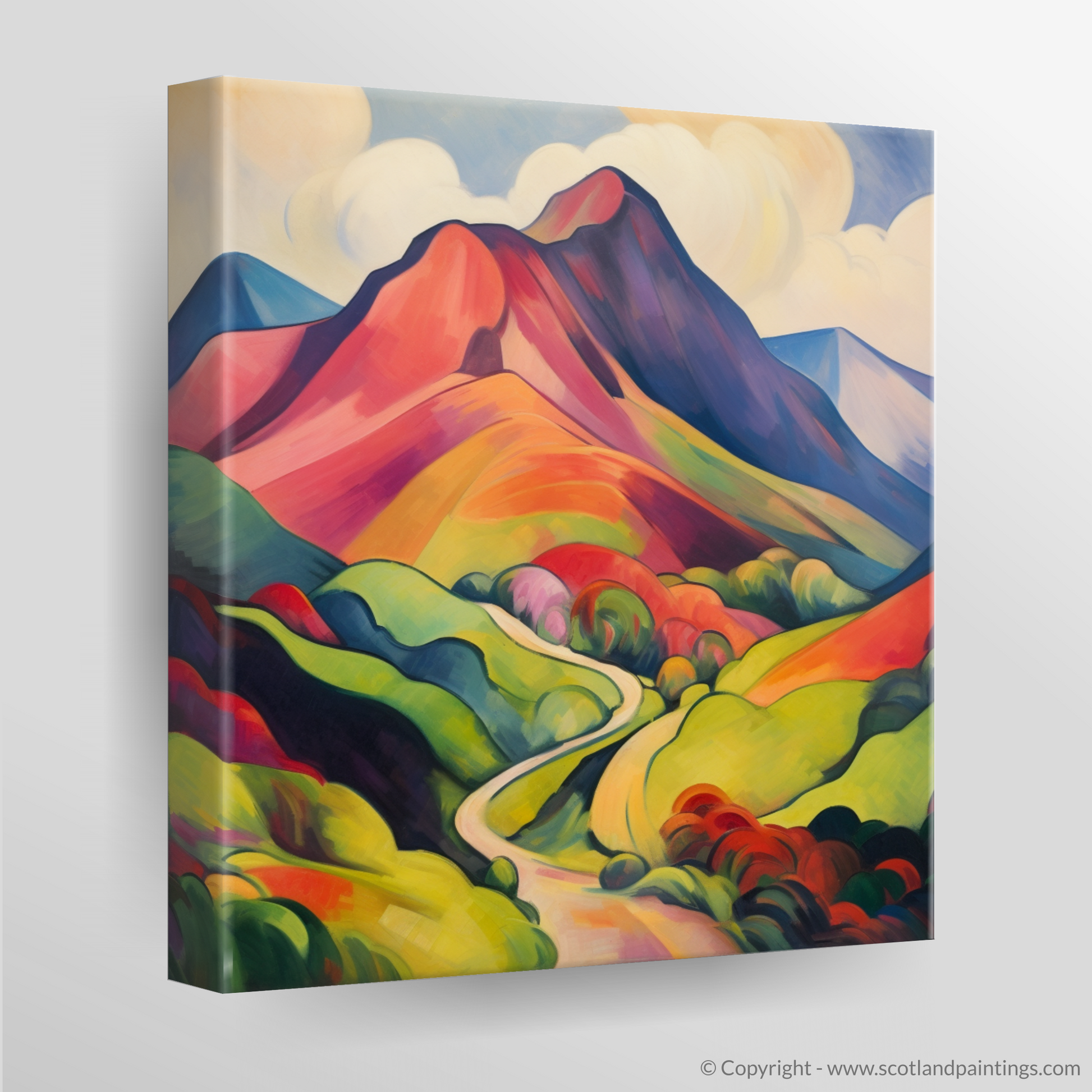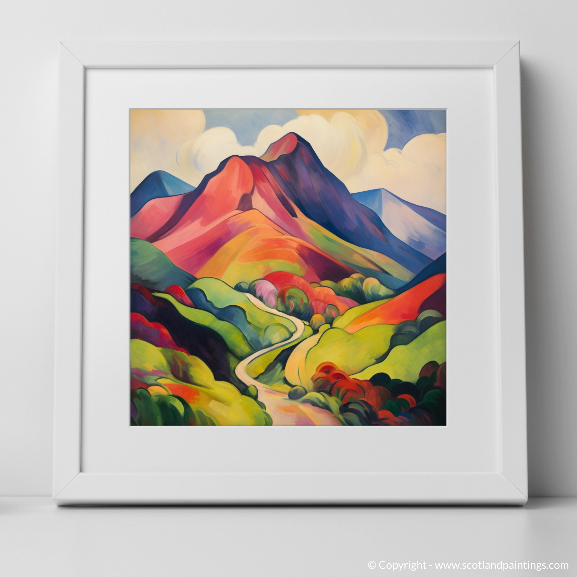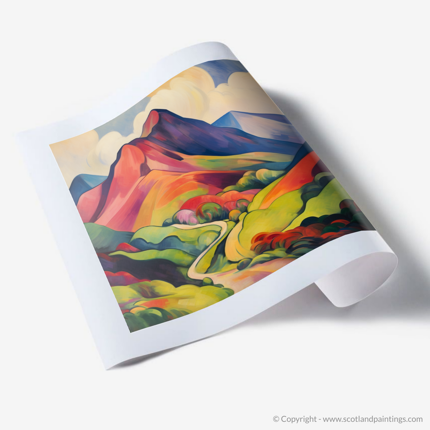 Immerse yourself in the vibrant and exhilarating spectacle of the Scottish Highlands with our exquisite Fauvist-inspired print. The canvas sings with a symphony of bold, expressive colours that redefine Beinn Ìme's natural grandeur. Witness a re-imagined landscape where cerulean blues, fierce reds, and bursts of sun-kissed oranges intertwine to create an alluring and almost dreamlike vista.