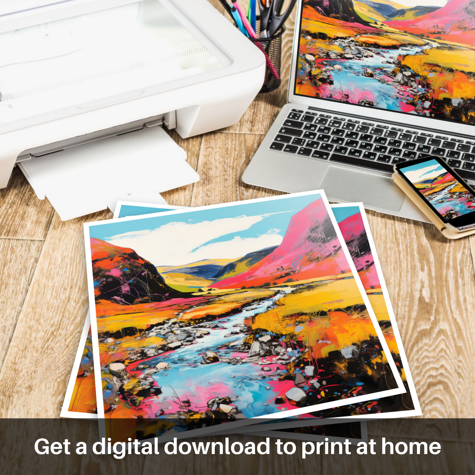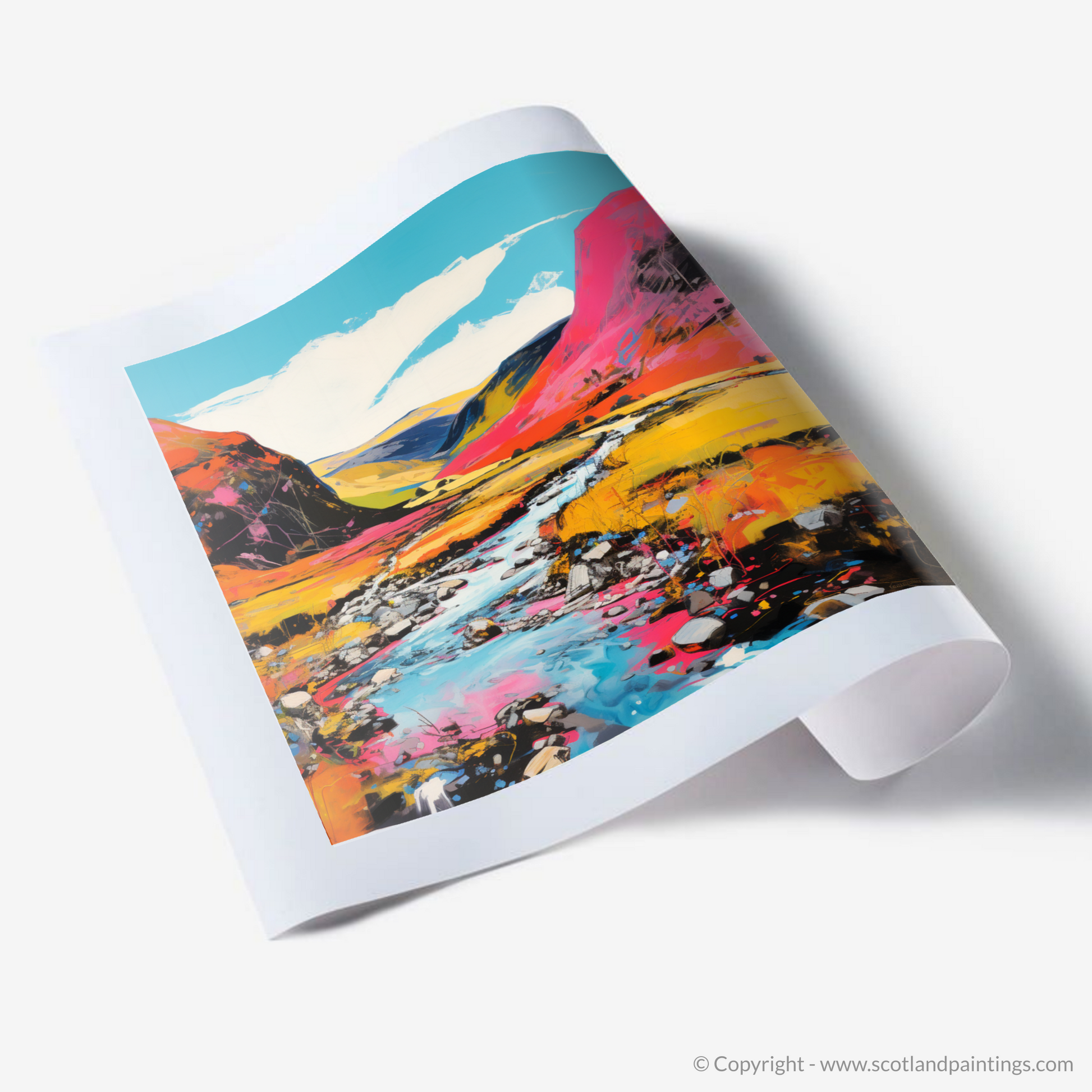 This print is a centerpiece of our 'Scottish Munros' collection, offering a visually striking interpretation that pays homage to the natural grandeur of the Highlands while making a statement with its avant-garde palette and stylisation. For enthusiasts of Scotland's wild landscapes or lovers of art that dares to reinvent the familiar, this piece promises to be a conversation starter and a jubilant celebration of Scotland's raw beauty.