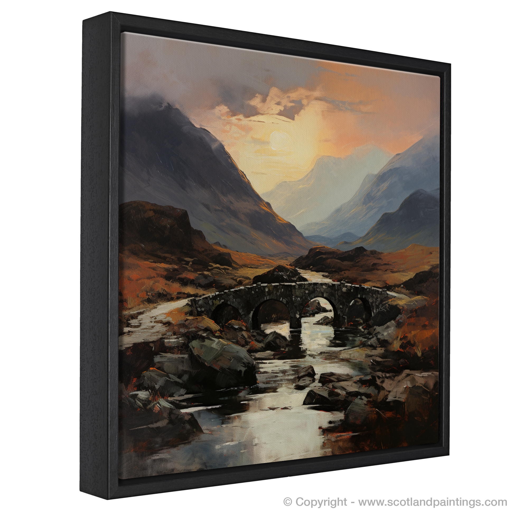 Drawn into the heart of Glencoe, the viewer is enticed to wander across this timeless bridge, amidst the whispering winds and the serene flow of water, into the embrace of the wild. The warmth of the scene contrasts with the cool shadows that begin to creep, suggesting the mysteries that await within the encroaching twilight.