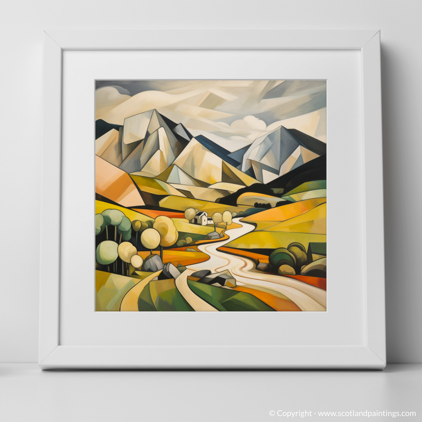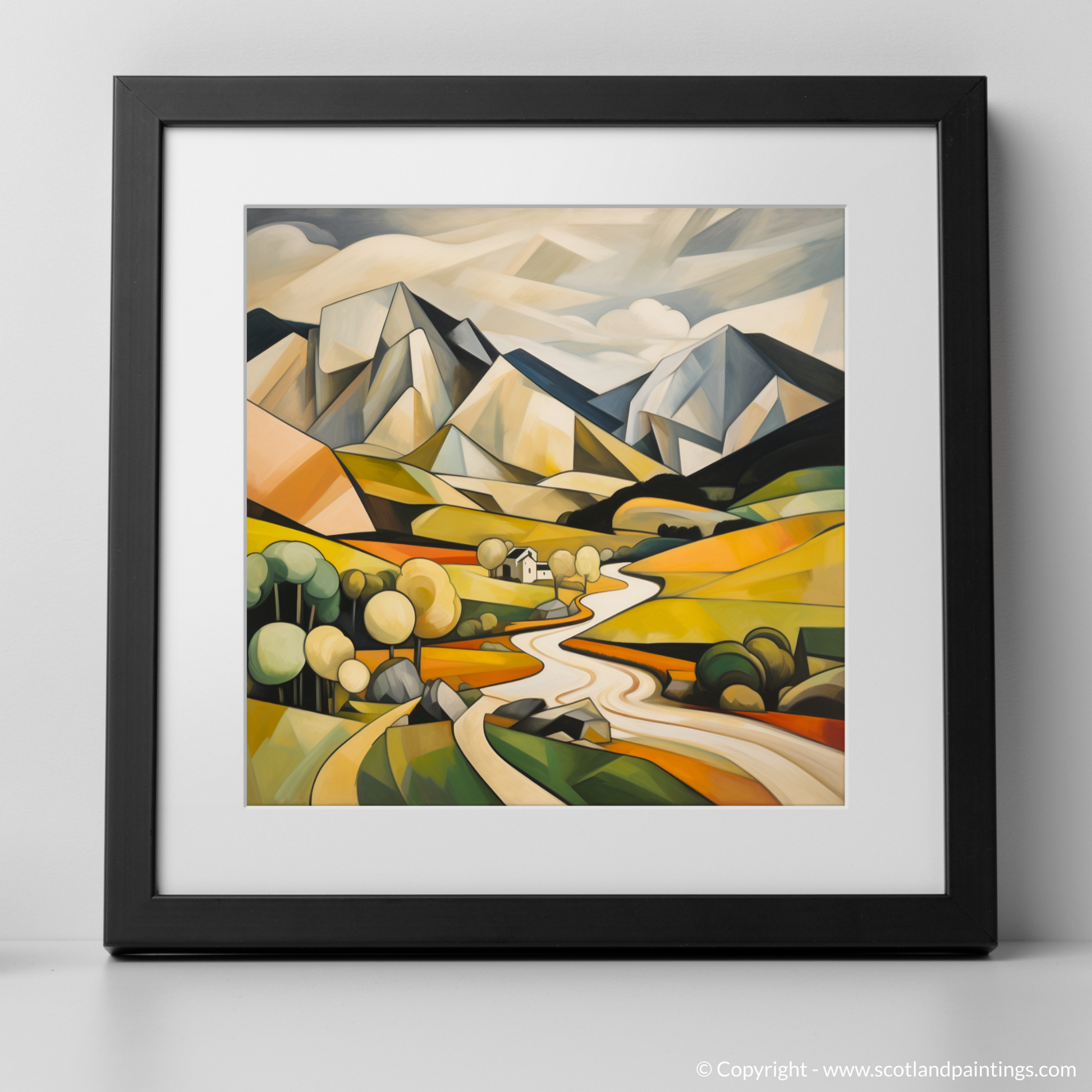 Sharp lines and bold forms challenge the undisciplined chaos of nature, while the overall symmetry of composition lends a sense of harmonious balance. This print, a member of the 'Scottish Munros' collection, encapsulates not only the grandeur of the Scottish landscape but also the avant-garde spirit of Cubism, inviting onlookers to explore the Highlands from a refreshingly abstract perspective.