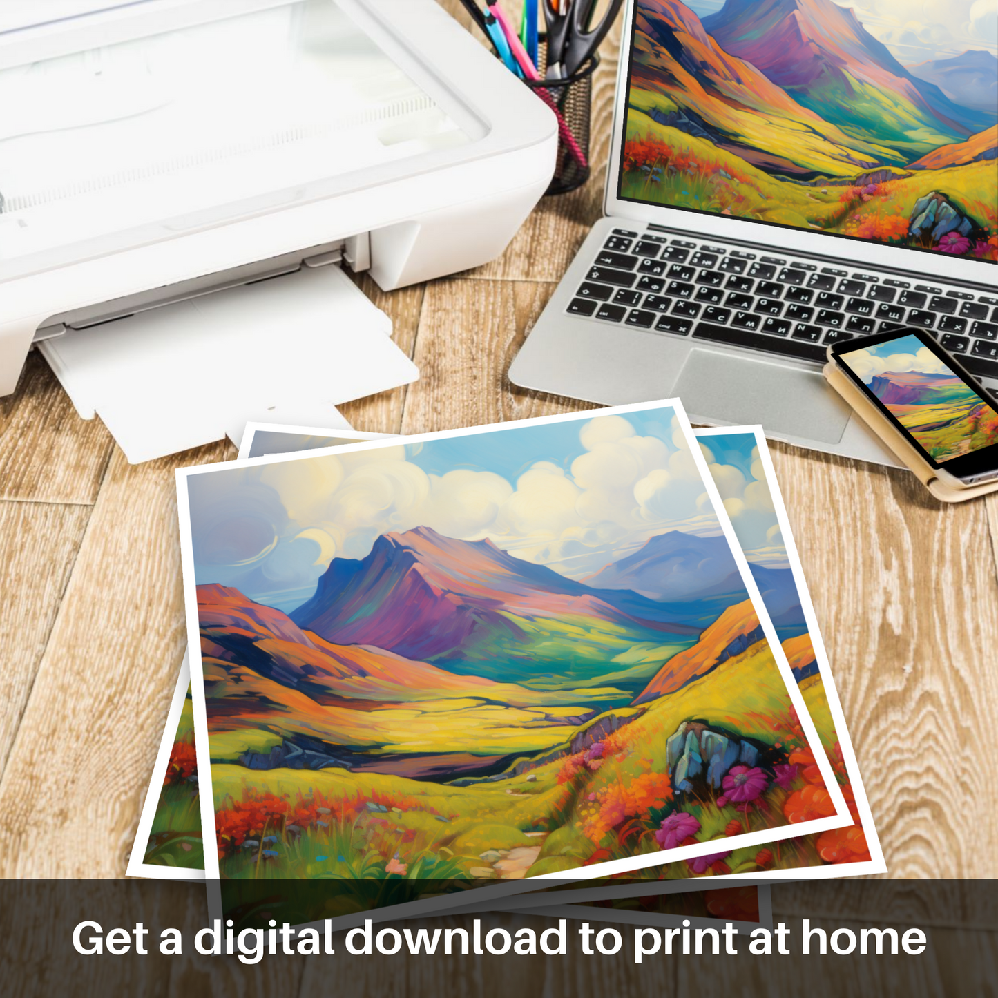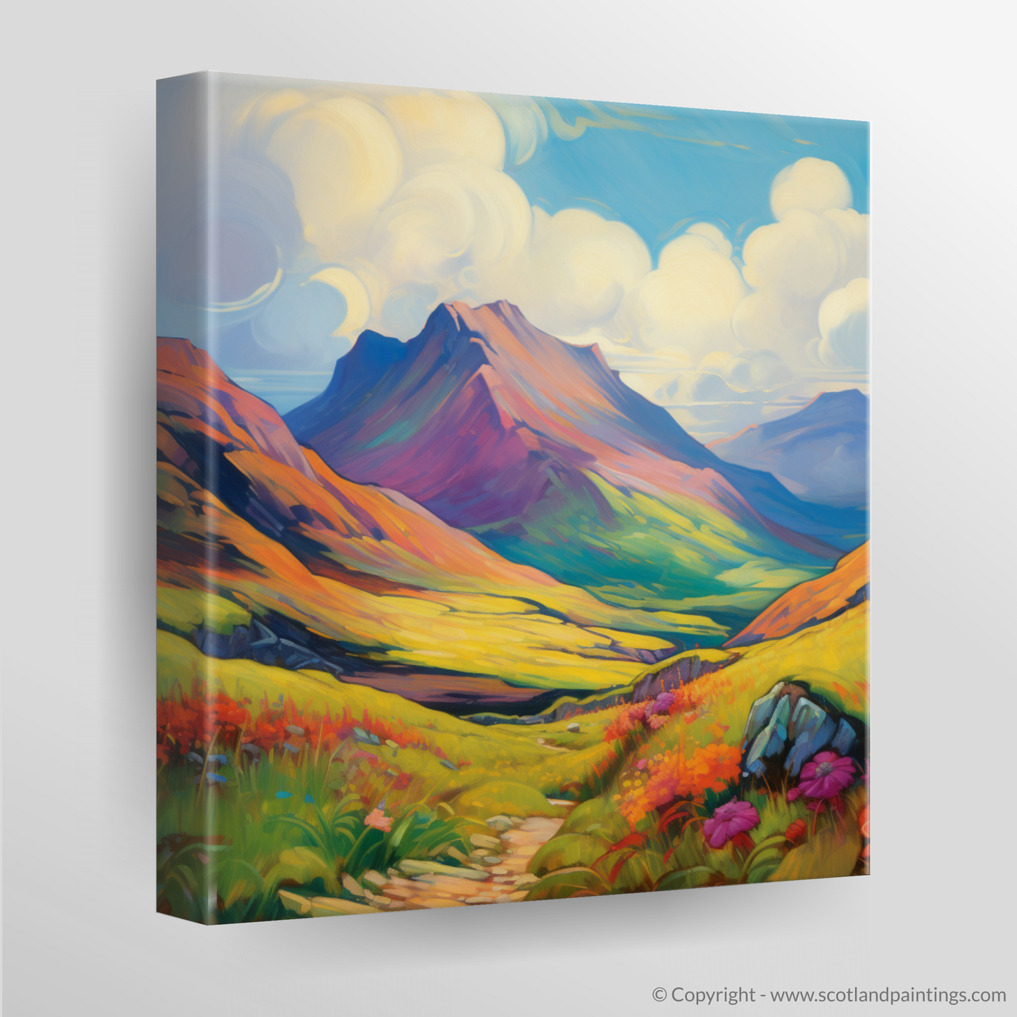 Immerse yourself in the vibrant hues and expressive brushwork that bring the Scottish Munros to life in this bewitching portrayal inspired by Meall nan Tarmachan. The dynamic composition, part of our 'Scottish Munros' collection, is infused with the electrifying spirit of Fauvism, a style celebrated for its radical use of color and bold outlines.