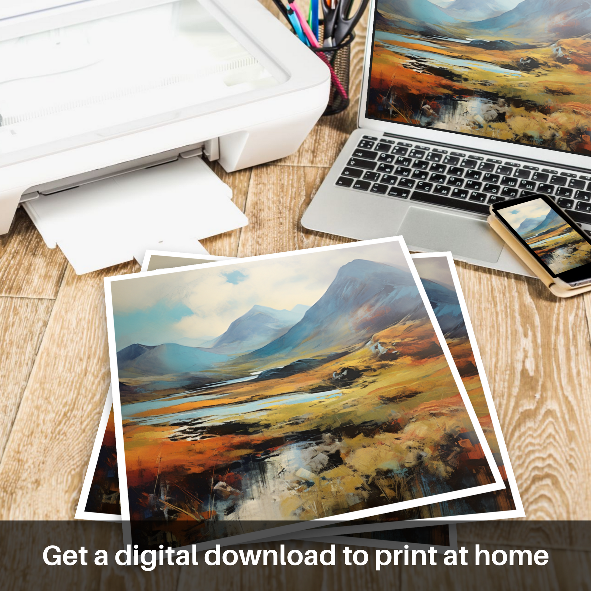 This print is a testament to the beauty of abstraction and impressionism meshed together, bringing forth an artwork that speaks to both the mind's eye and the soul. Perfect for any admirer of Scotland's natural grandeur or a lover of art that blurs the lines between realism and fantasy, this piece is sure to become the centrepiece of any space it inhabits.