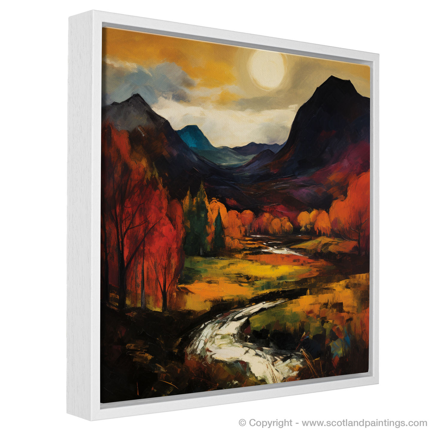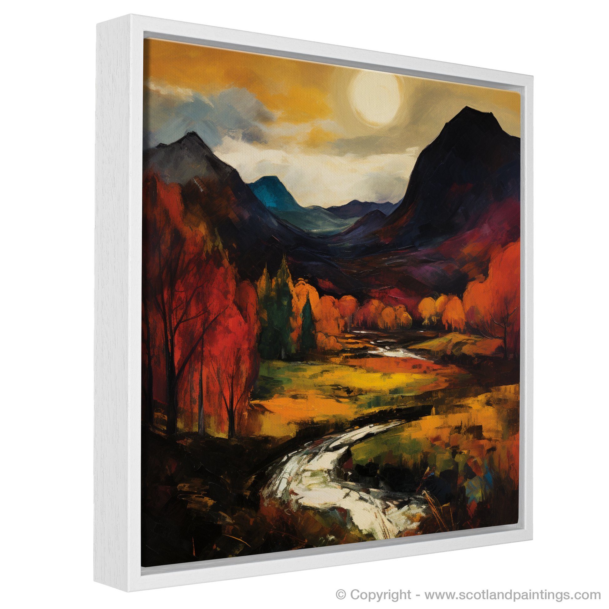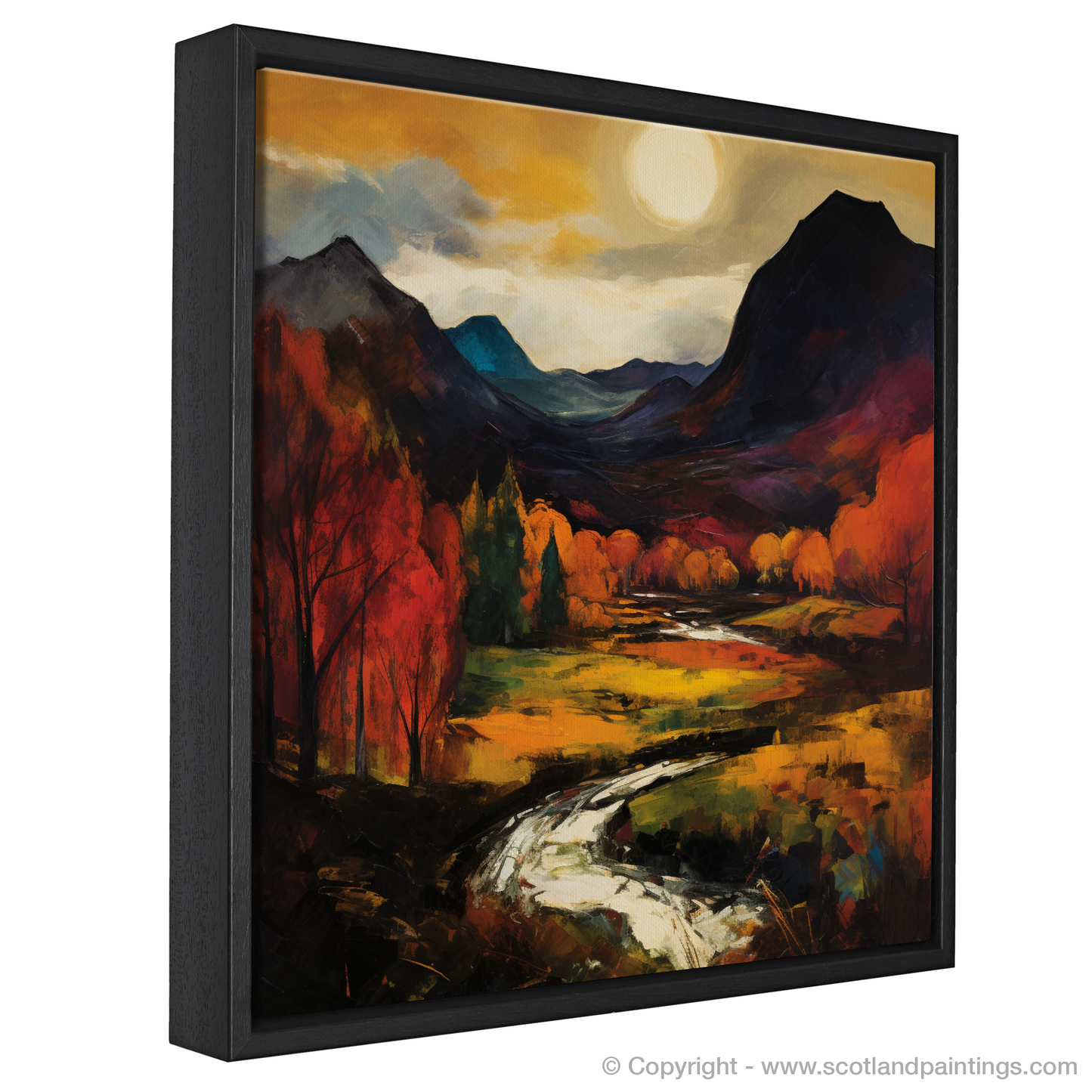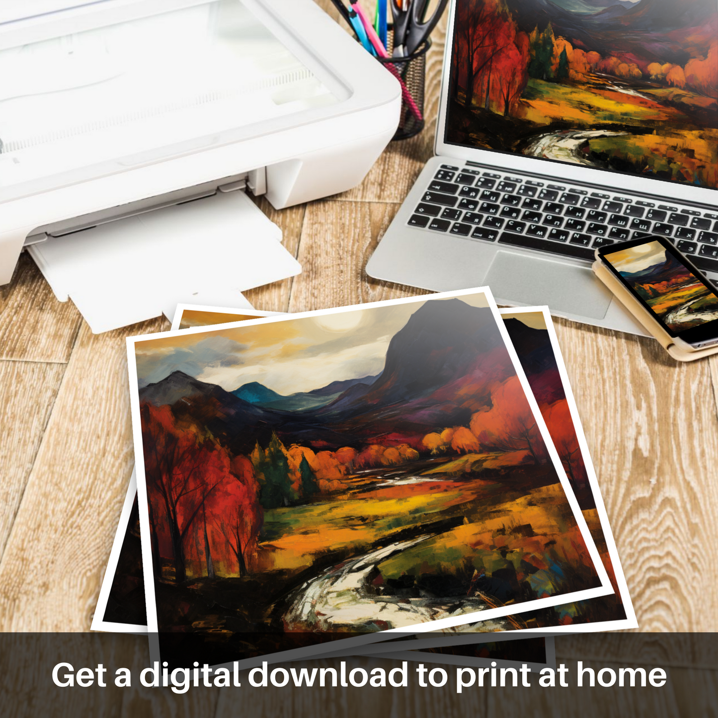 As autumn whispers through the Glencoe valley, this print captures the essence of the season with a fervour of colours that are reminiscent of the Fauvist movement's liberation from realism. The bold, expressive brushstrokes invite the viewer into a landscape ablaze with ochres, crimsons, and amber tones, which contrast exquisitely with the dusky purples and deep blues of the majestic highlands.