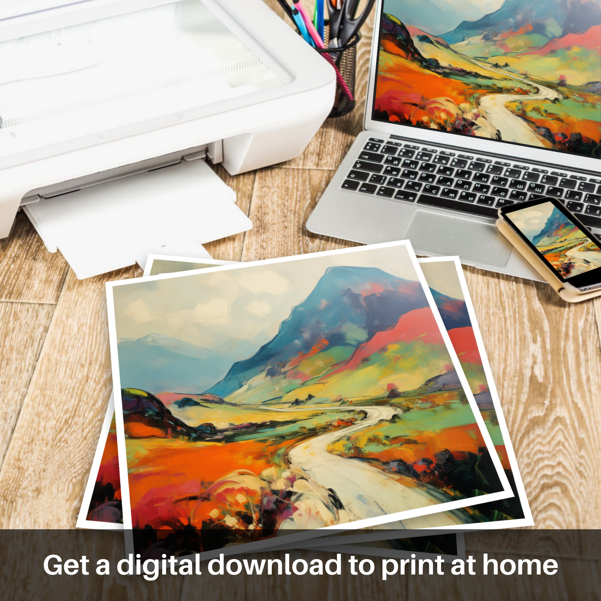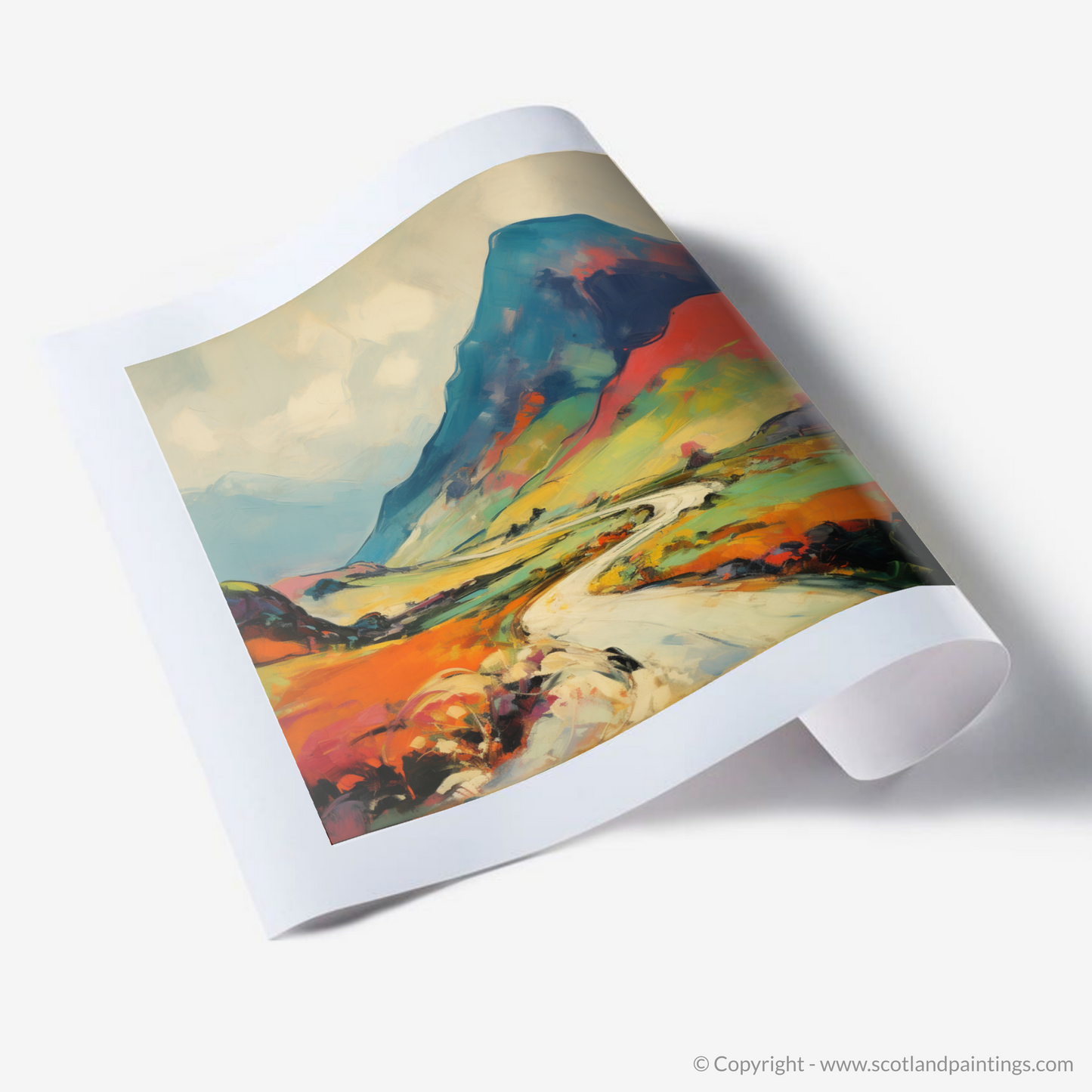 Immerse yourself in the vibrant hues and untamed spirit of this print, forging a connection to the wild Scottish Highlands through a prism of exuberant colour and bold brushwork. The rolling landscape of Meall a' Choire Lèith is skilfully recast in this vivid interpretation that exemplifies the emotive power of Fauvist art.