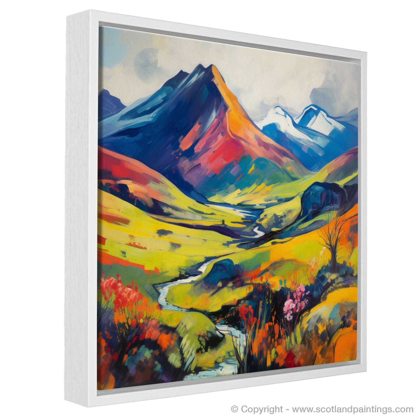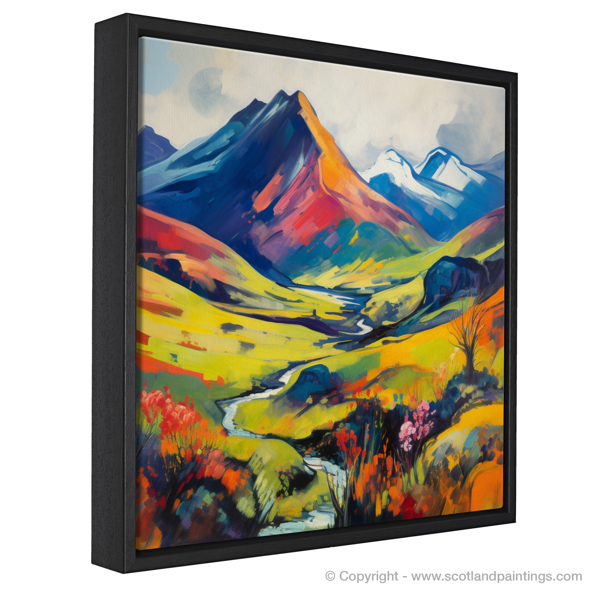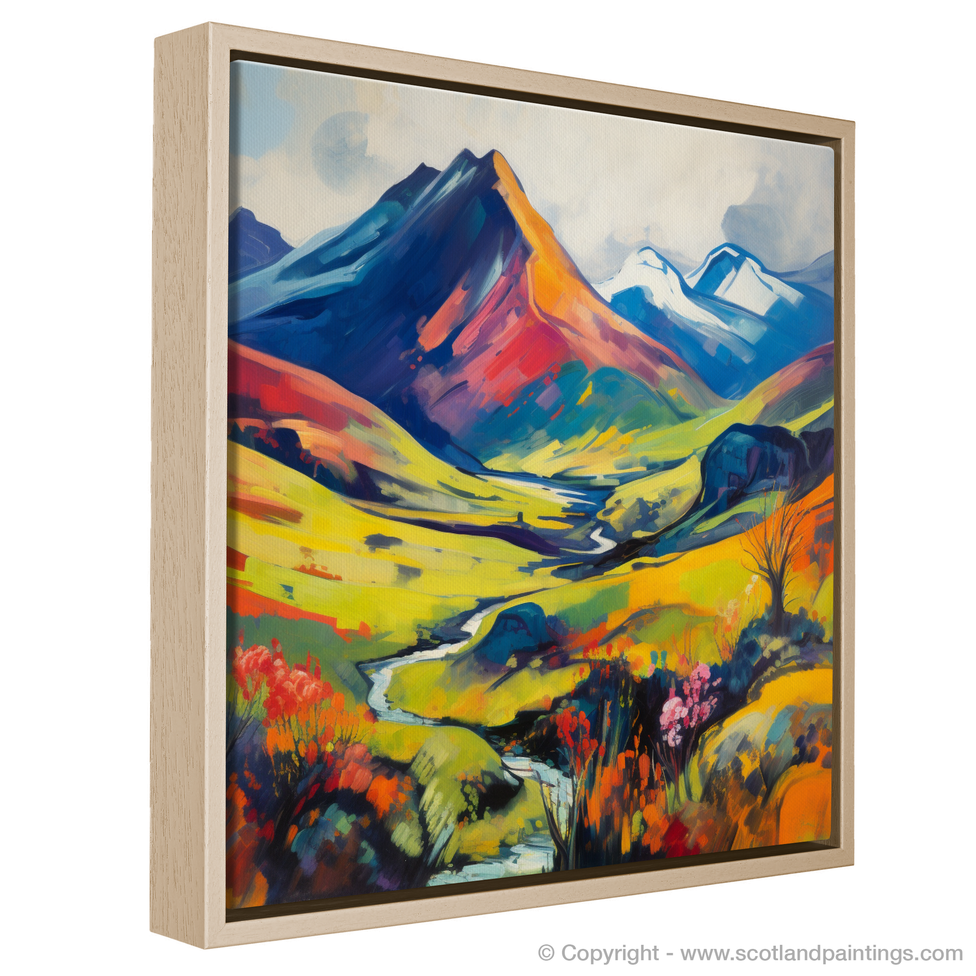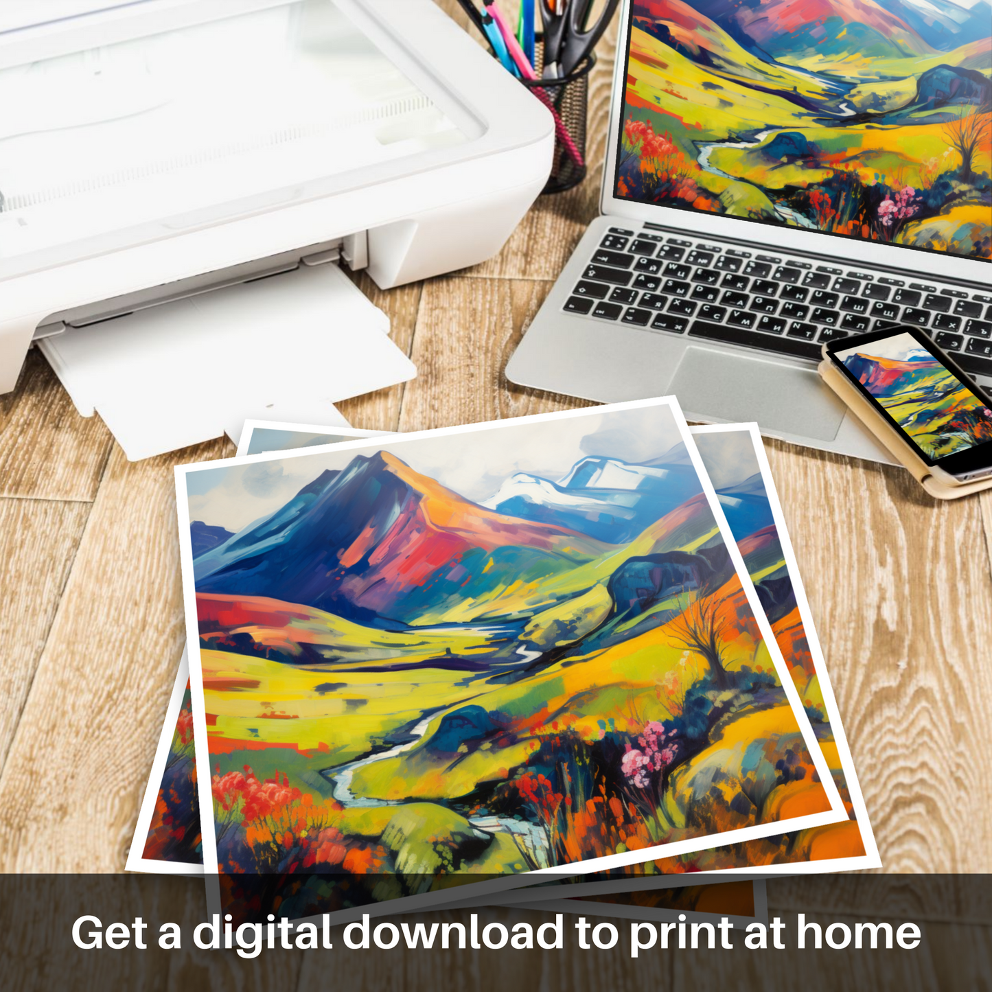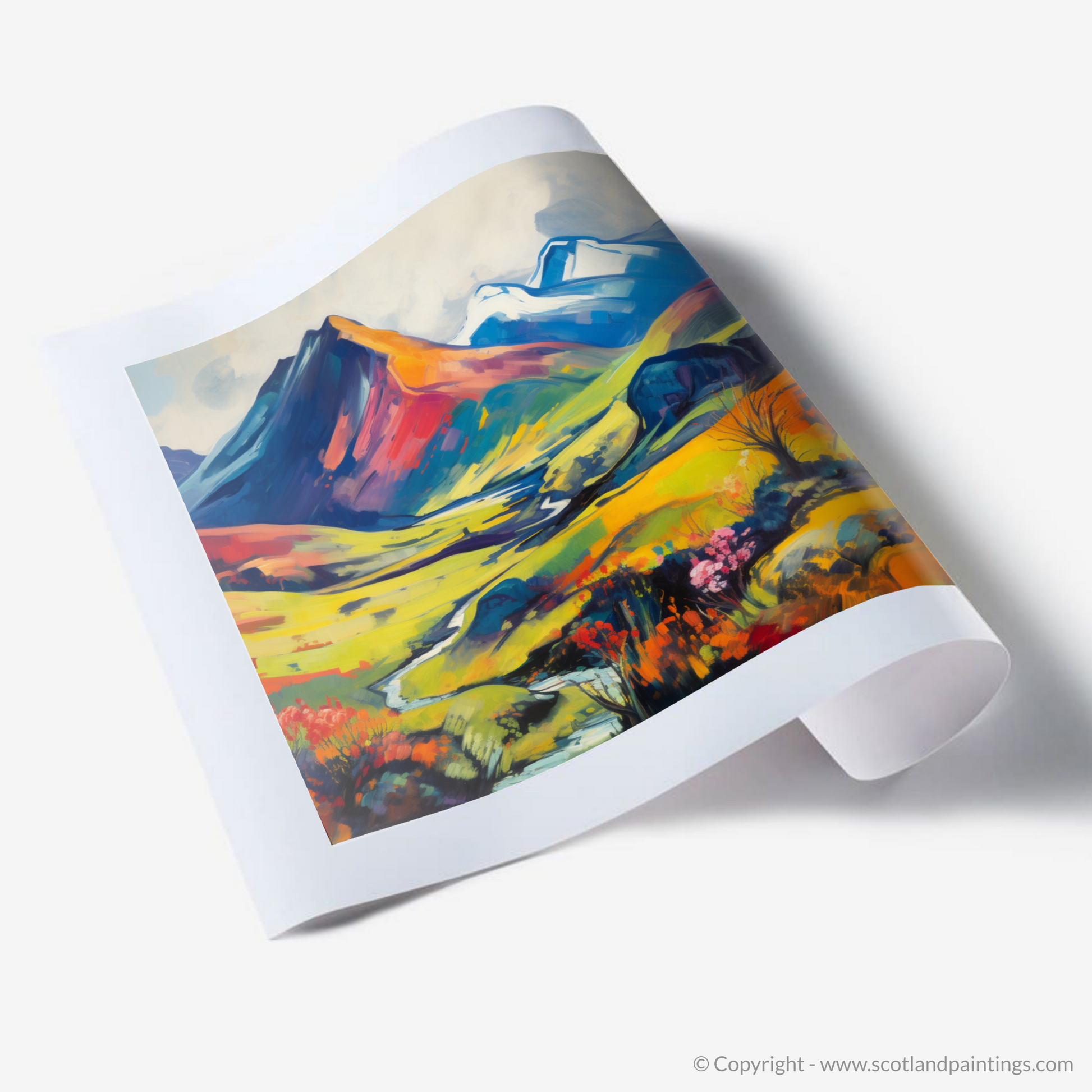 Immerse yourself in the vibrant and uncharted wilds of Scotland with this captivating print, evoking the essence of Meall a' Choire Lèith. The lively Fauvist-inspired hues breathe life into the Scottish Munro, capturing the imagination with an electric palette of reds, blues, and yellows.