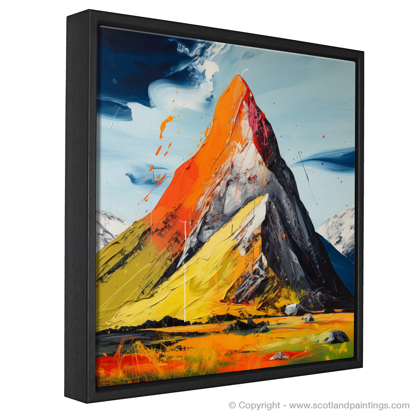 Immerse yourself in the vibrant hues and dynamic brushstrokes captured in this striking rendition of Stob Dearg, a formidable presence in the Scottish Highlands and a true jewel of the 'Scottish Munros' collection. The iconic peak of Buachaille Etive Mòr springs to life through the daring use of colour and abstract interpretation inherent to the Pop Art style.