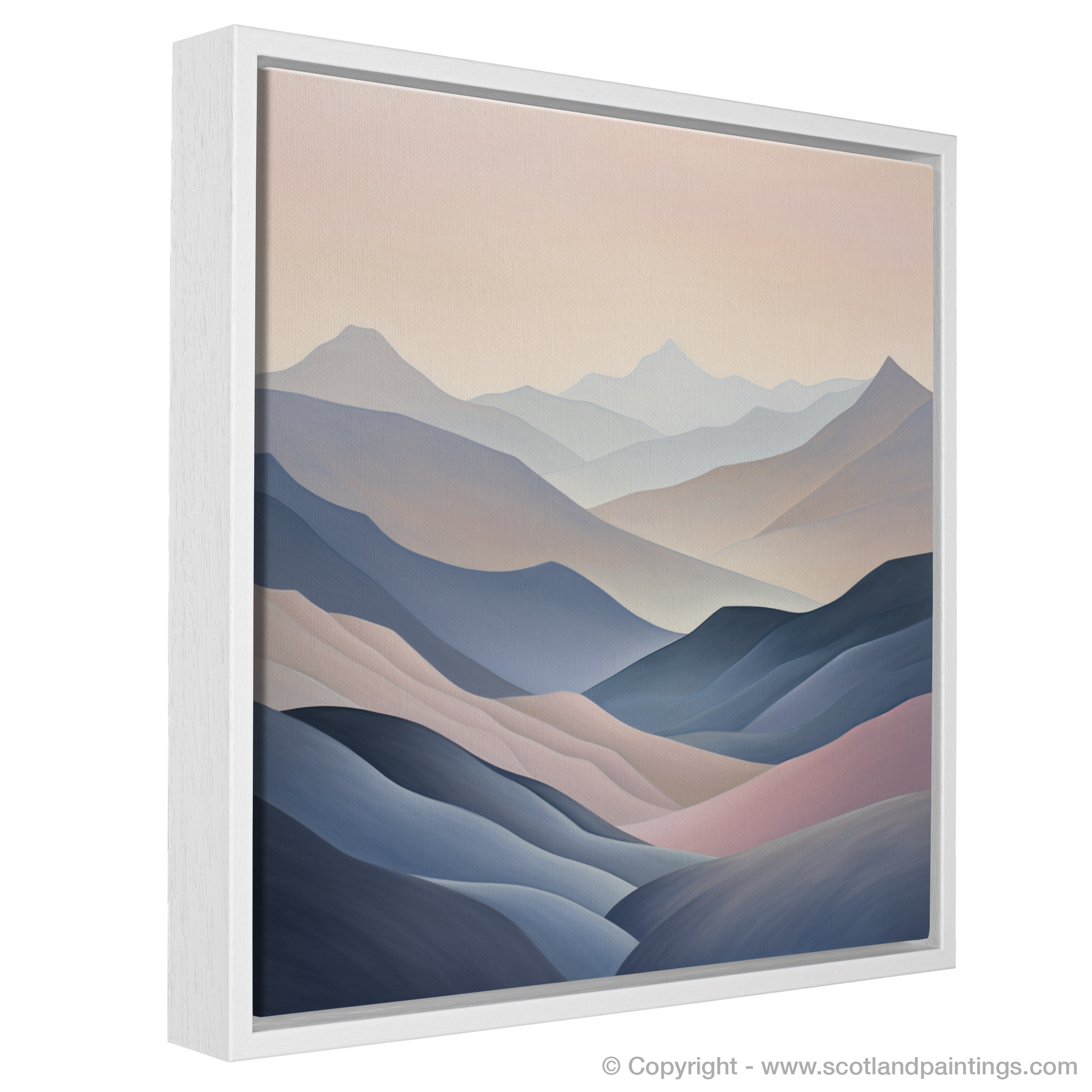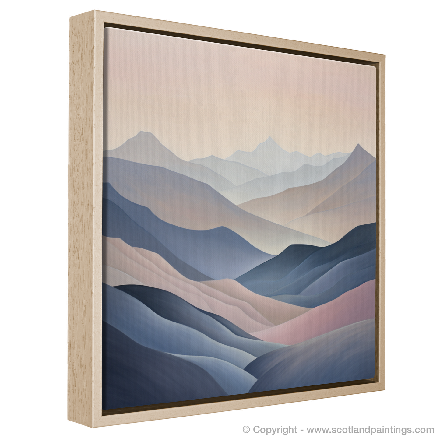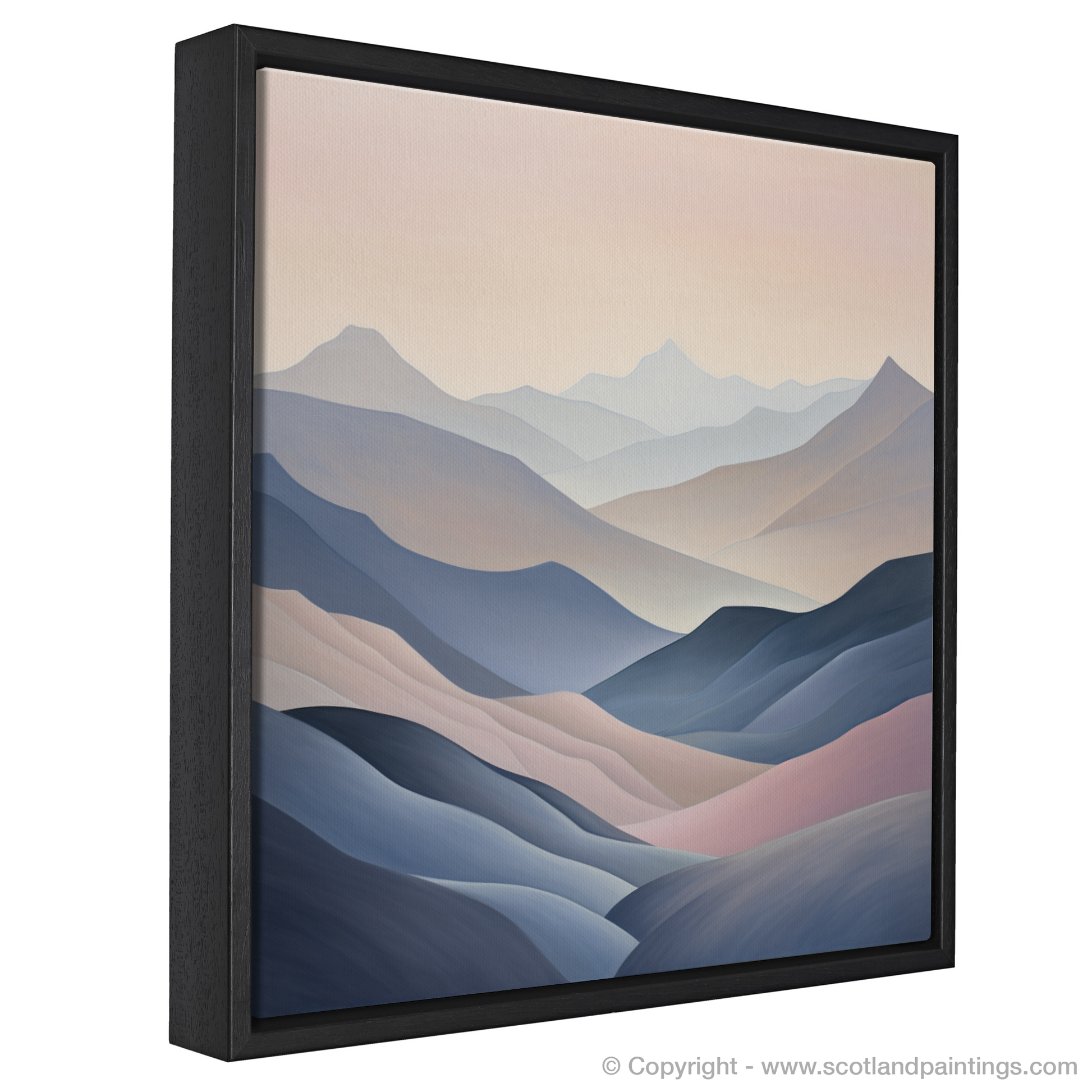 Immerse yourself in the gentle embrace of dusk with this enchanting abstract rendition of Glencoe’s undulating terrain bathing in the soft twilight. The sweeping brushstrokes in this piece vividly capture the essence of the Highlands, with layered hues of cool blues and warm purples evoking the mystical atmosphere endemic to this rugged landscape. A harmonious palette transitions from soothing pinks to serene blues, carrying the viewer’s gaze across the fading silhouettes of distant peaks.