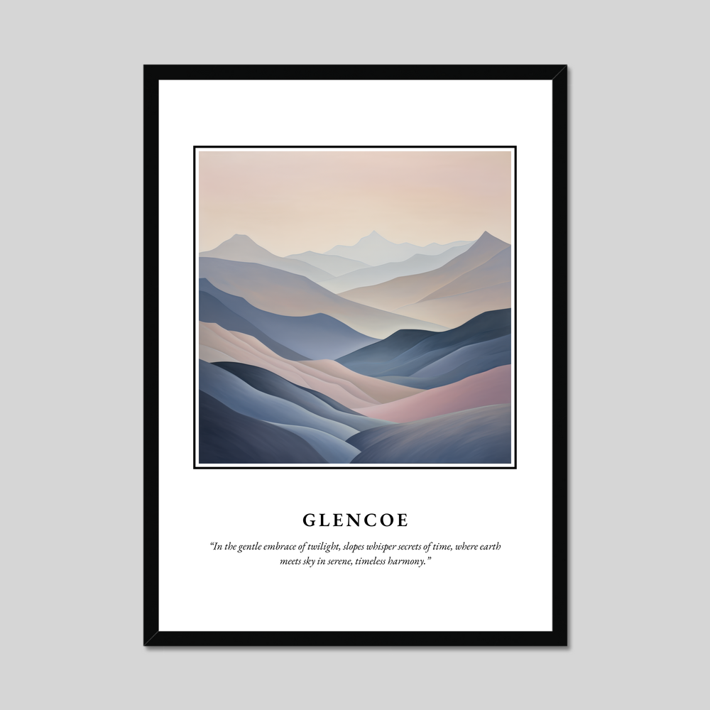 Known for its dramatic scenery and rich cultural heritage, Glencoe offers a true glimpse into Scotland’s soul. This framed print captures the essence of a place where nature’s grandeur meets human legacy—a timeless symphony beautifully encapsulated in an abstract masterpiece.