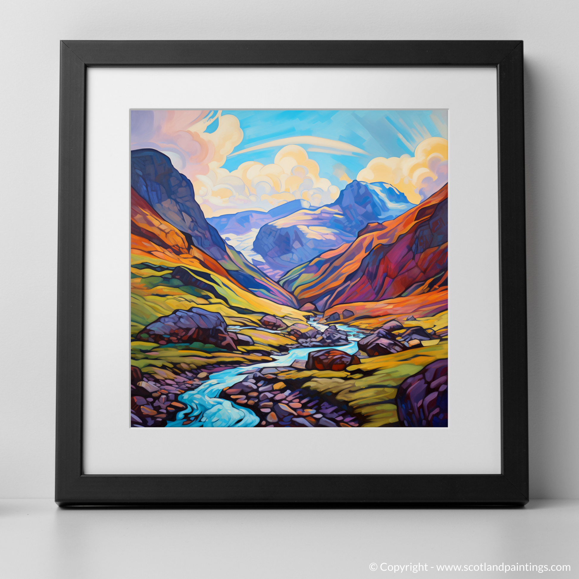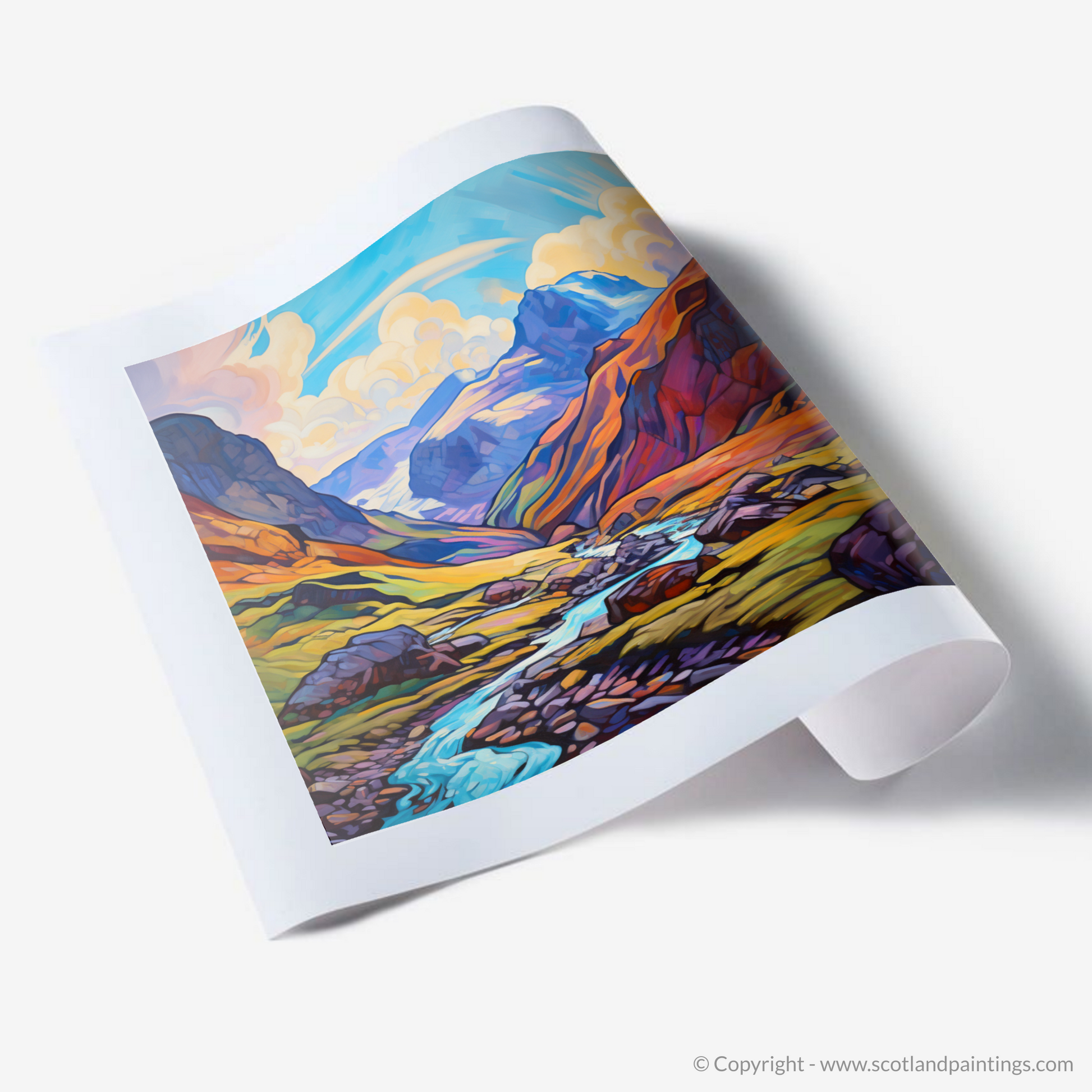 This illustrative gem is more than a mere print; it is a gateway to the contemplative. Viewers can almost feel the cool breeze and hear the gentle whistle of the wind as it crosses through the valley. Envisioned for those who hold a special place in their hearts for Scotland's untamed landscapes, this piece promises to stir the soul and ignite the wanderlust in every observer, turning any space into a sanctuary of Highland serenity.