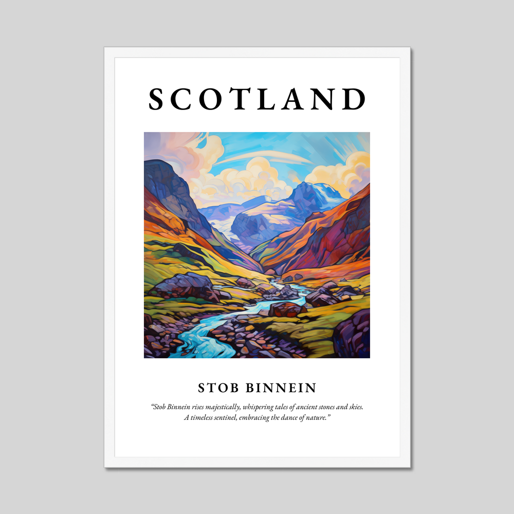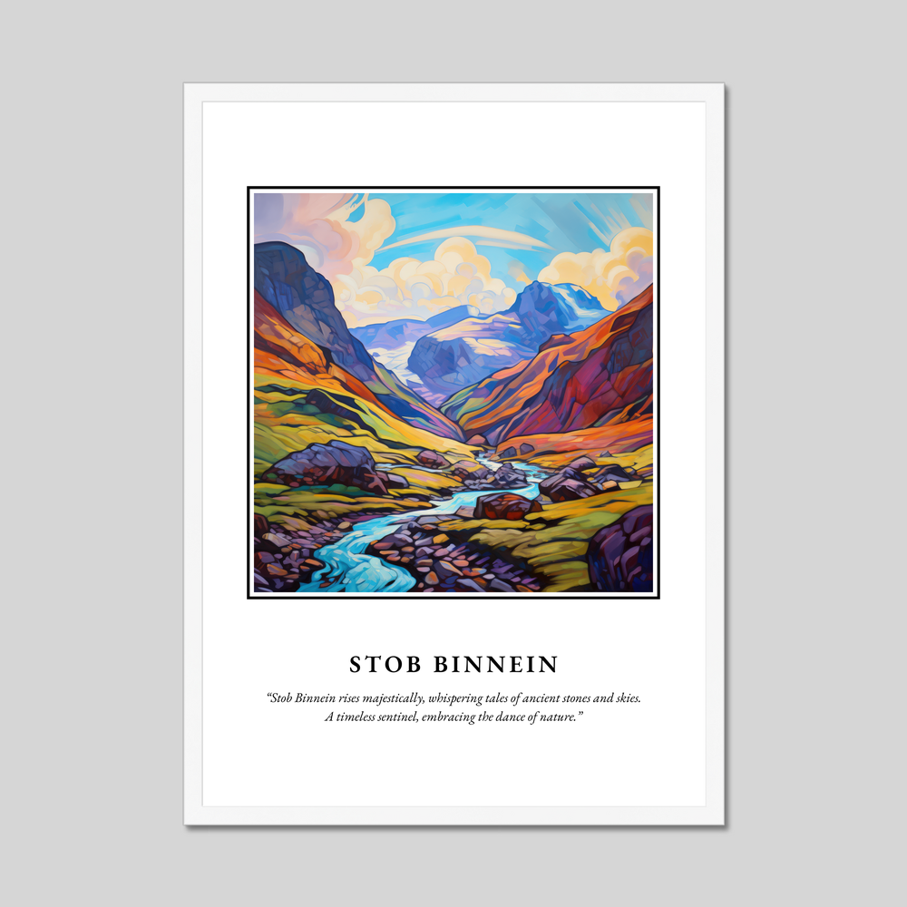 Whether you have climbed its paths, admired it from afar, or simply wish to capture a piece of its magic, this framed poster beautifully immortalises the essence of Stob Binnein, allowing you to cherish and share its timeless splendour every day.