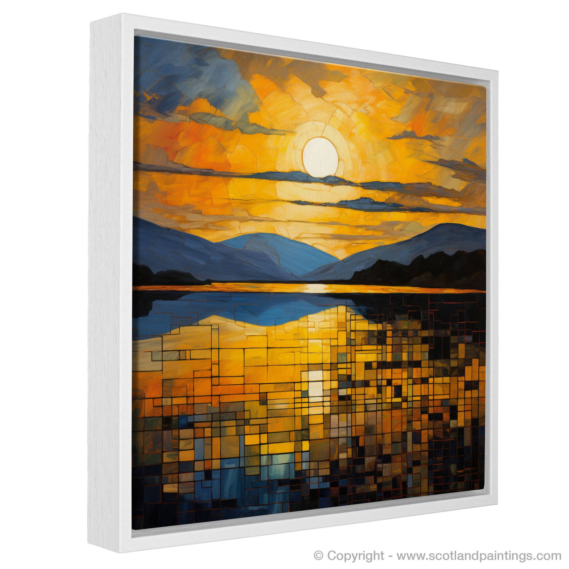 This print is more than a mere representation; it is an invitation to pause and reflect, a reminder of the beauty that exists in fleeting moments, and a stunning tribute to the majestic landscape of Loch Lomond as seen through the transformative lens of abstract art.