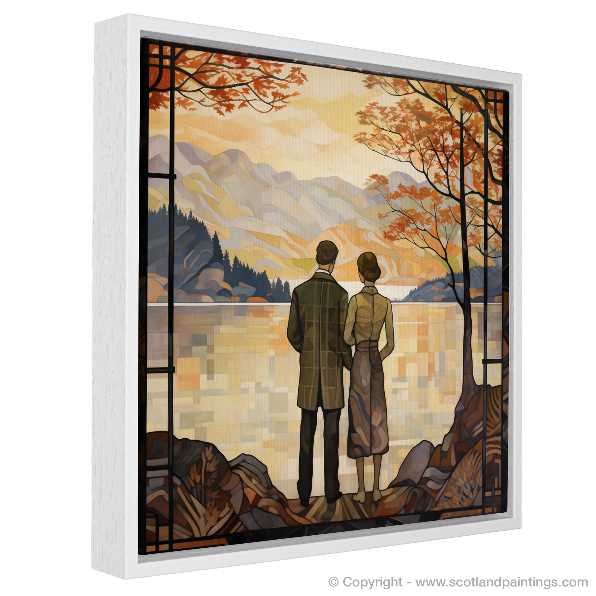 Painting and Art Print of A couple holding hands looking out on Loch Lomond entitled "Autumn Embrace at Loch Lomond - An Art Nouveau Enchantment".